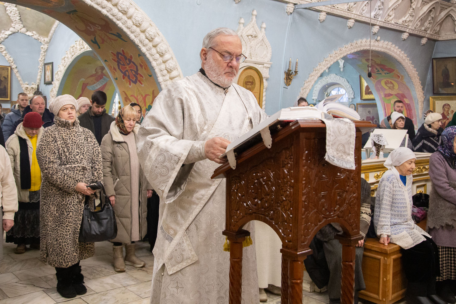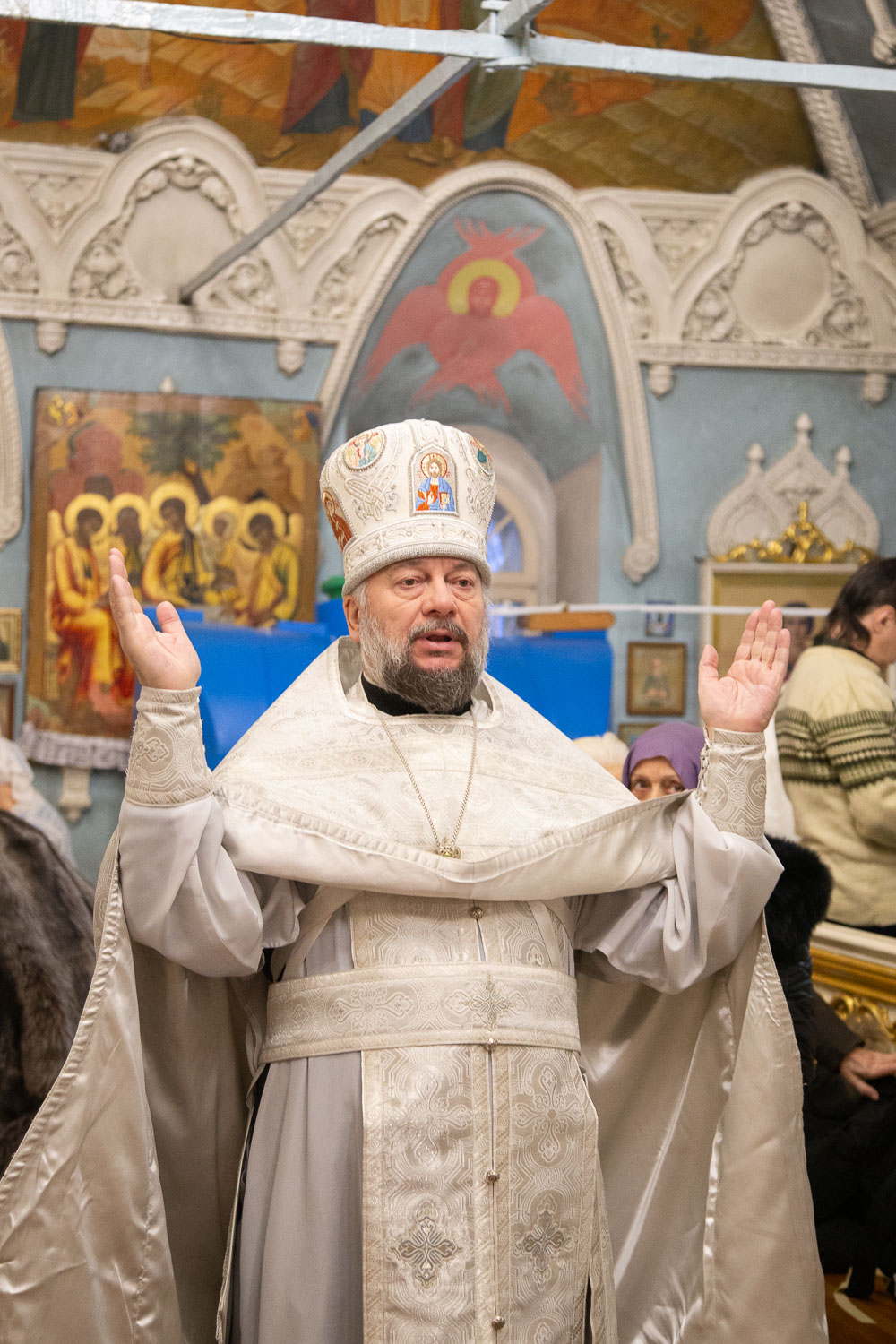 По окончании Литургии владыка совершил великую вечерню и чин великого освящения воды. Затем было совершено славление празднику, после чего обратился к прихожанам с проповедью.
