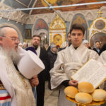 По окончании богослужения владыка Никита окропил святой водой верующих и обратился к собравшимся с архипастырским словом.