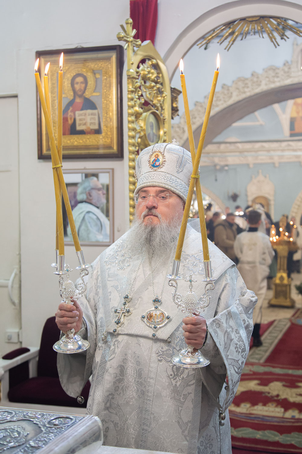 Его Высокопреосвященству сослужили: руководитель Административного секретариата Красноярской епархии, настоятель собора протоиерей Владимир Дорош и клирики храмов Красноярска.