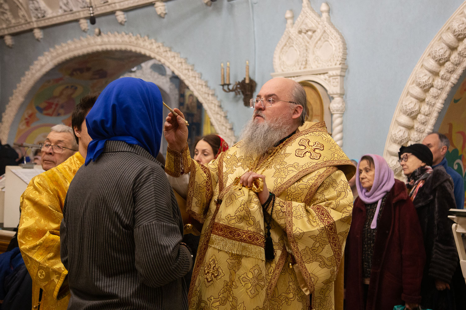 Глава Красноярской митрополии совершил елеопомазание молящихся, а по окончании богослужения обратился к собравшимся с архипастырским словом.
