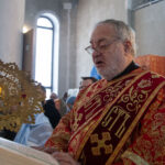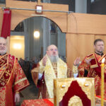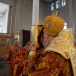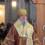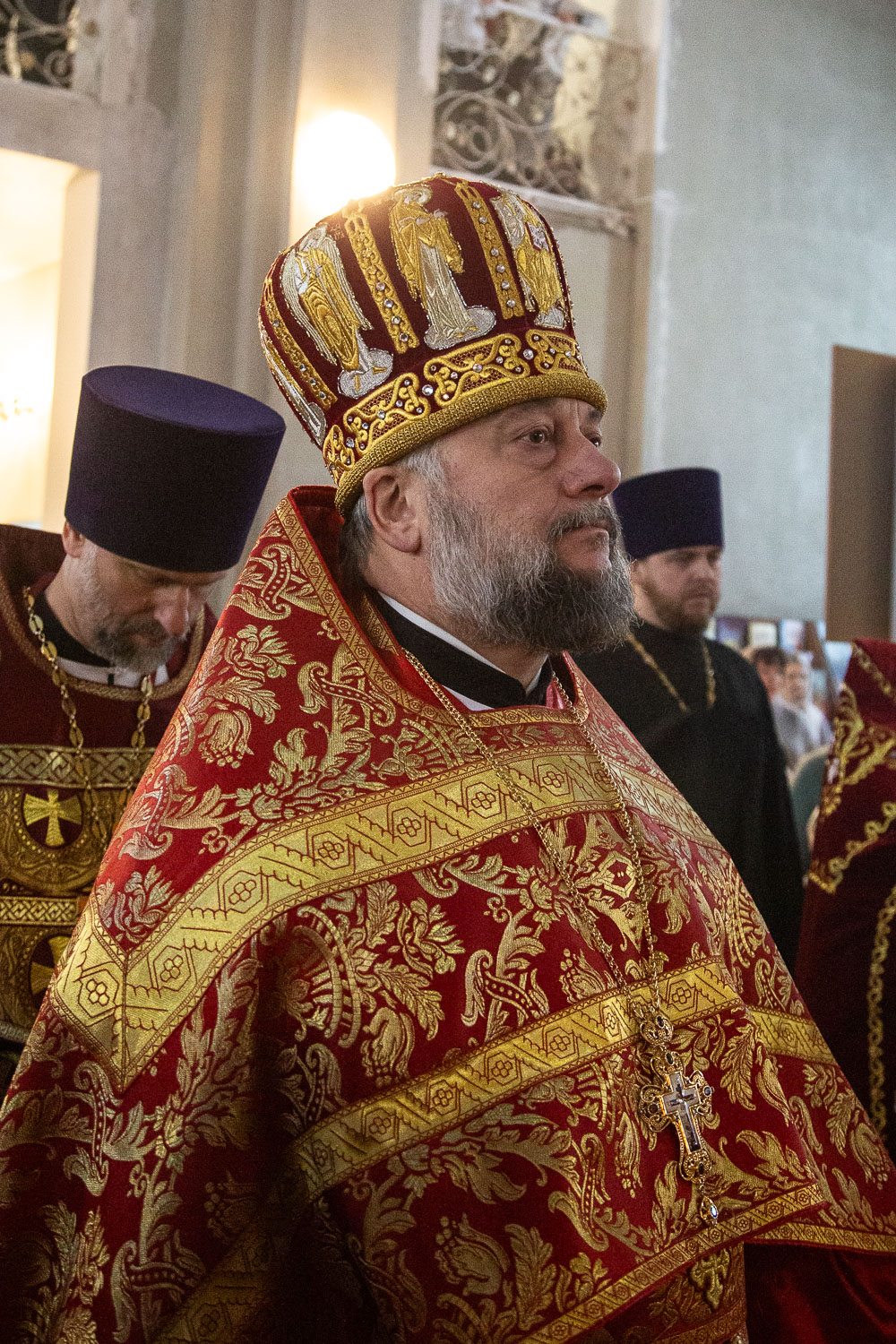 В завершение богослужения была совершена заупокойная лития по всем пострадавшим в годы гонений и славление новомученикам и исповедникам Церкви Русской, после чего правящий архиерей обратился к собравшимся со словом проповеди.