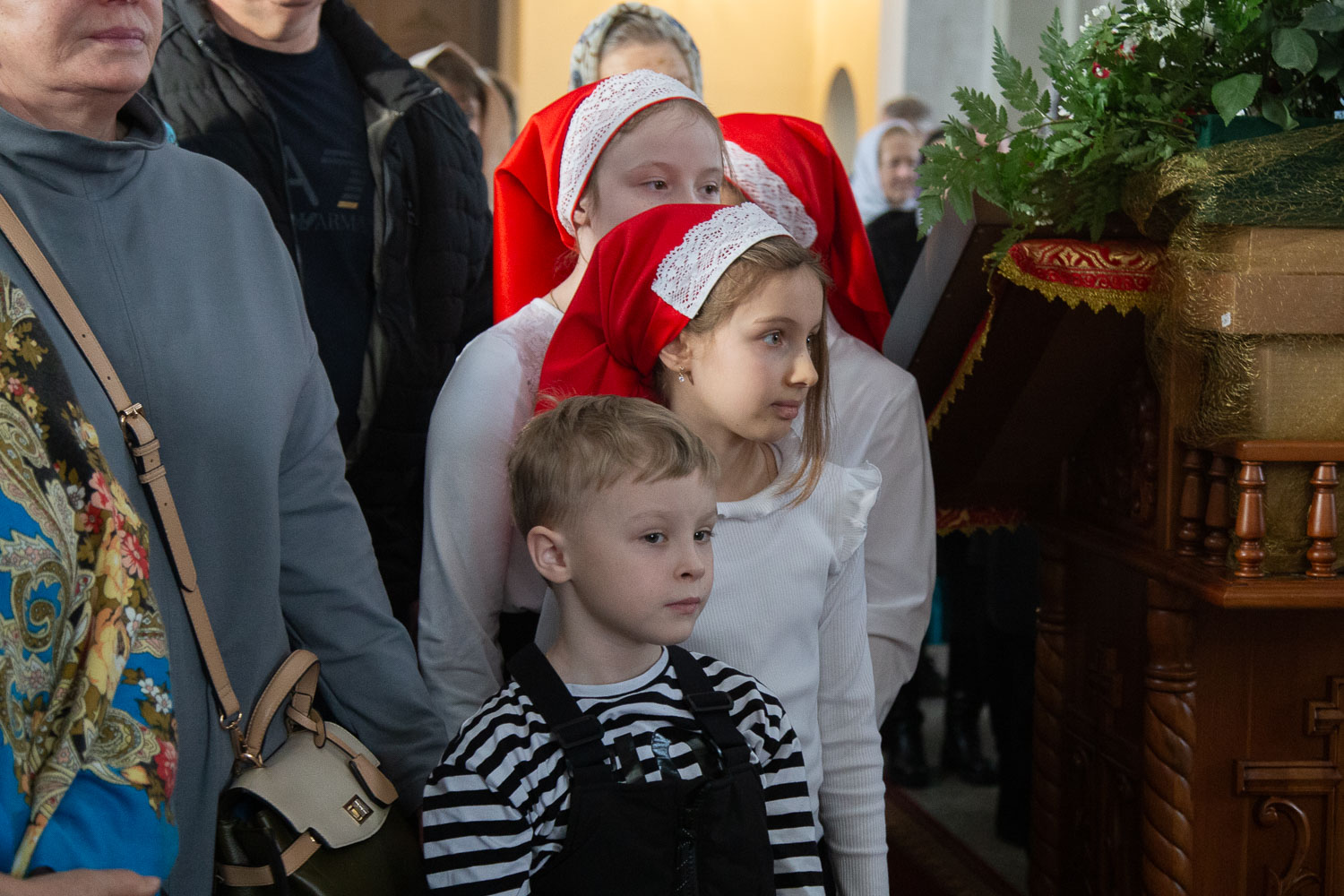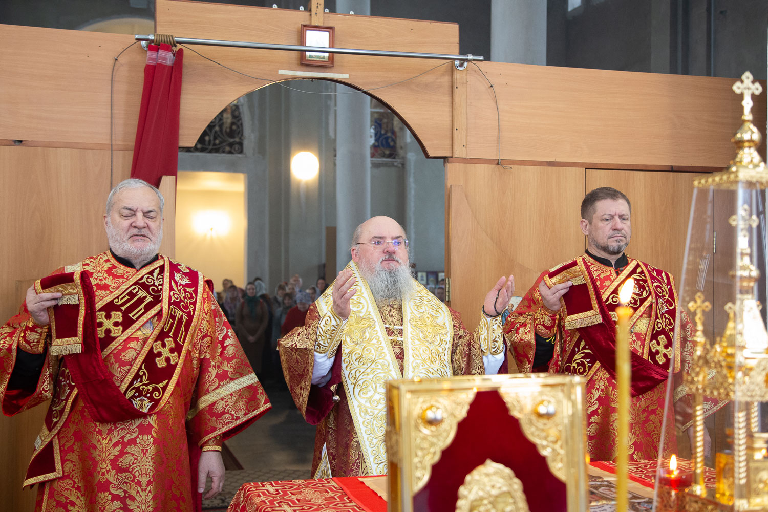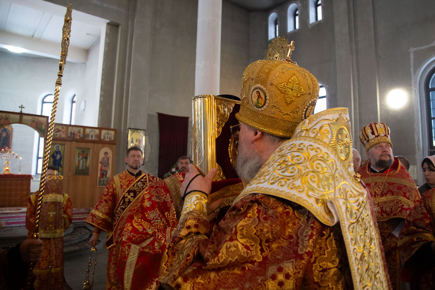 За Литургией были вознесены особые прошения и молитва о Святой Руси. По благословению Святейшего Патриарха Московского и всея Руси Кирилла эта сугубая молитва совершается во всех храмах Русской Православной Церкви за каждым богослужением.