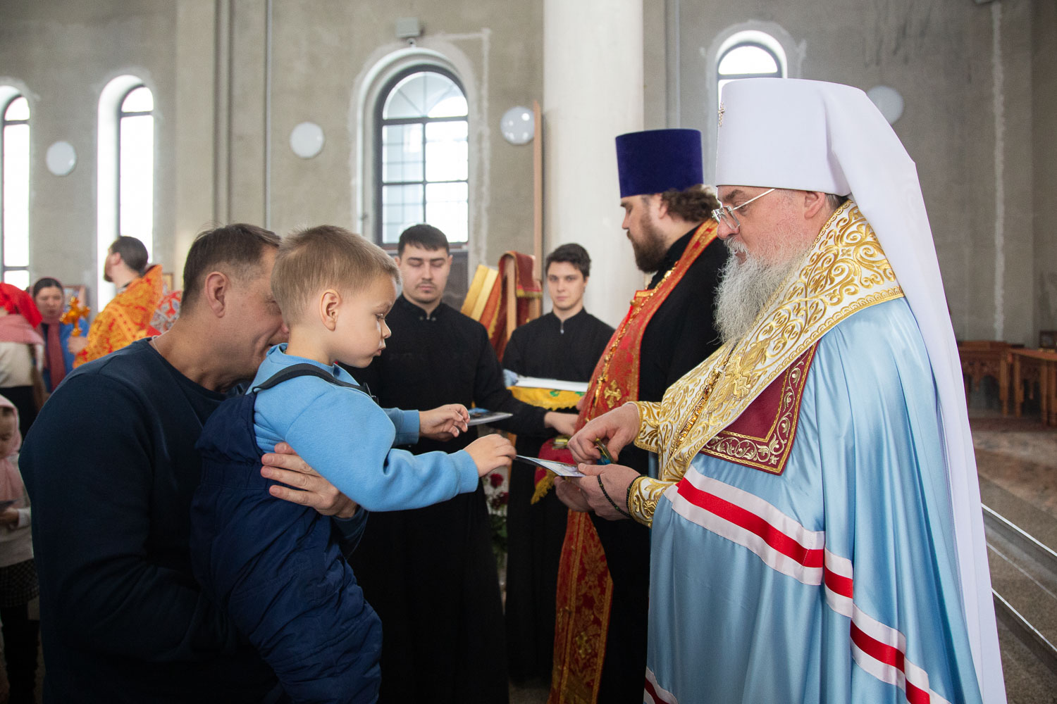 Владыка Никита также вручил юным прихожанам сладкие подарки и детскую духовную литературу, а взрослым — календари на текущий год.
