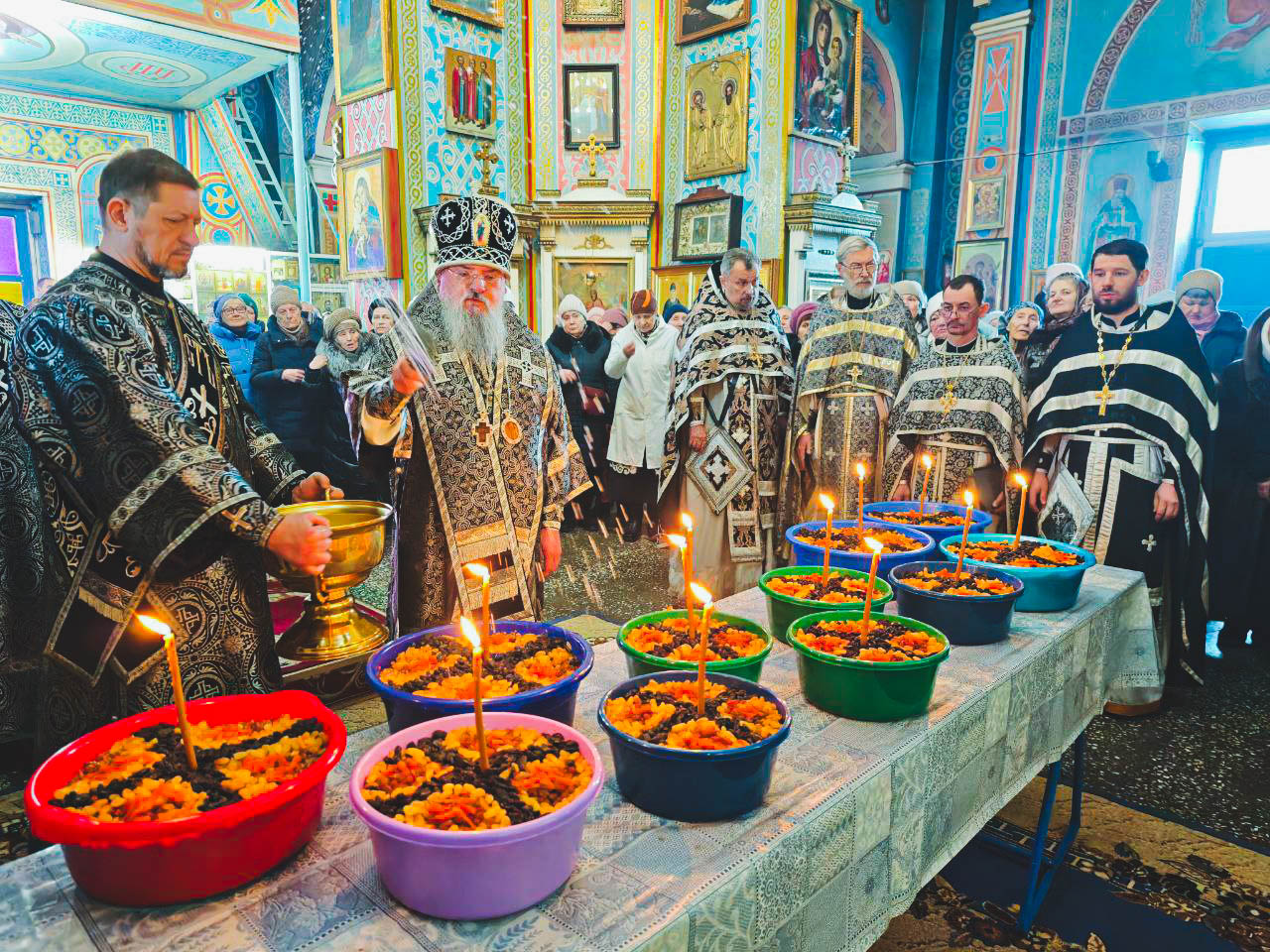 По окончании богослужения владыка Никита освятил коливо и обратился к собравшимся с архипастырским словом.