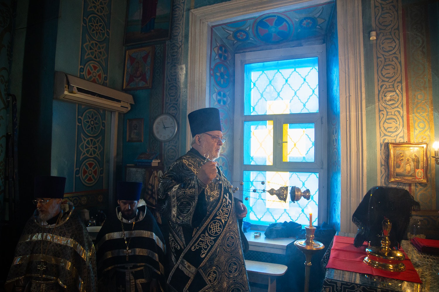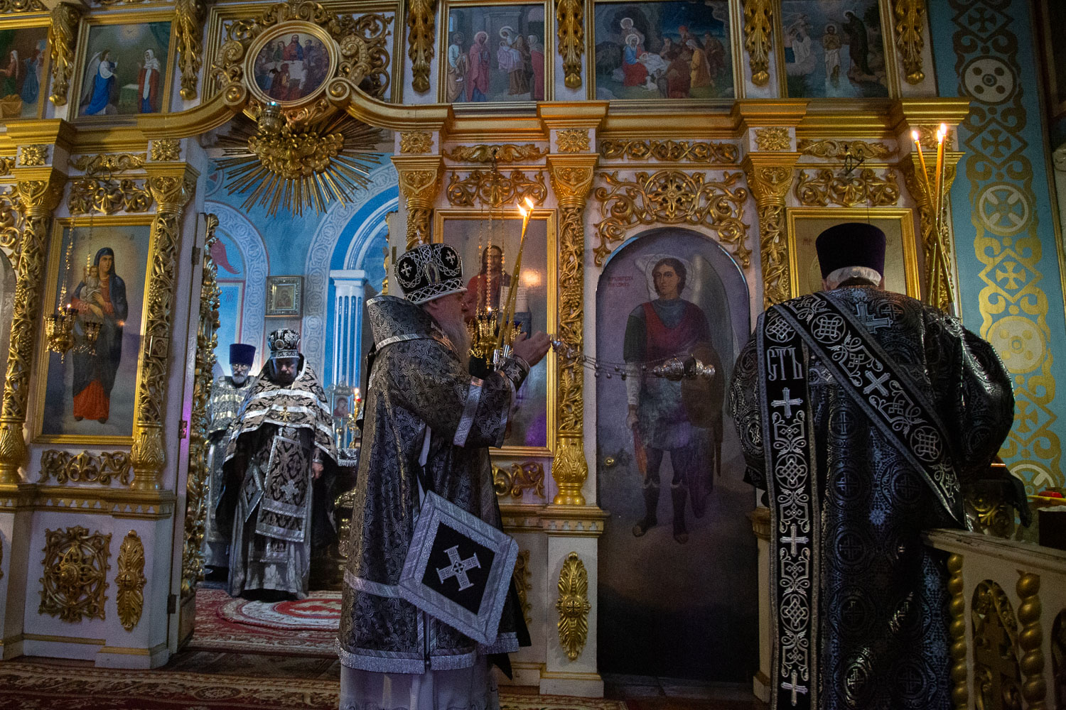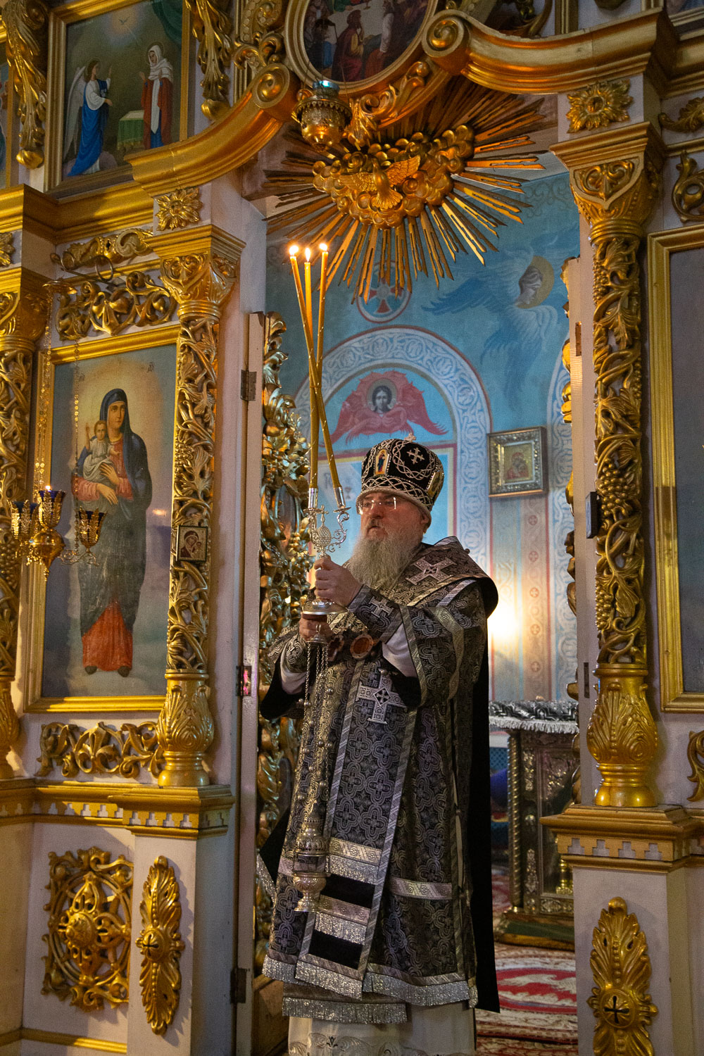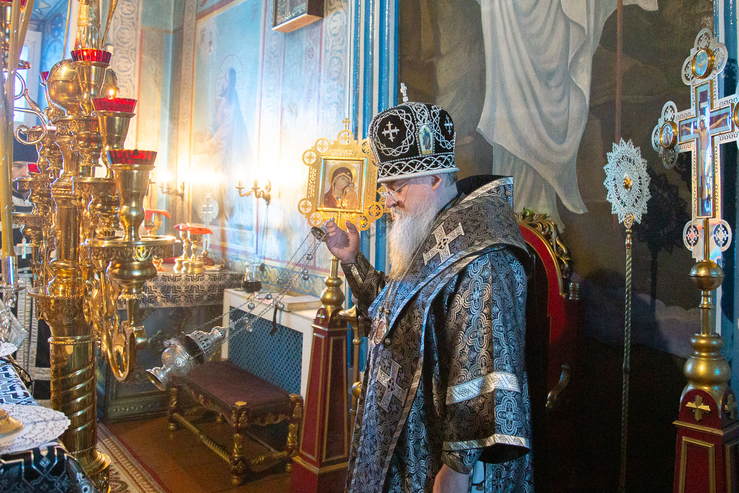 Его Высокопреосвященству сослужили: благочинный церквей Ачинского округа, настоятель собора Казанской иконы Божией Матери протоиерей Евгений Фролов и клирики Красноярской епархии.