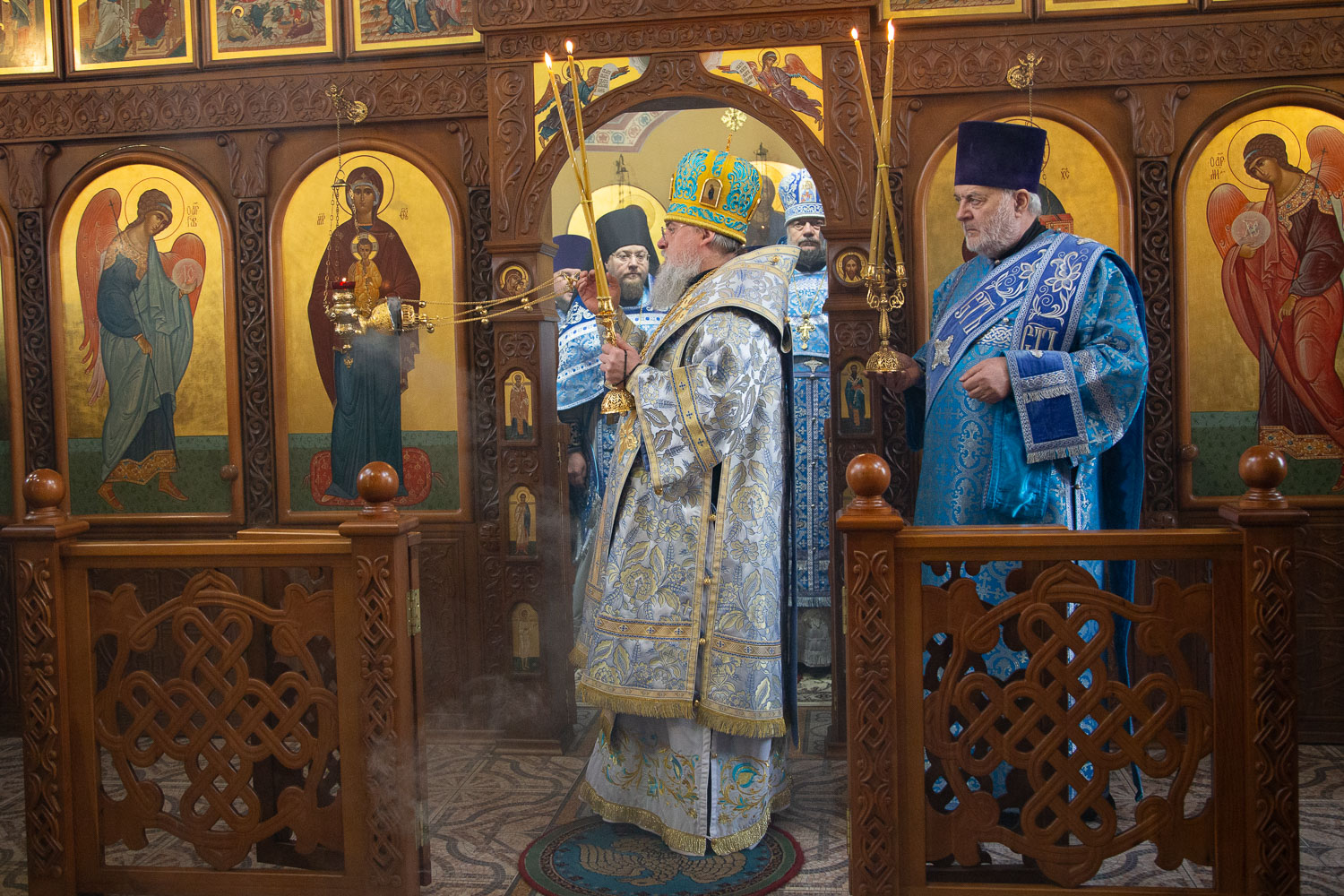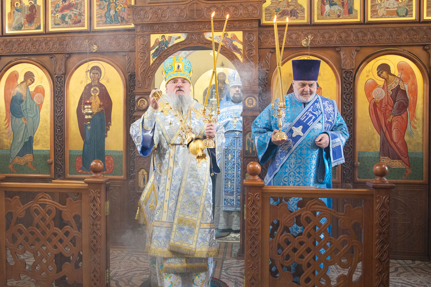 Его Высокопреосвященству сослужили: благочинный церквей Берёзовского округа, настоятель церкви Введения во храм Пресвятой Богородицы иерей Вячеслав Комаров и клирики Красноярской епархии.