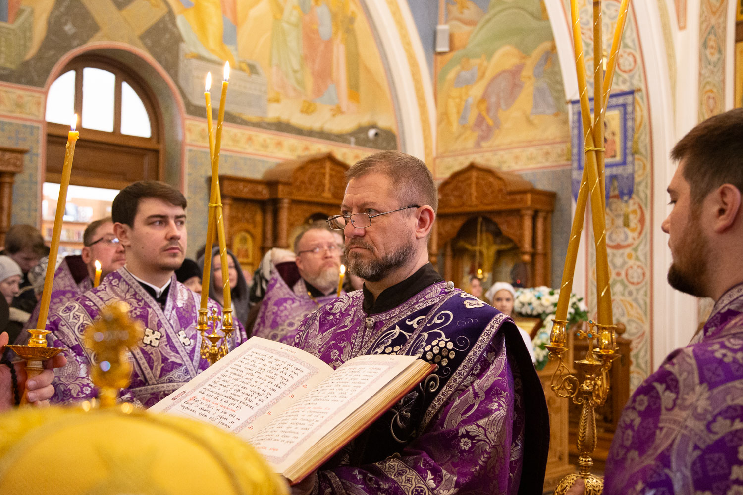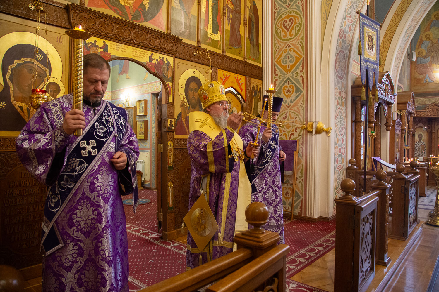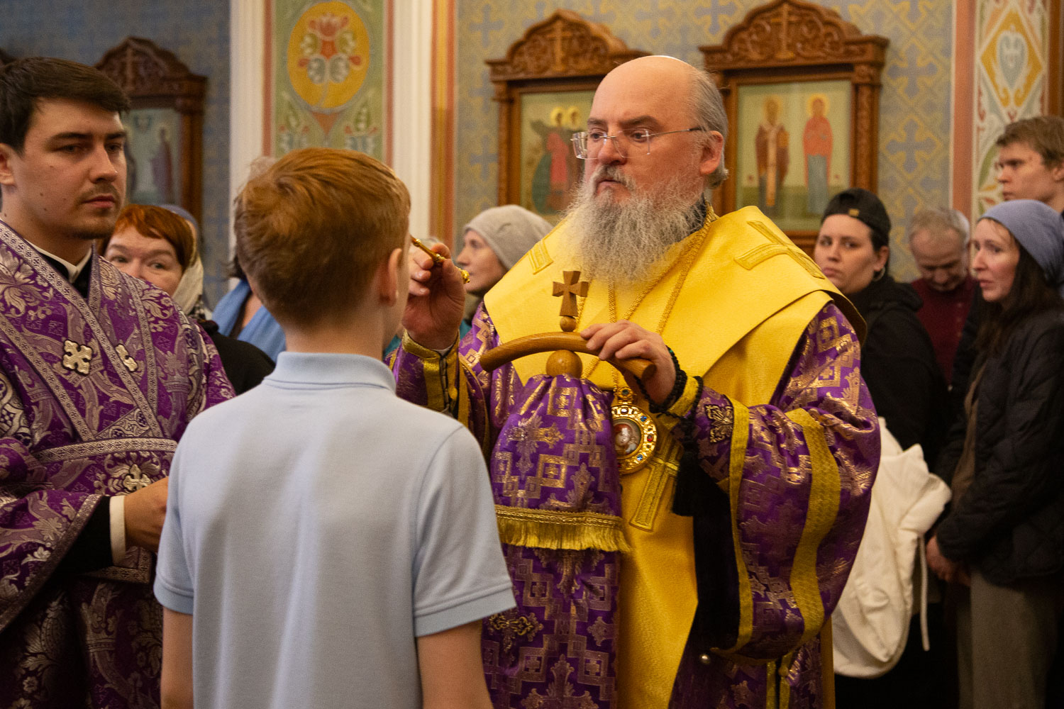 Правящий архиерей совершил елеопомазание молящихся, а по окончании богослужения обратился к собравшимся с архипастырским словом.