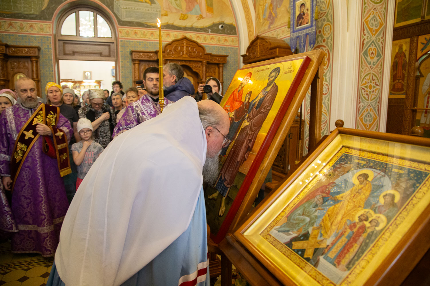 28 марта в канун Недели 5-й Великого поста, митрополит Красноярский и Ачинский Никита совершил чин освящения иконы святых праведных Богоотец Иоакима и Анны в храме Иоанна Предтечи города Красноярска.