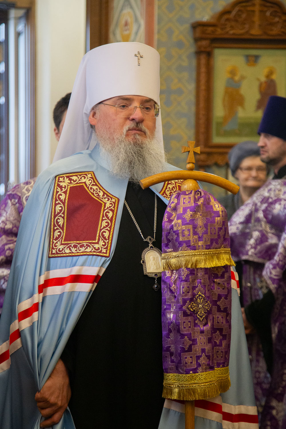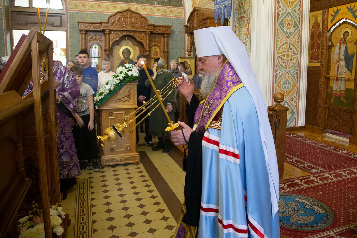 Его Высокопреосвященству сослужили: настоятель храмов Иоанна Предтечи и праведных Иоакима и Анны протоиерей Николай Ши-кэ-мин и клирики красноярских храмов.