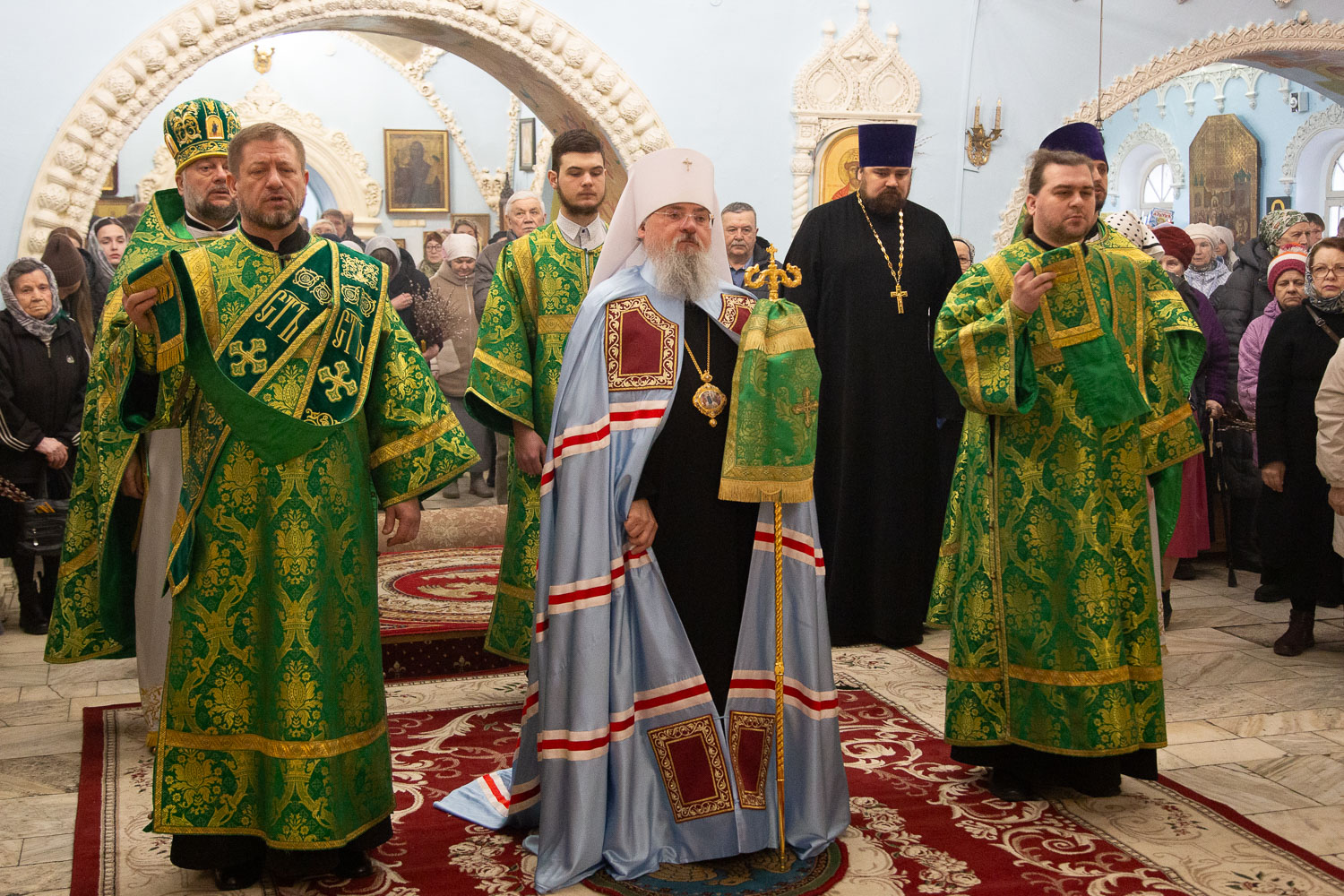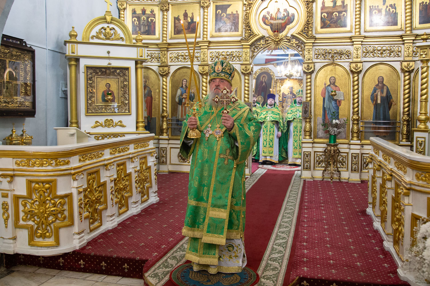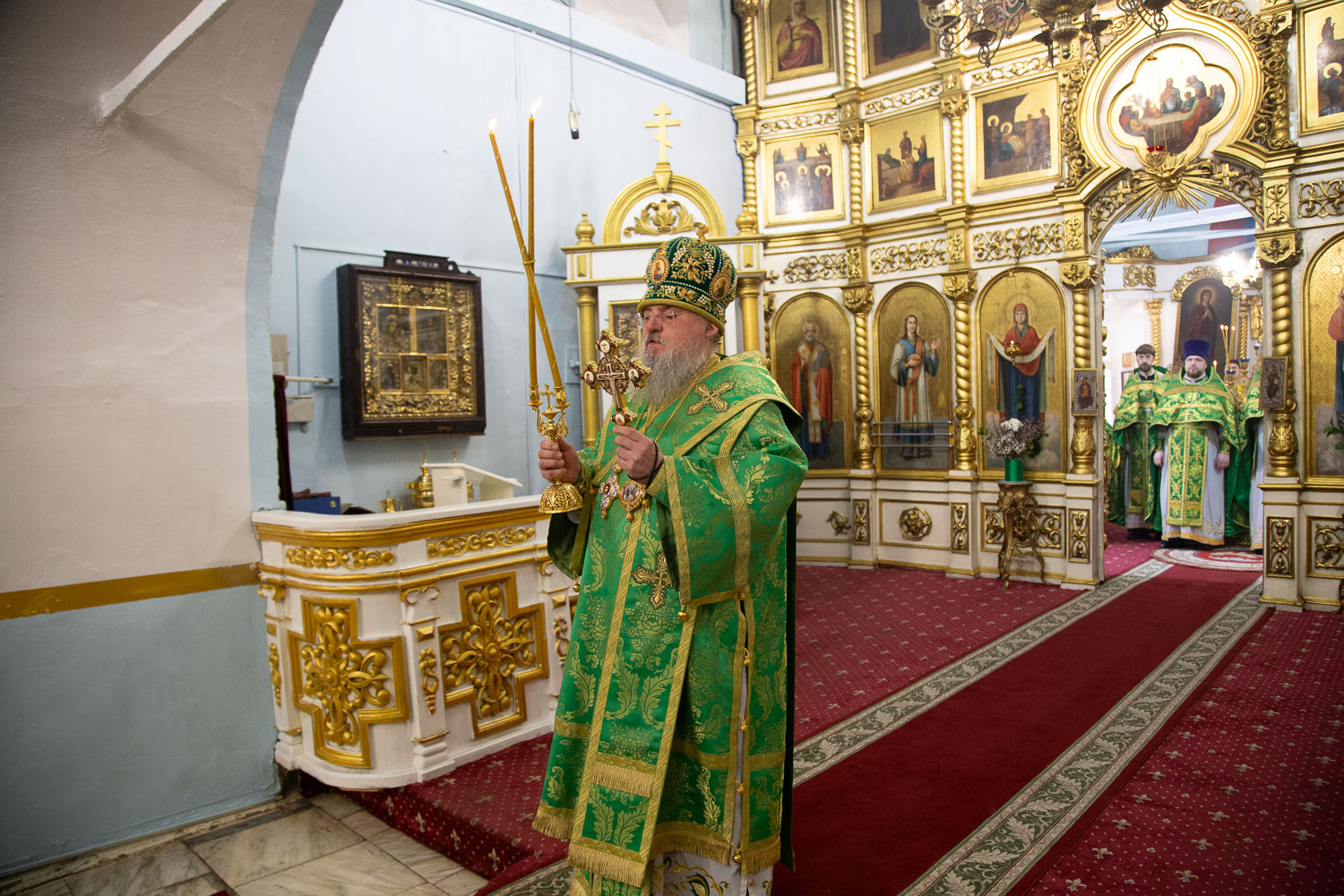 Его Высокопреосвященству сослужили: руководитель административного секретариата Красноярской епархии, настоятель кафедрального собора протоиерей Владимир Дорош и клирики храмов Красноярска.