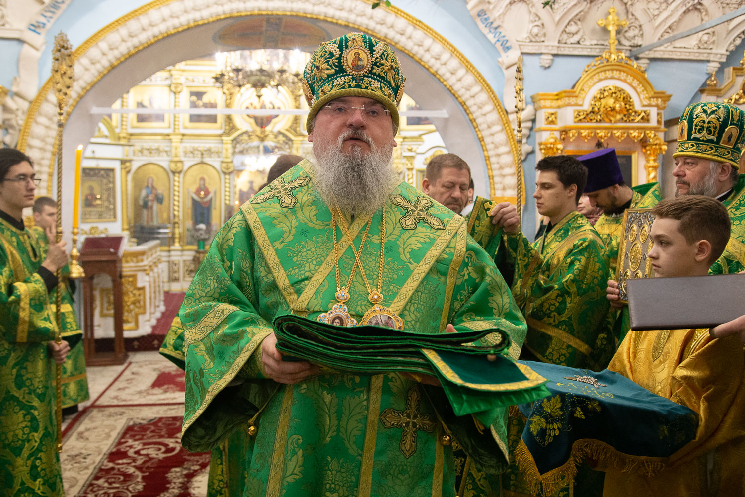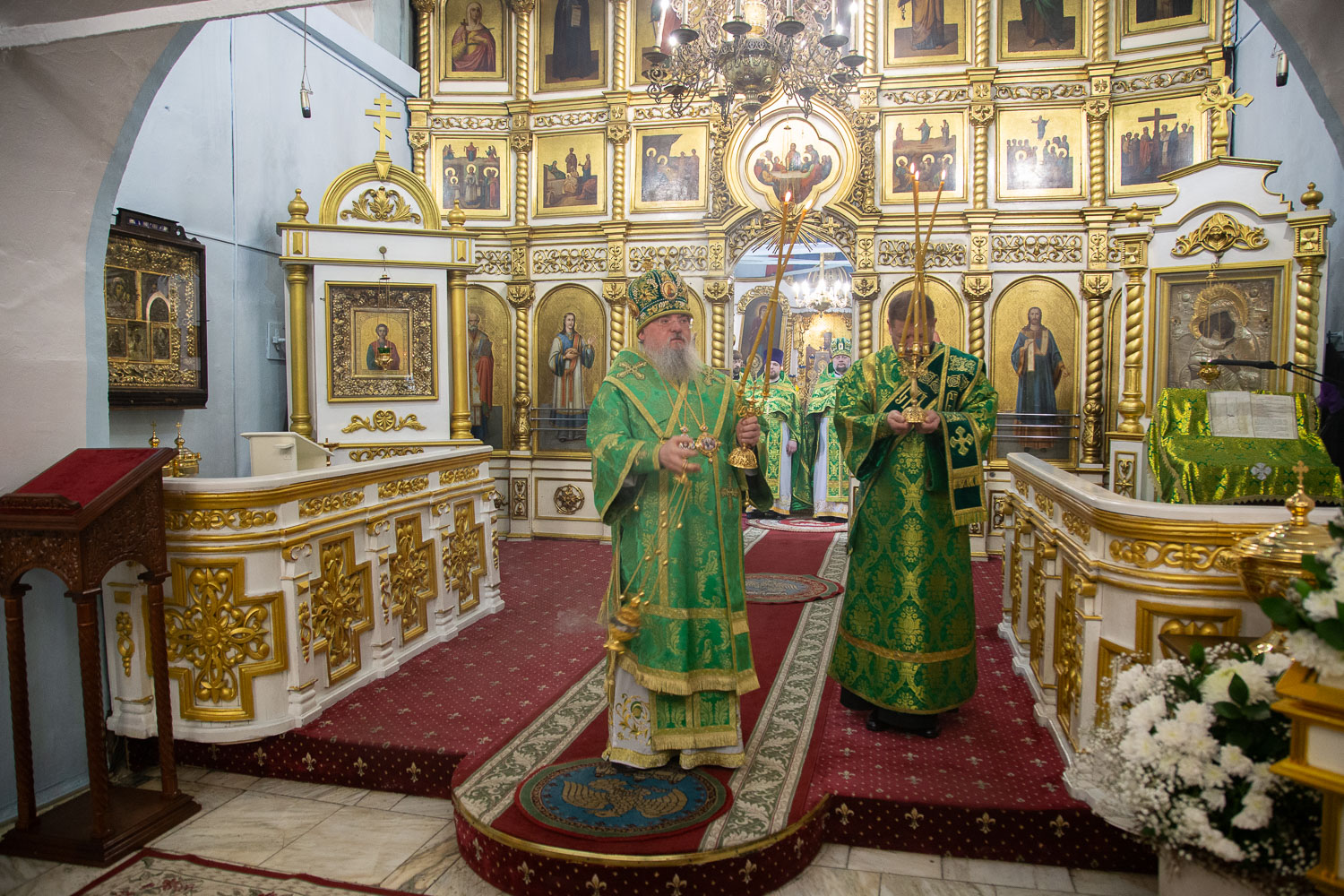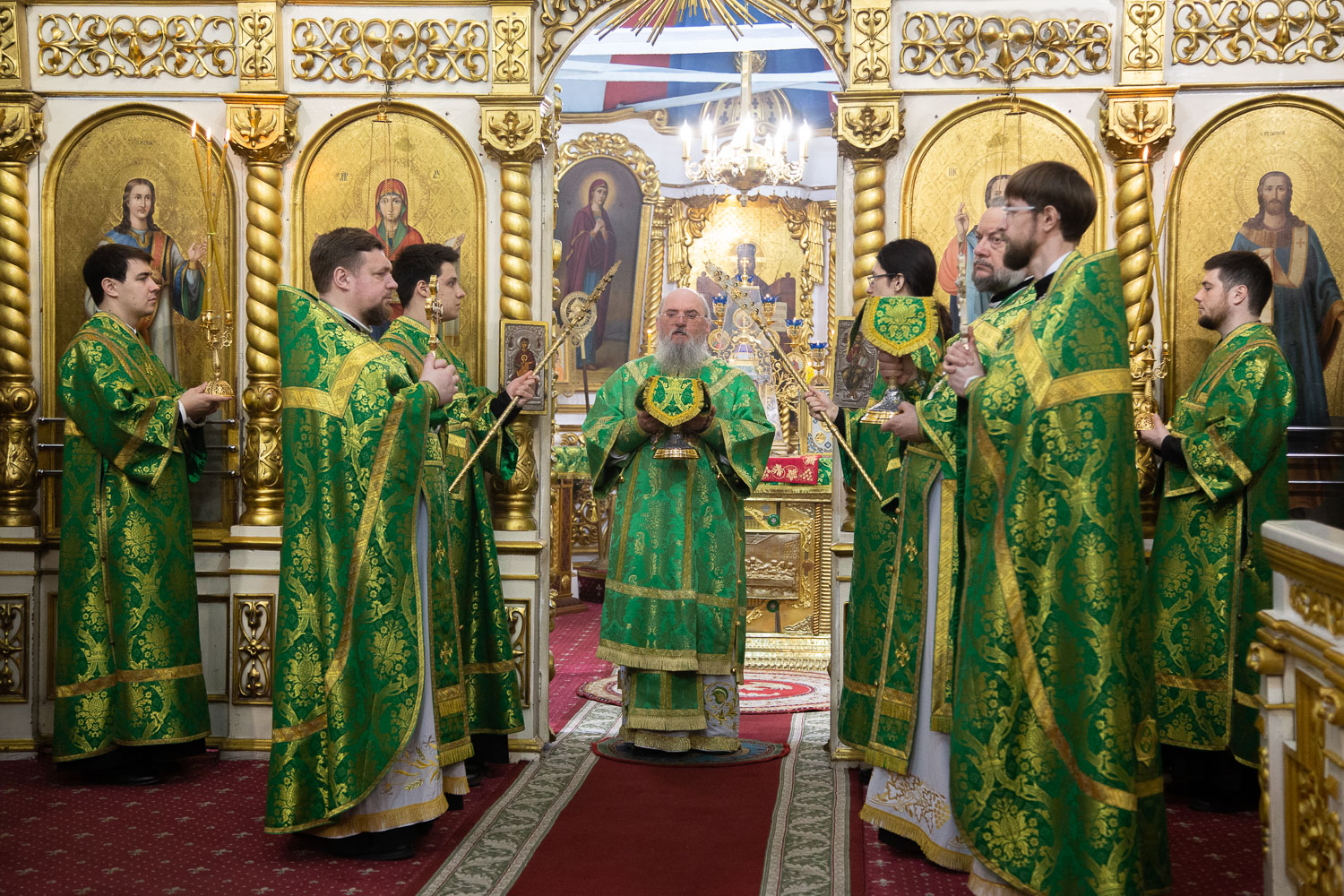 Его Высокопреосвященству сослужили: руководитель административного секретариата Красноярской епархии, настоятель кафедрального собора протоиерей Владимир Дорош и клирики храмов Красноярска.