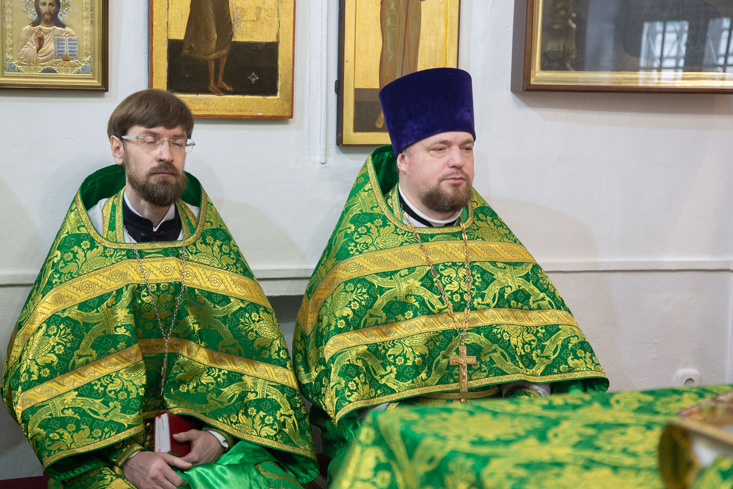 За понесённые труды на благо Русской Православной Церкви владыка Никита наградил штатных клириков кафедрального собора очередными богослужебно-иерархическими наградами: иерея Александра Ветрова — права ношения наперсного креста золотого цвета; диакона Андрея Андронова — права ношения двойного ораря.