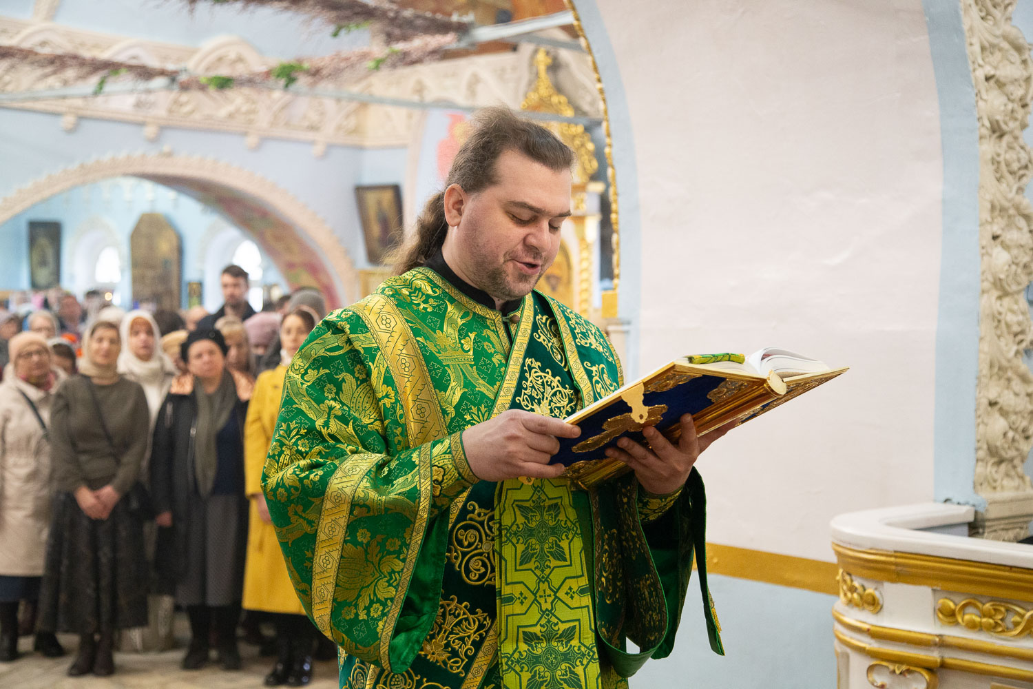 Богослужебные песнопения исполнил Архиерейский хор кафедрального собора. За Литургией молился консультант отдела по делам национальностей, религий и казачества управления общественных связей Губернатора Красноярского края Сергей Щеглов.