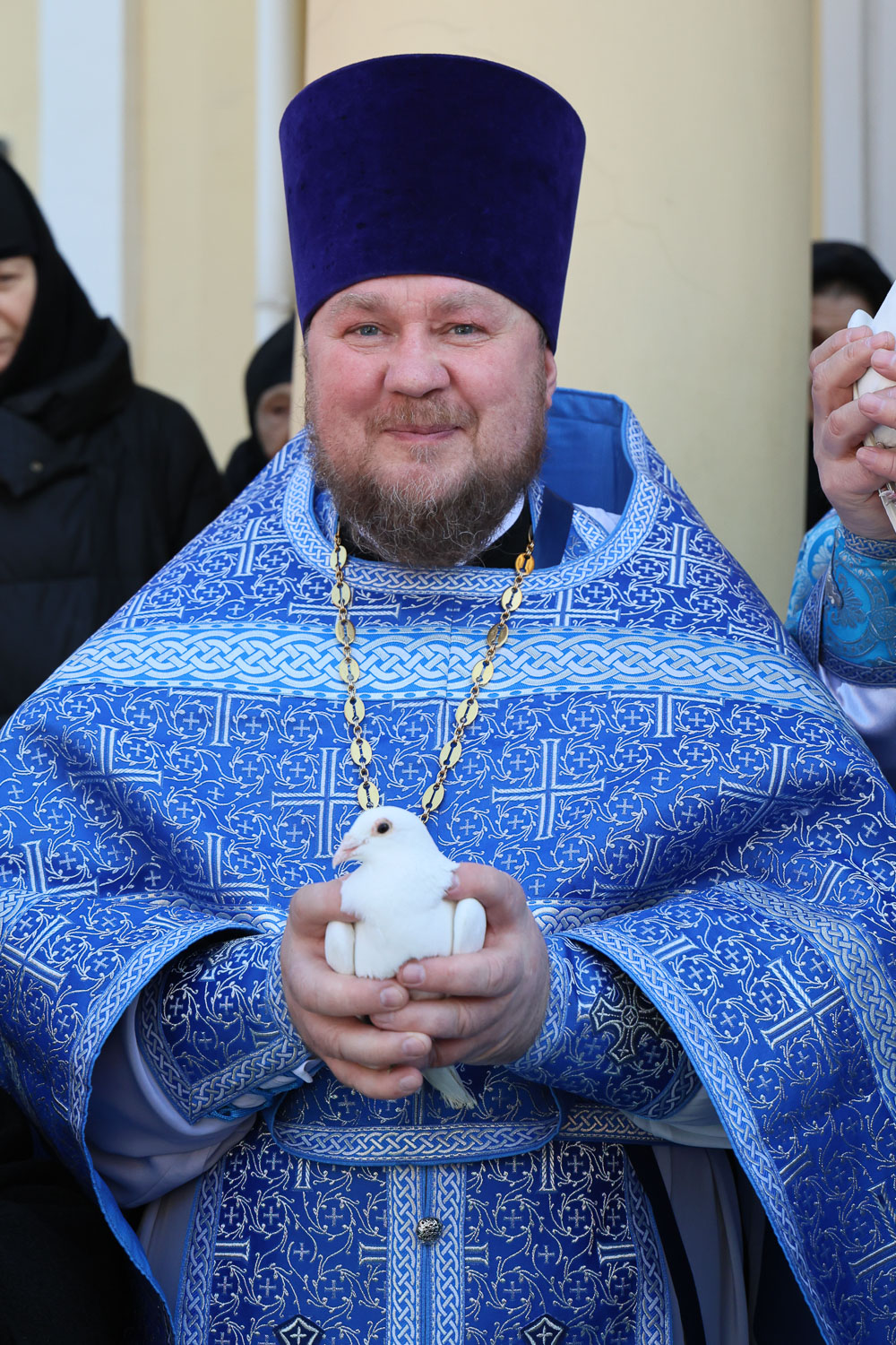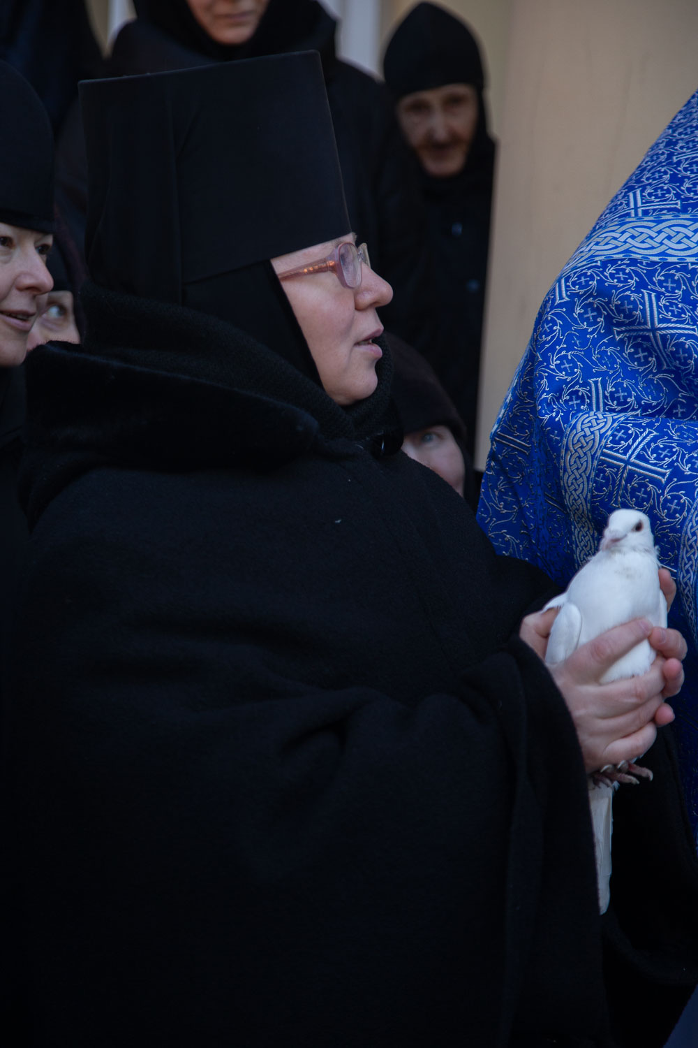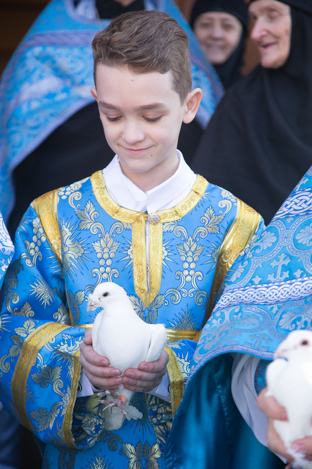 После завершения шествия владыка Никита, игумения, духовенство и дети выпустили в небо белых голубей в честь праздника Благовещения Пресвятой Богородицы.