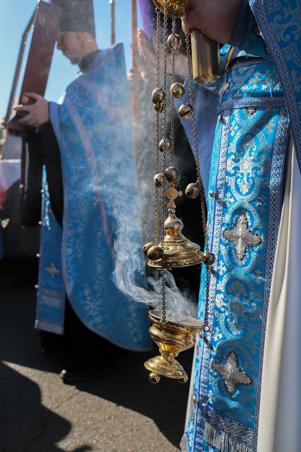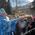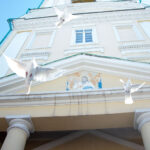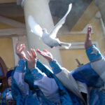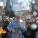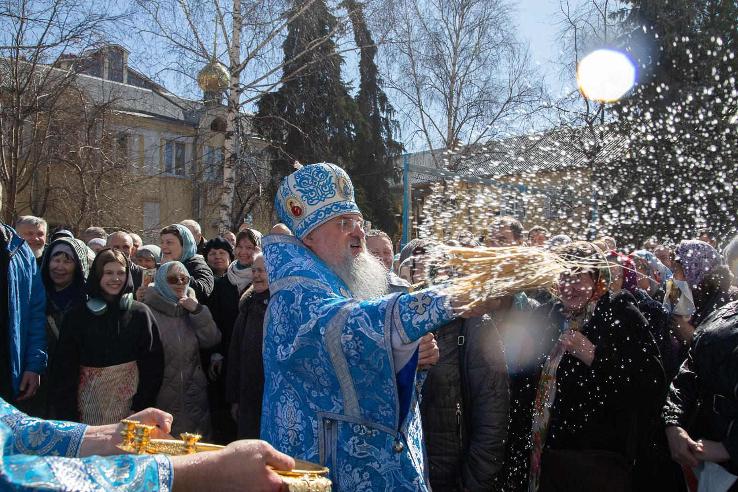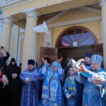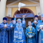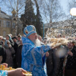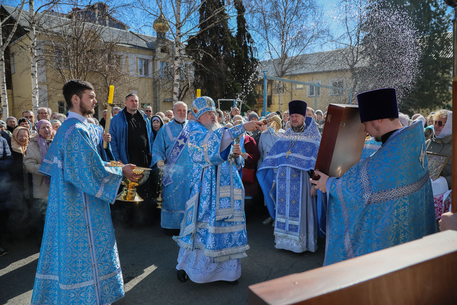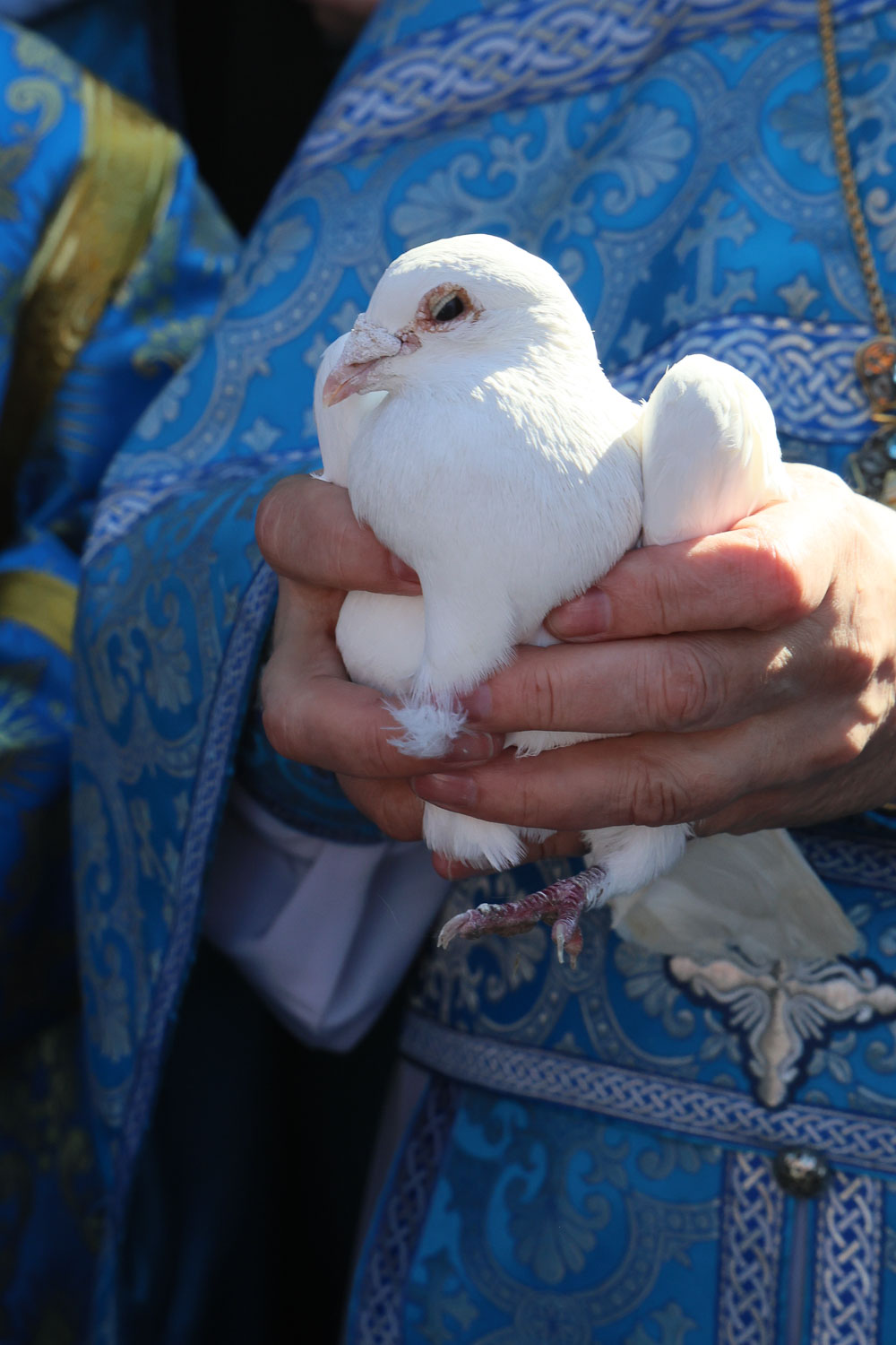 После завершения шествия владыка Никита, игумения, духовенство и дети выпустили в небо белых голубей в честь праздника Благовещения Пресвятой Богородицы.