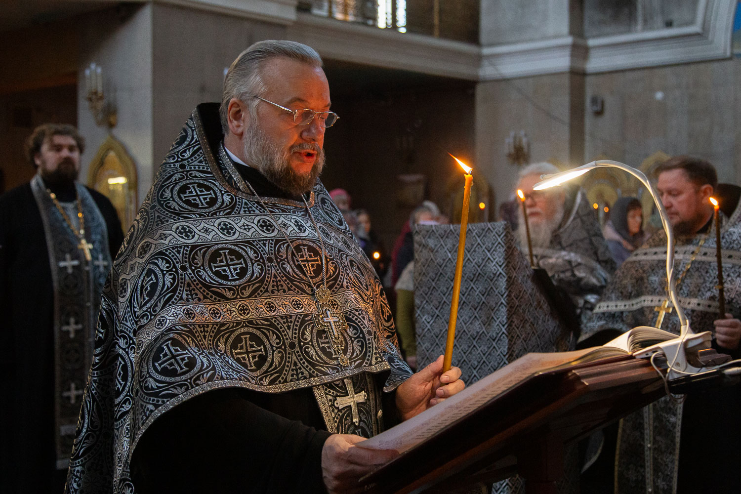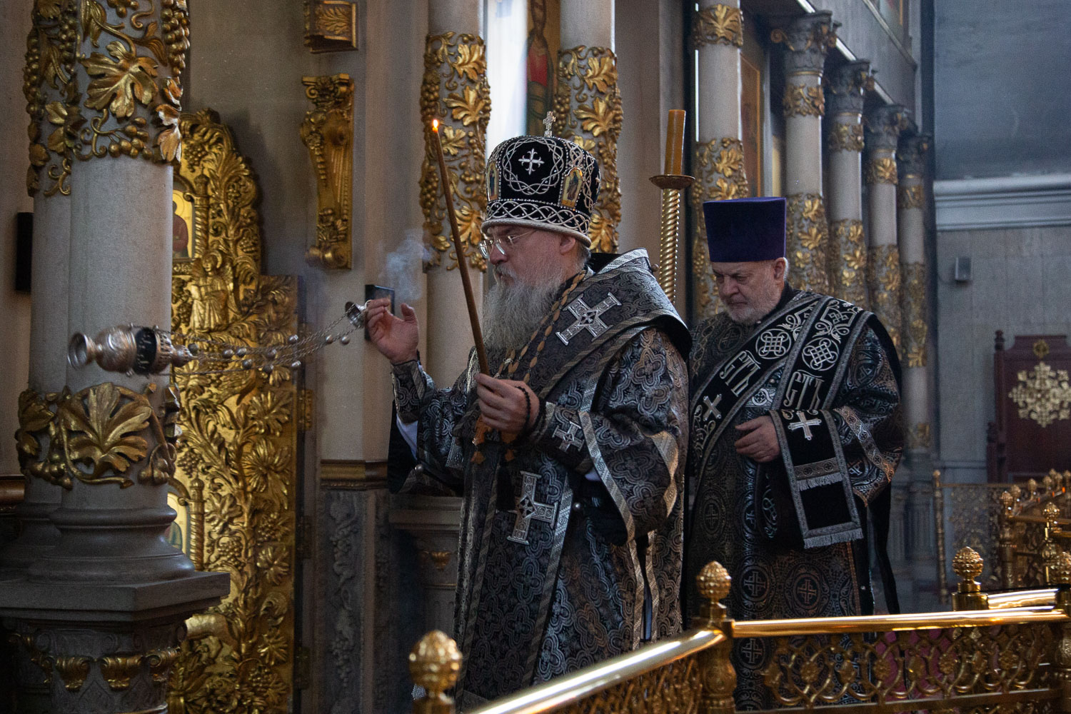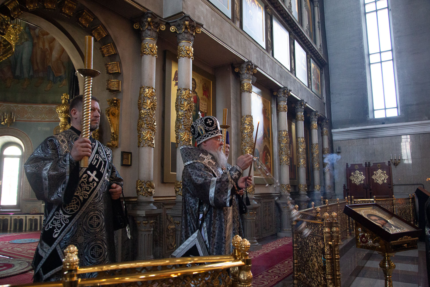 Его Высокопреосвященству сослужили: благочинный Правобережного церковного округа города Красноярска, настоятель храма протоиерей Максим Смоляков и клирики Красноярской епархии.
