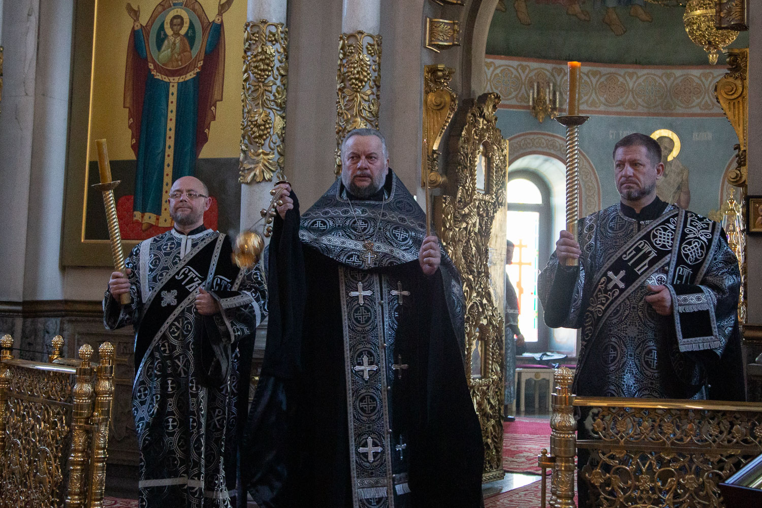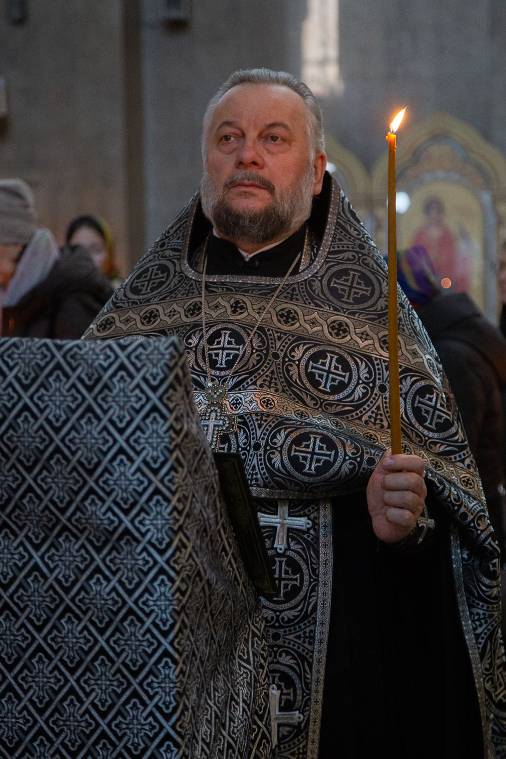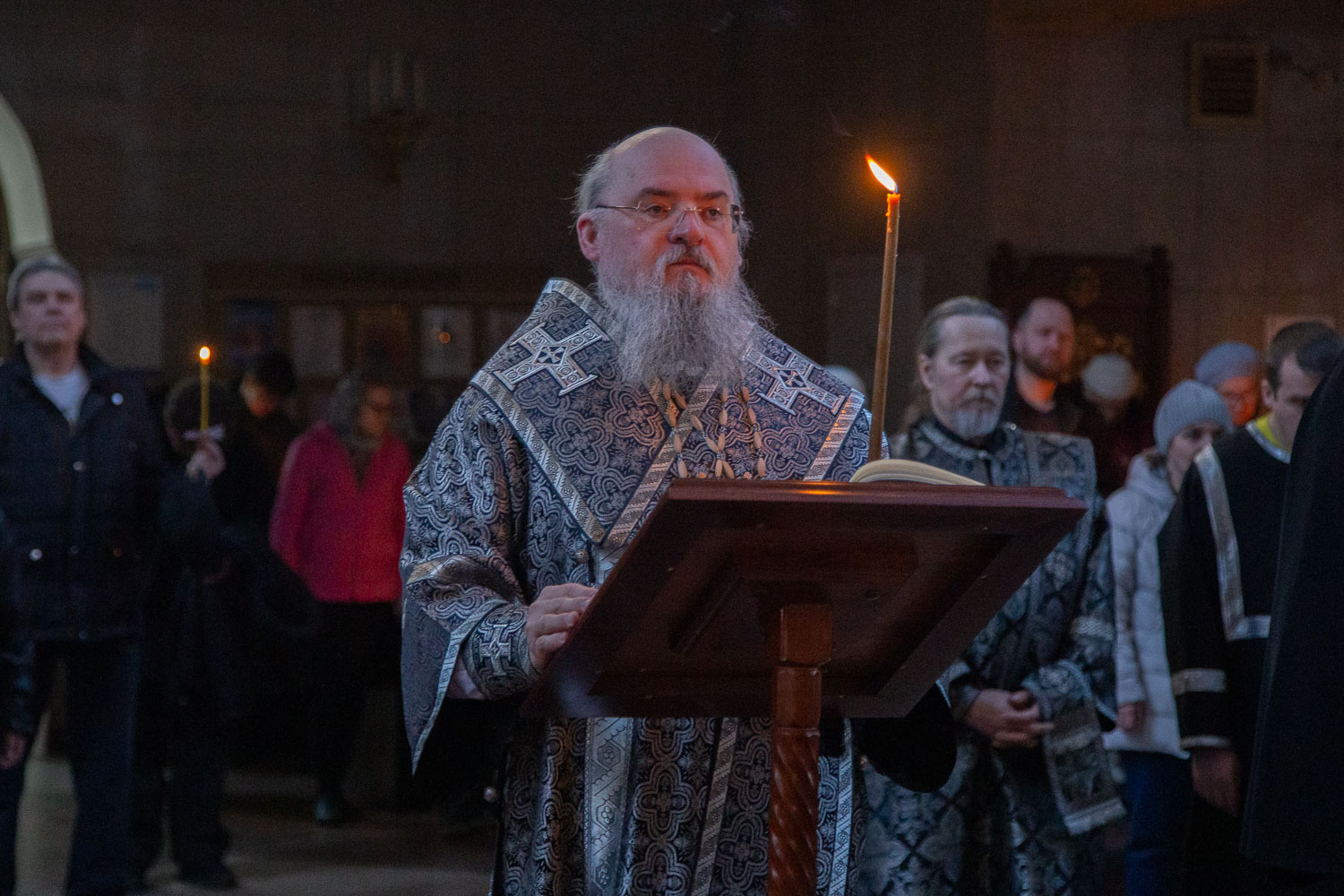 Его Высокопреосвященству сослужили: благочинный Правобережного церковного округа города Красноярска, настоятель храма протоиерей Максим Смоляков и клирики Красноярской епархии.