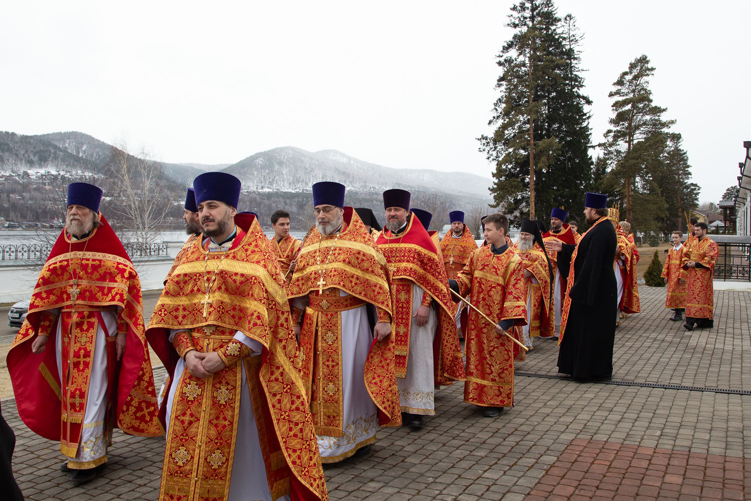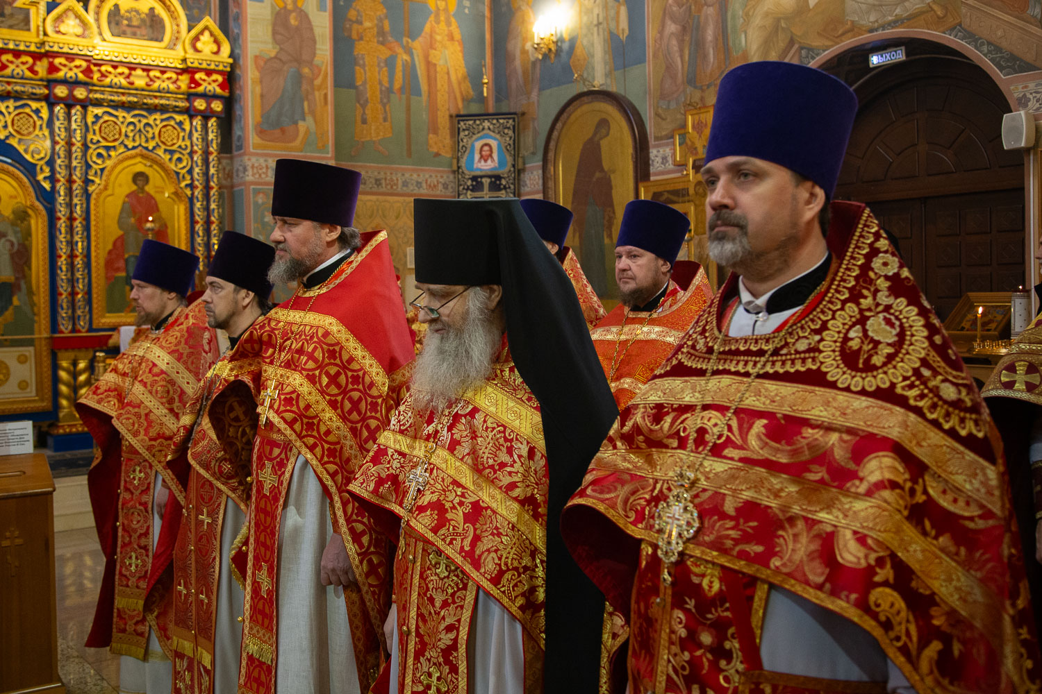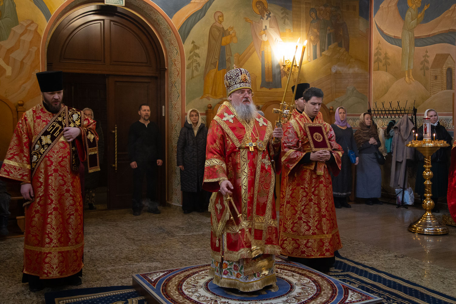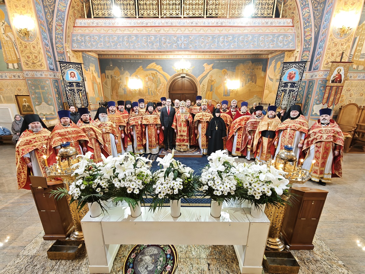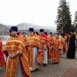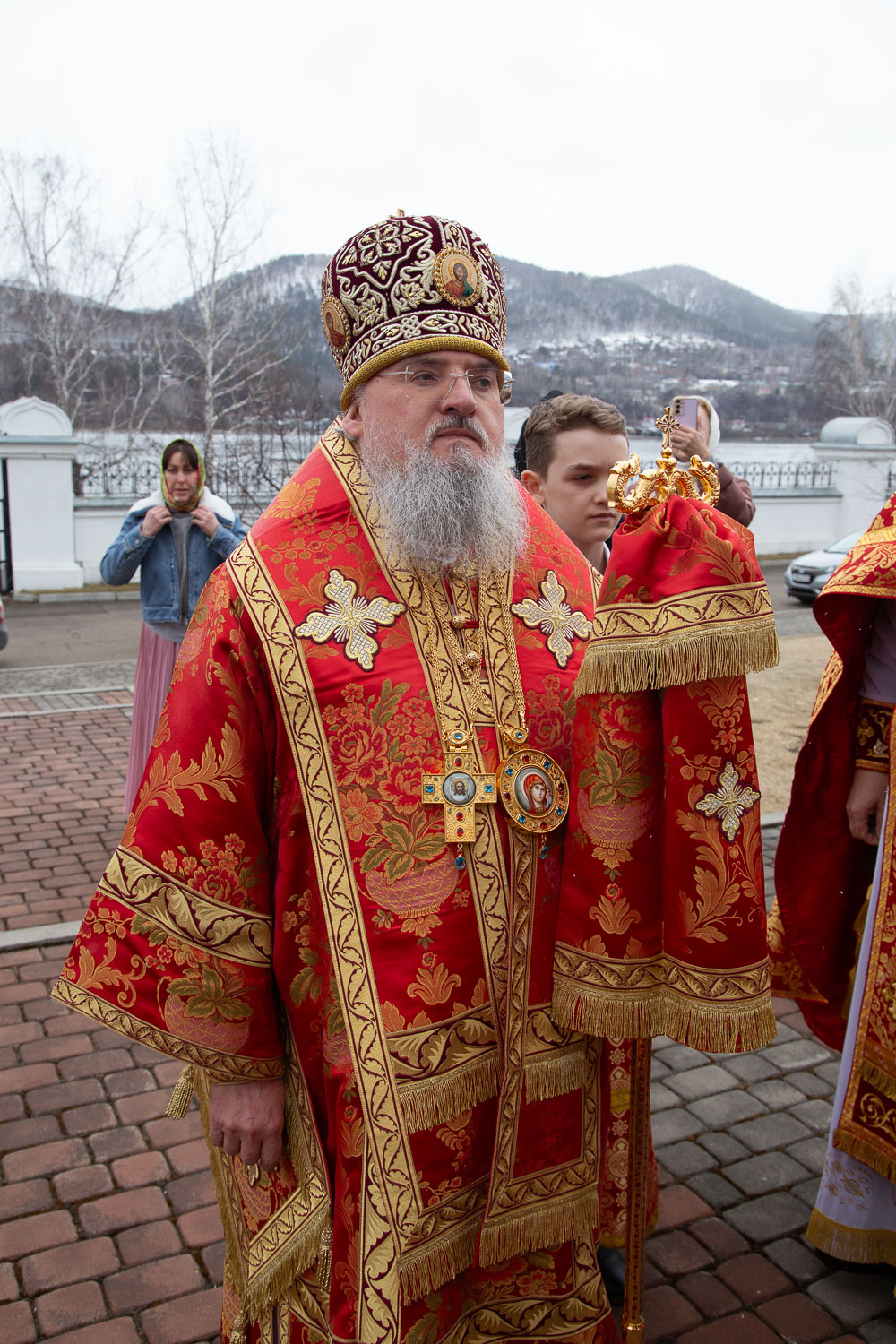 Его Высокопреосвященству сослужили: секретарь Красноярской епархии, благочинный церквей Левобережного городского округа Красноярска, наместник монастыря Успения Пресвятой Богородицы города Красноярска игумен Иннокентий (Нилов) и клирики Красноярской епархии.