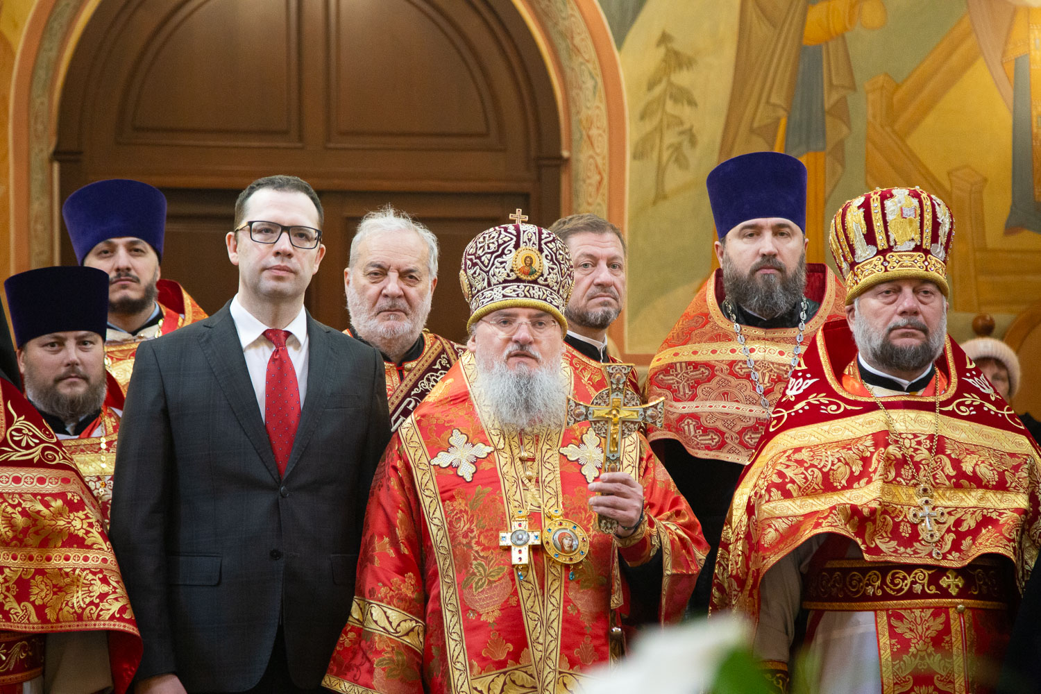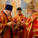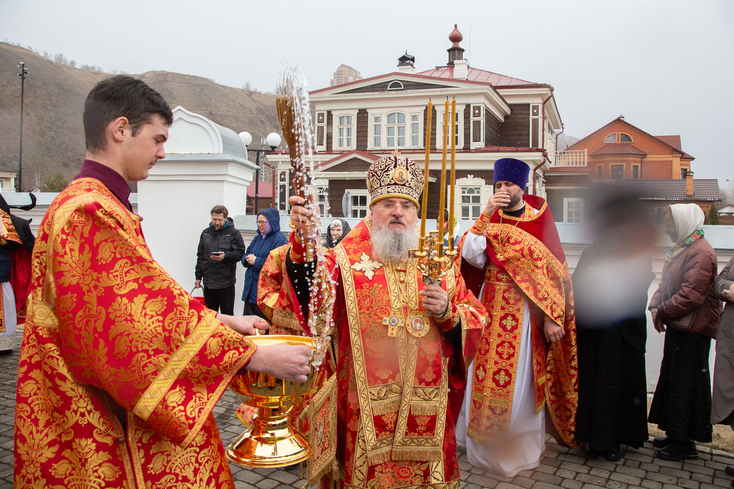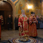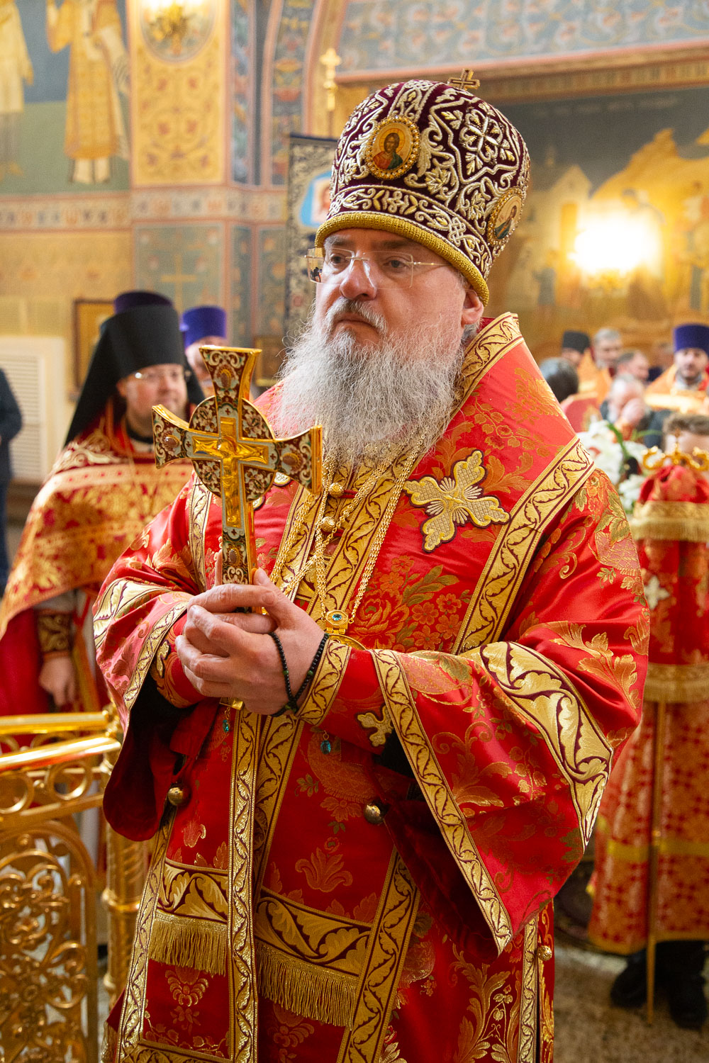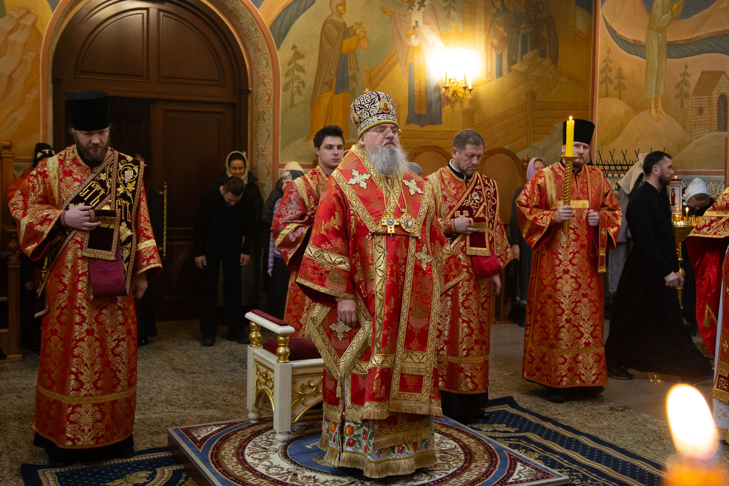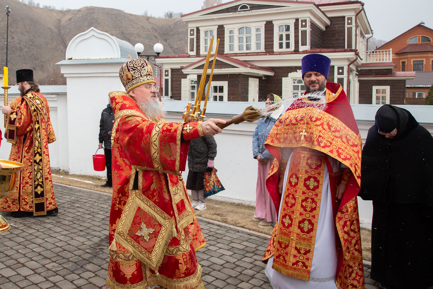 Его Высокопреосвященству сослужили: секретарь Красноярской епархии, благочинный церквей Левобережного городского округа Красноярска, наместник монастыря Успения Пресвятой Богородицы города Красноярска игумен Иннокентий (Нилов) и клирики Красноярской епархии.