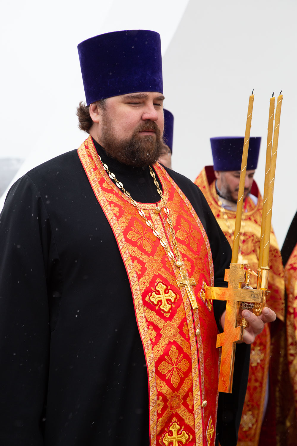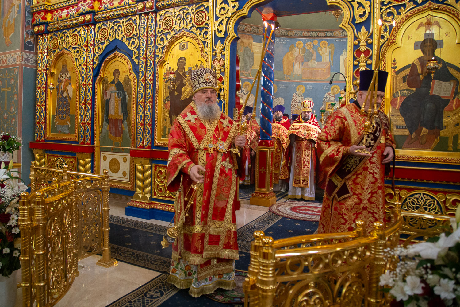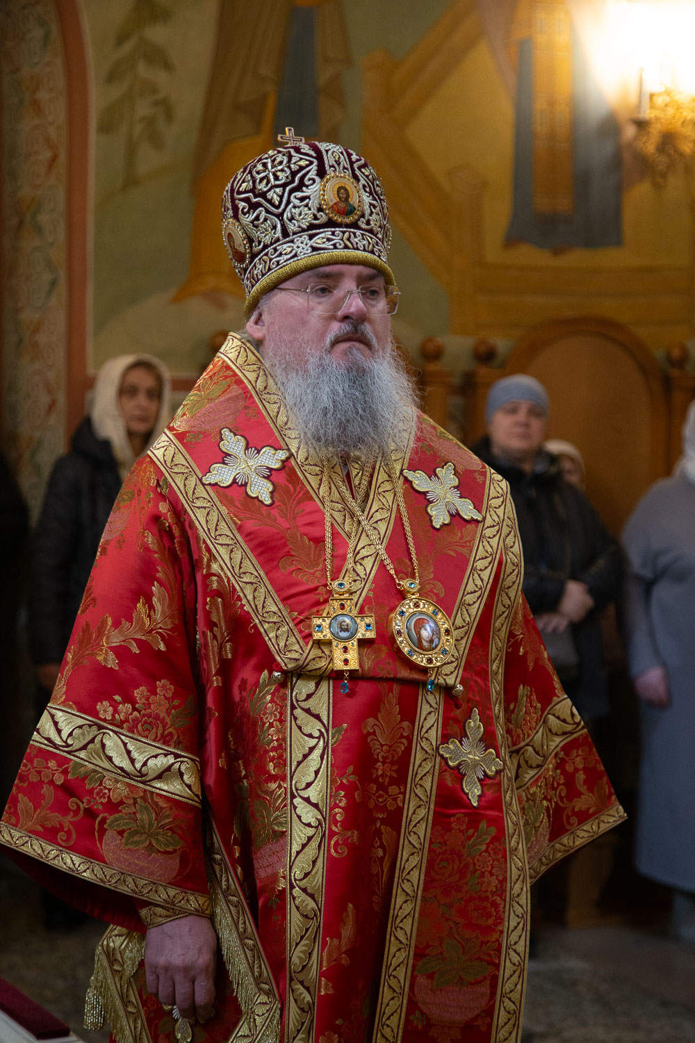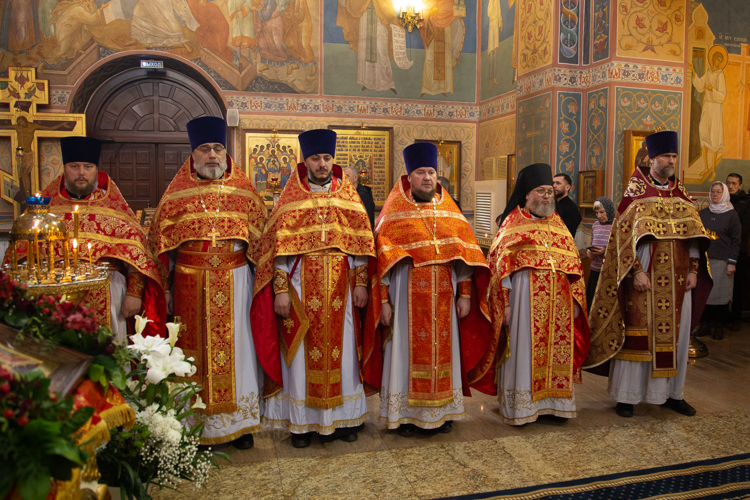 Его Высокопреосвященству сослужили: секретарь Красноярской епархии, благочинный церквей Левобережного городского округа Красноярска, наместник монастыря Успения Пресвятой Богородицы города Красноярска игумен Иннокентий (Нилов) и клирики Красноярской епархии.