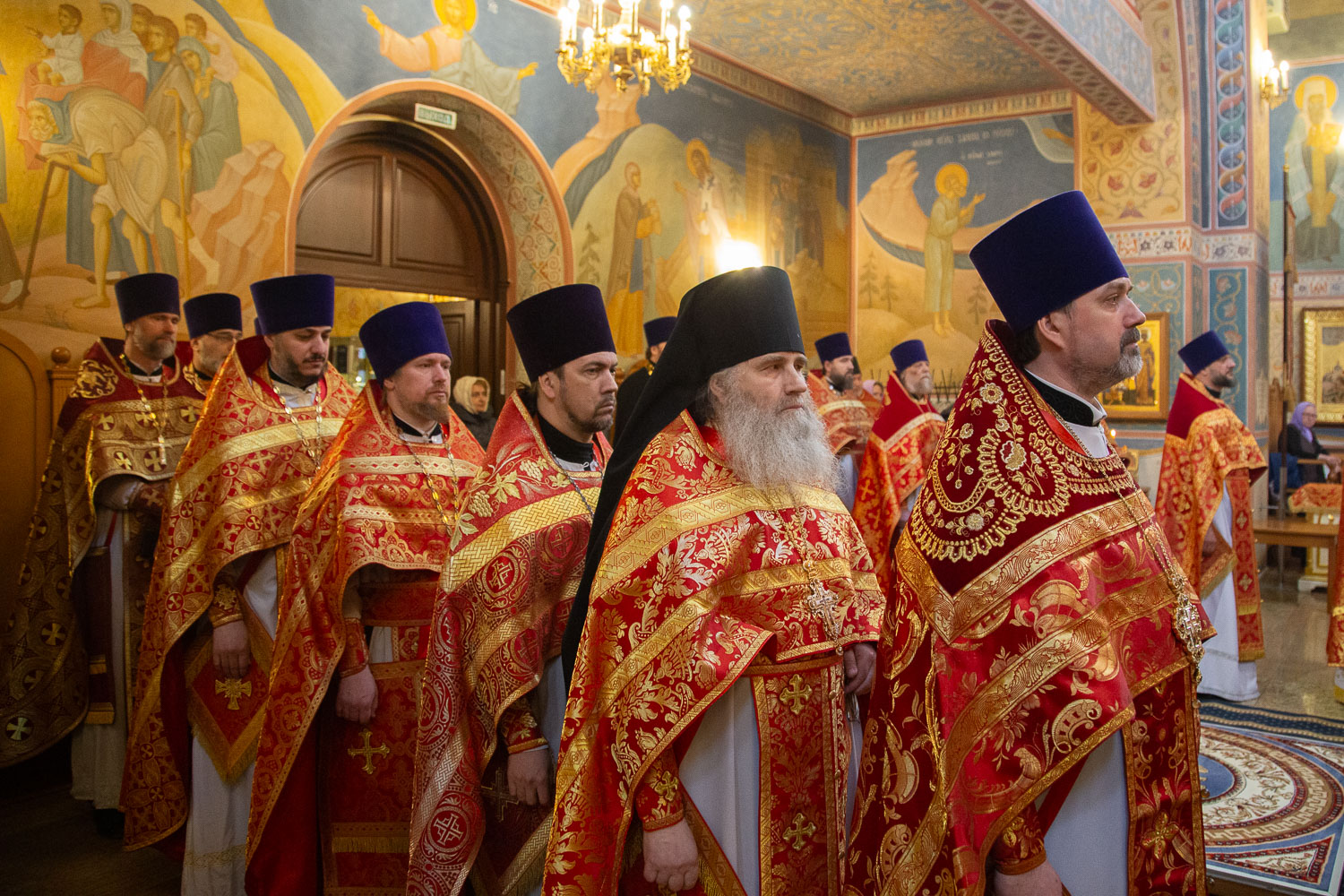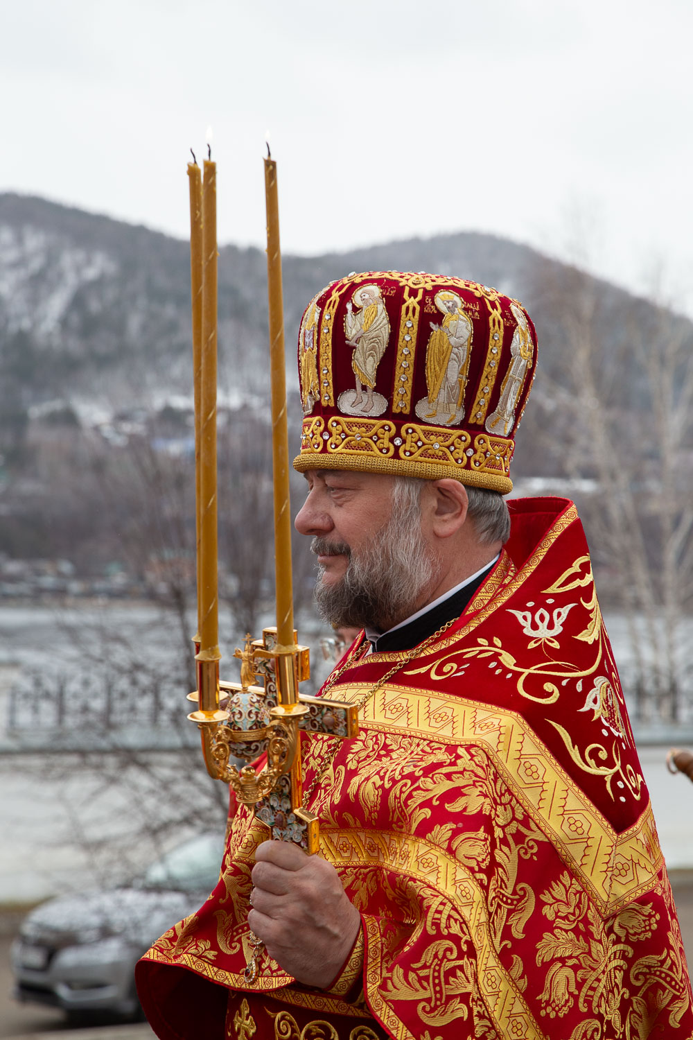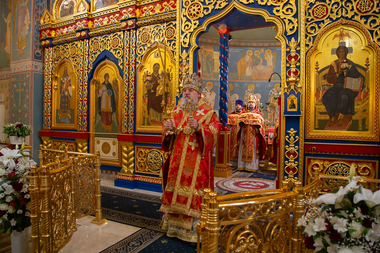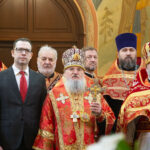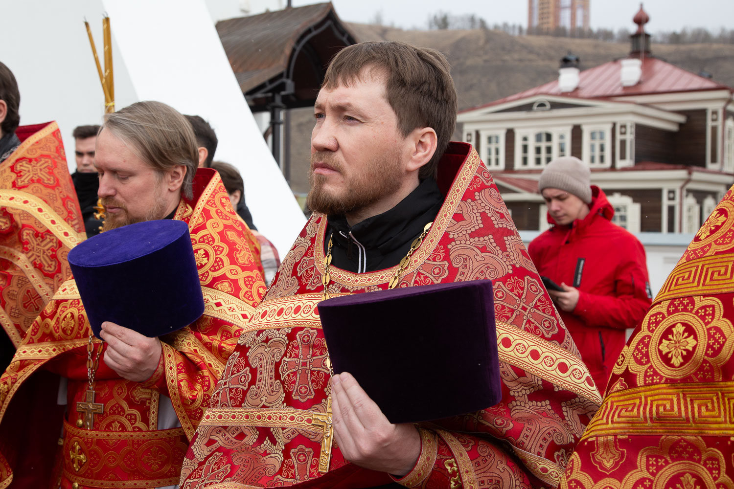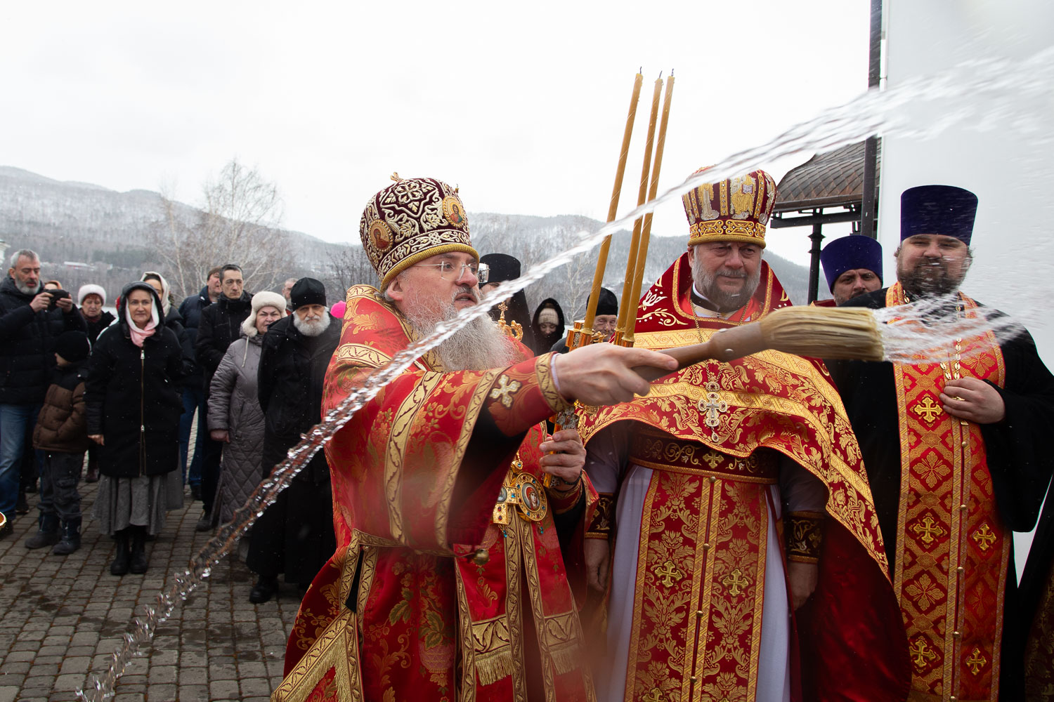Его Высокопреосвященству сослужили: секретарь Красноярской епархии, благочинный церквей Левобережного городского округа Красноярска, наместник монастыря Успения Пресвятой Богородицы города Красноярска игумен Иннокентий (Нилов) и клирики Красноярской епархии.