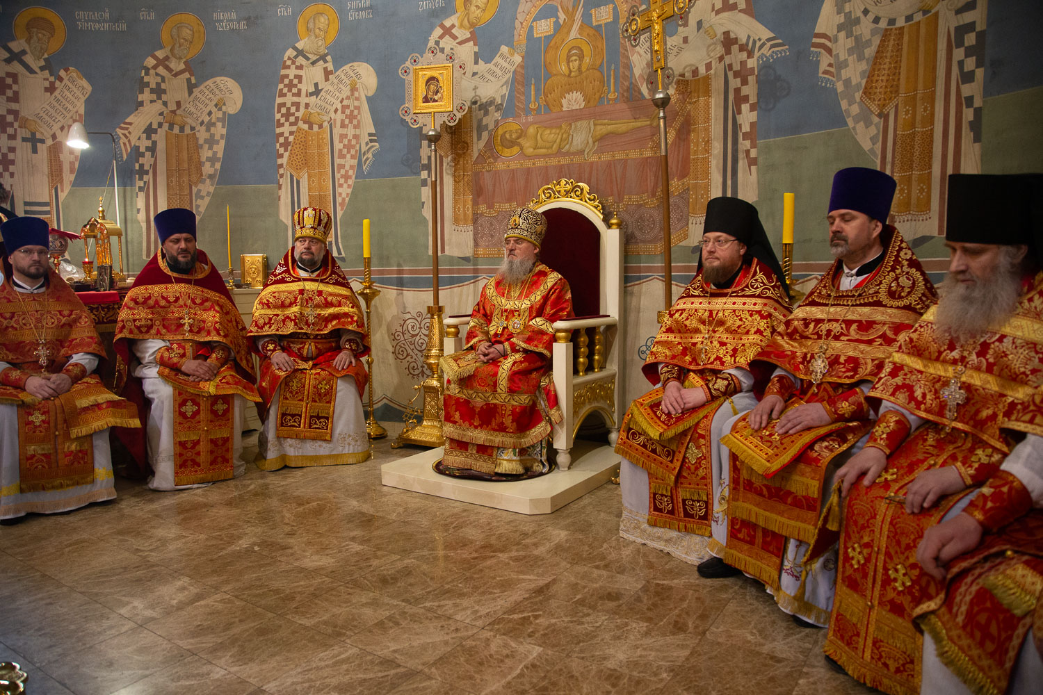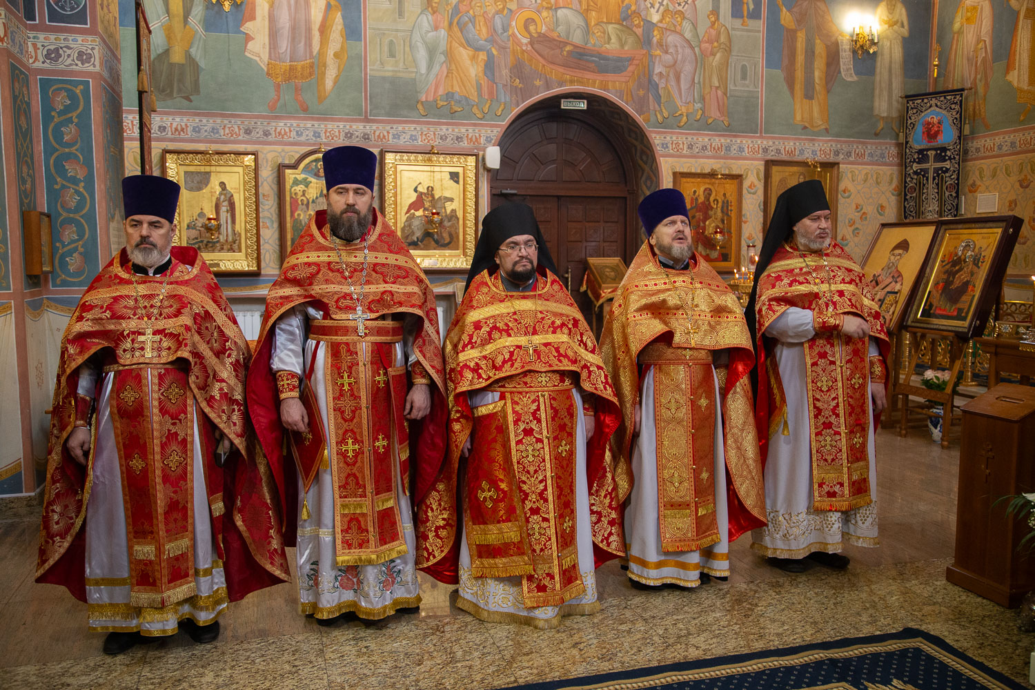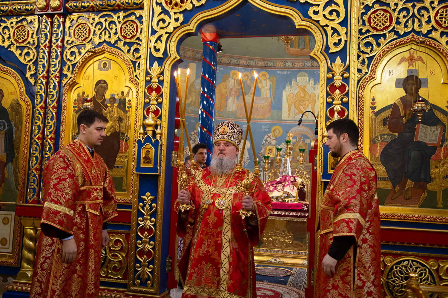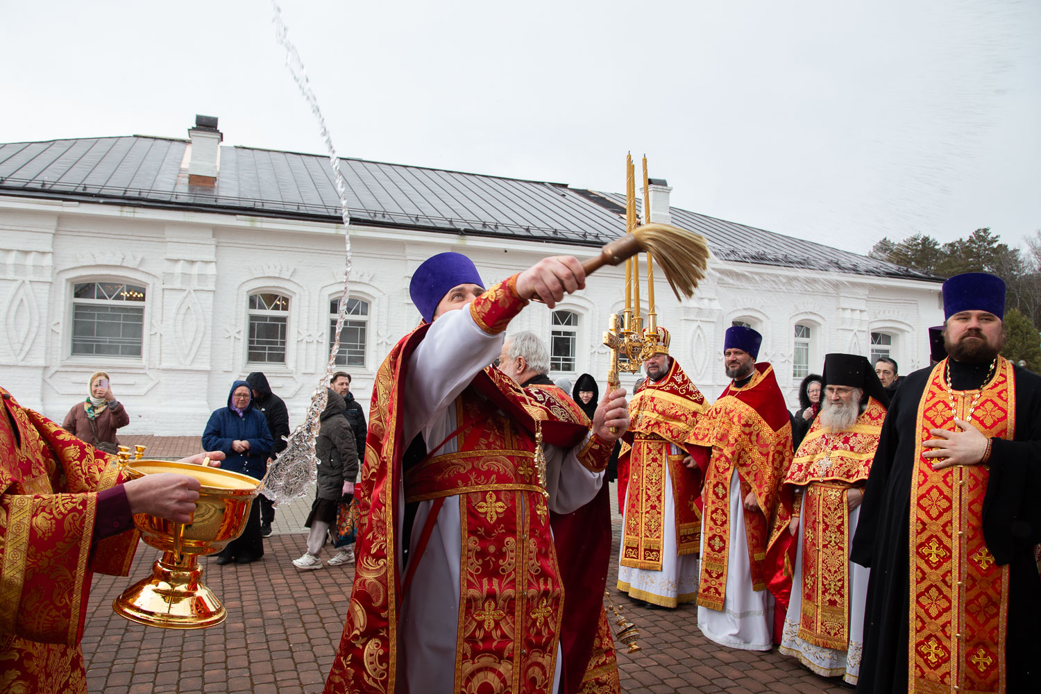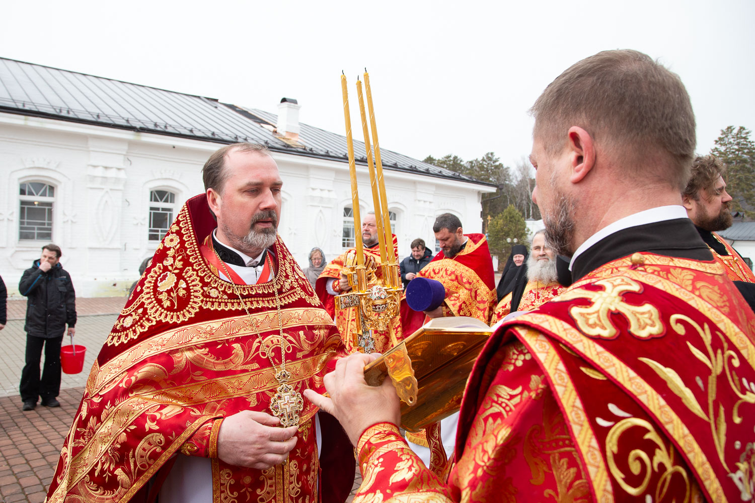 Его Высокопреосвященству сослужили: секретарь Красноярской епархии, благочинный церквей Левобережного городского округа Красноярска, наместник монастыря Успения Пресвятой Богородицы города Красноярска игумен Иннокентий (Нилов) и клирики Красноярской епархии.