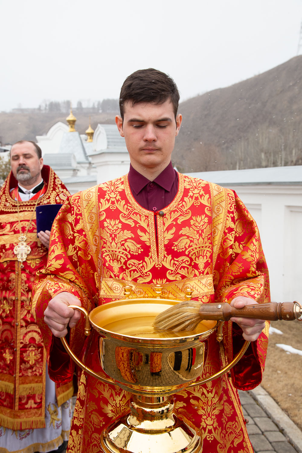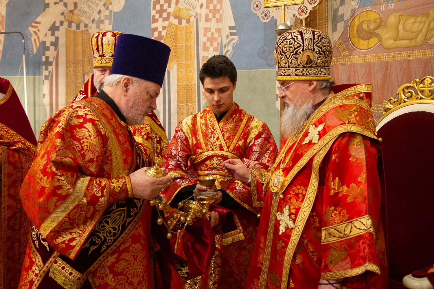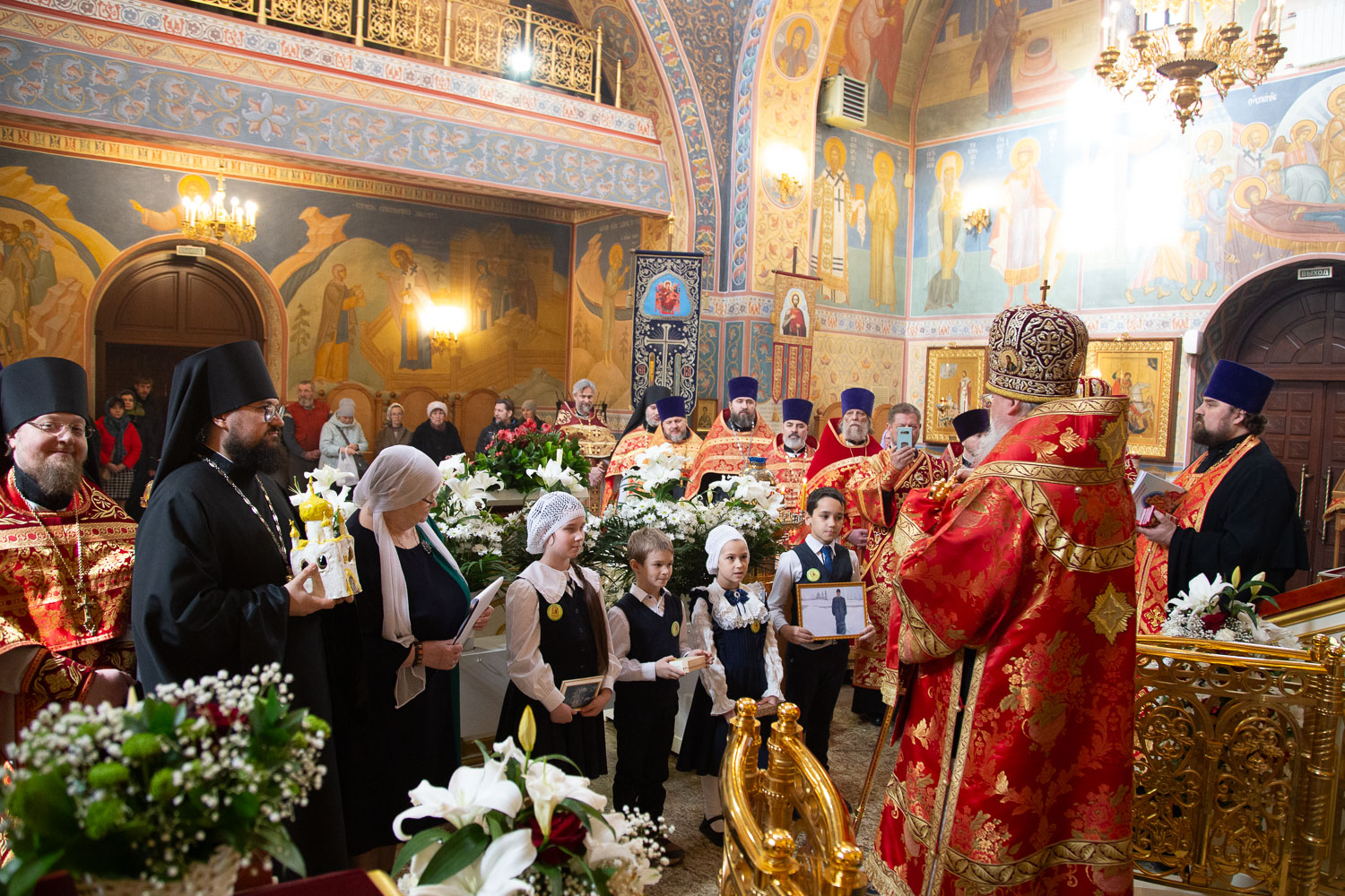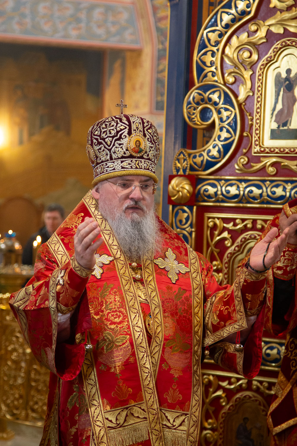 Его Высокопреосвященству сослужили: секретарь Красноярской епархии, благочинный церквей Левобережного городского округа Красноярска, наместник монастыря Успения Пресвятой Богородицы города Красноярска игумен Иннокентий (Нилов) и клирики Красноярской епархии.