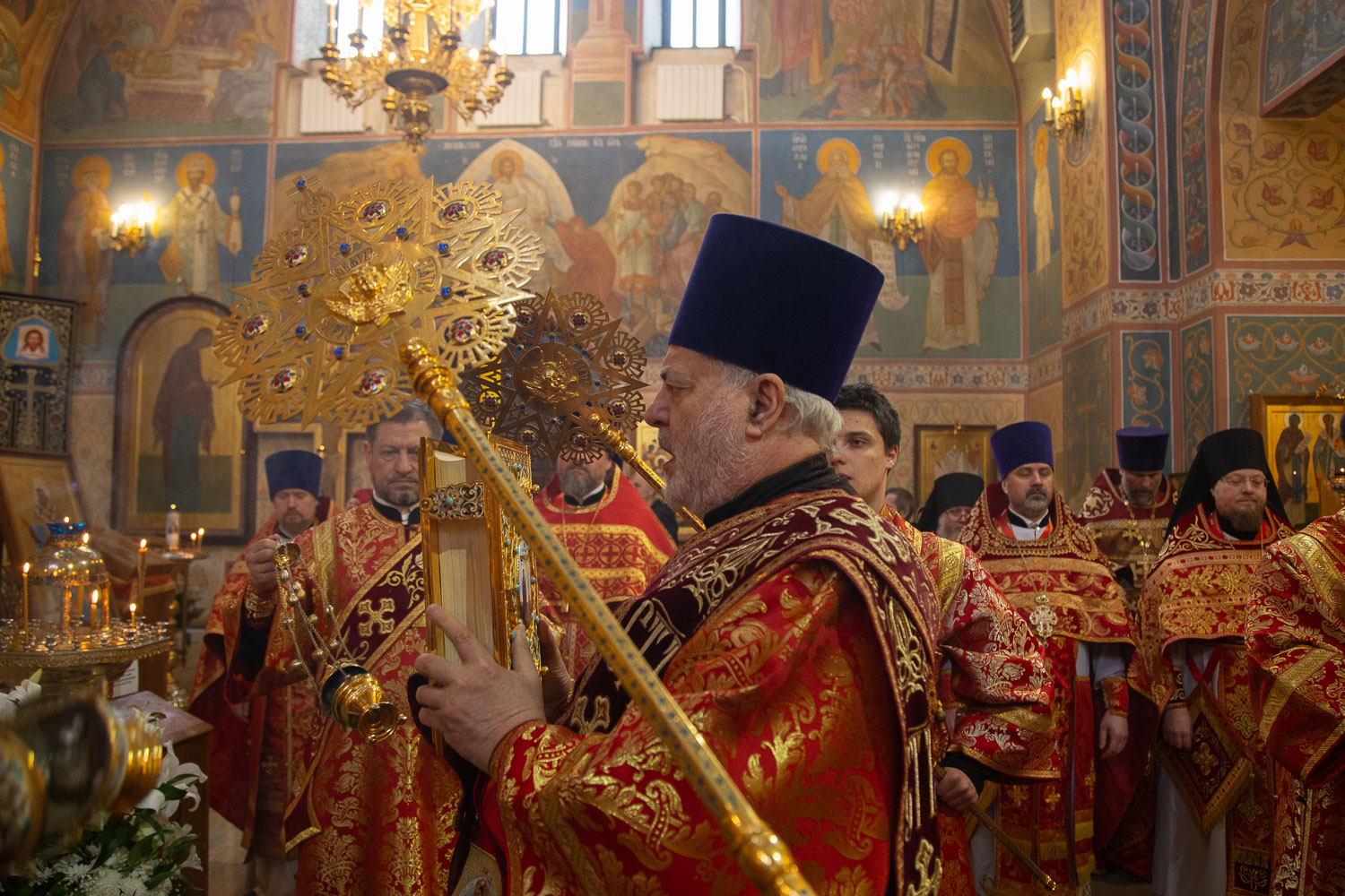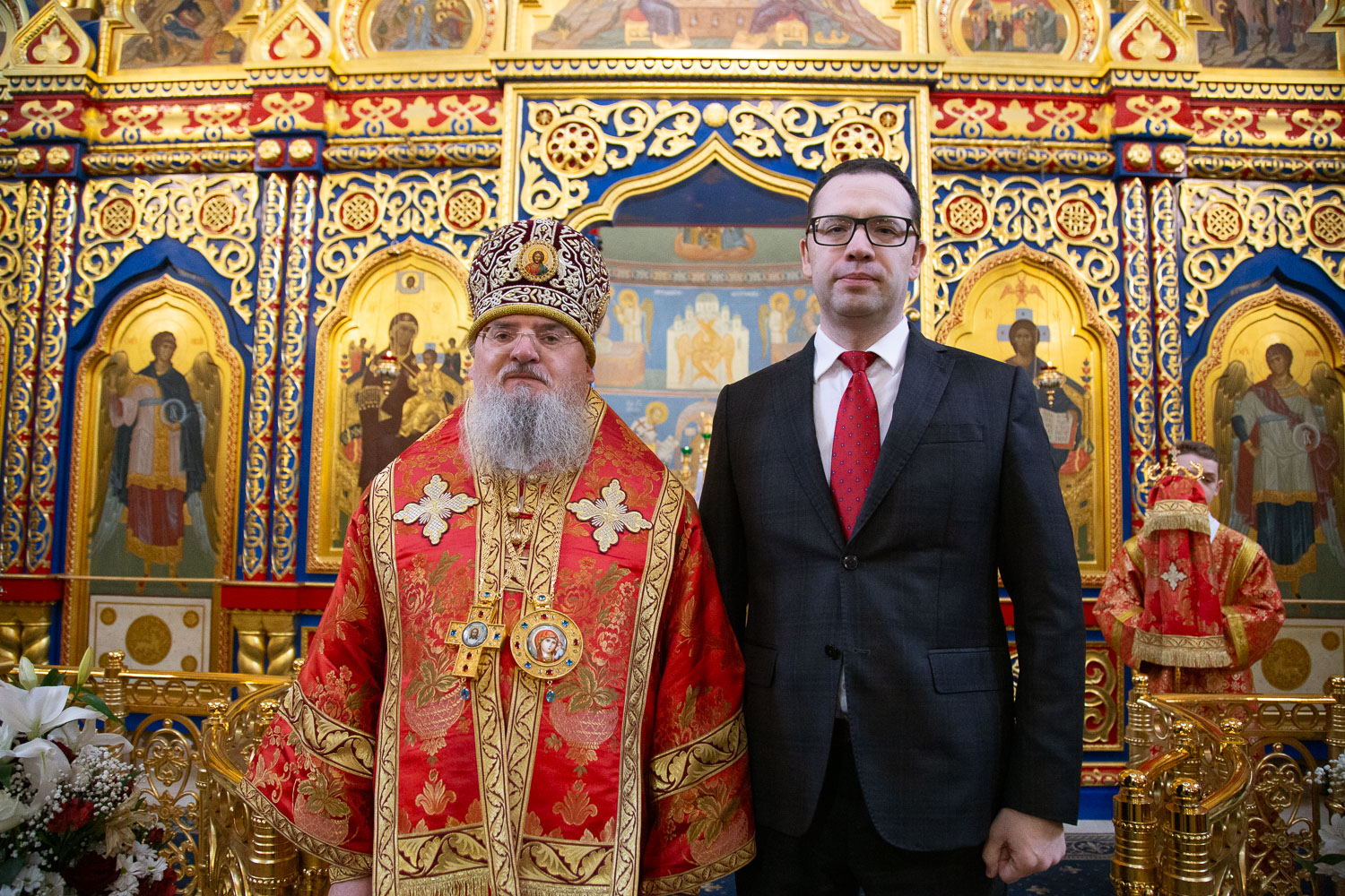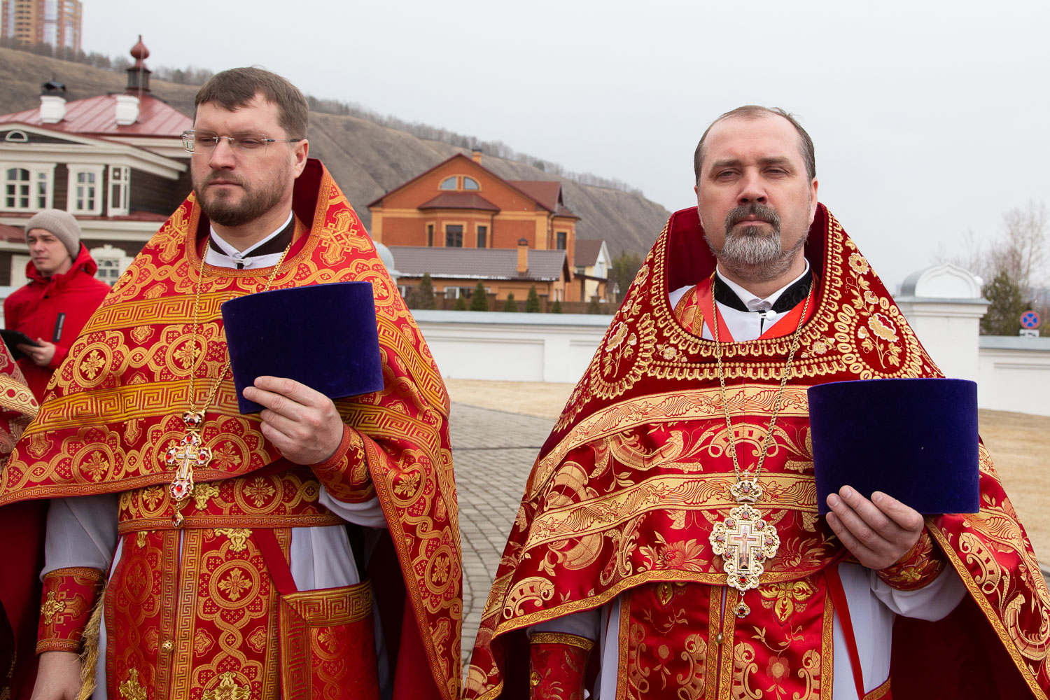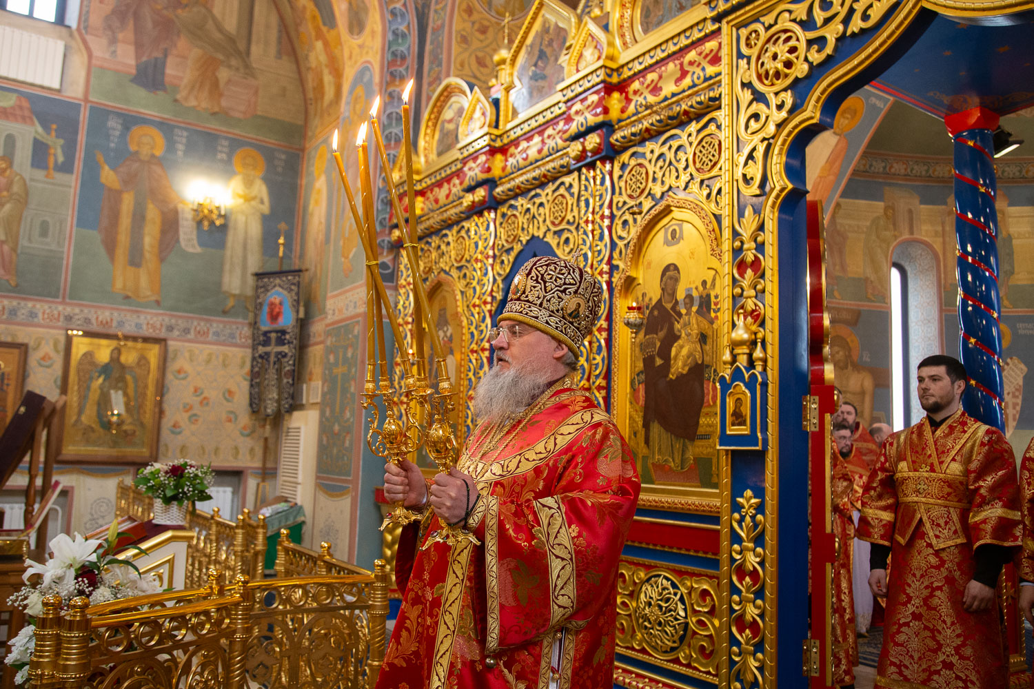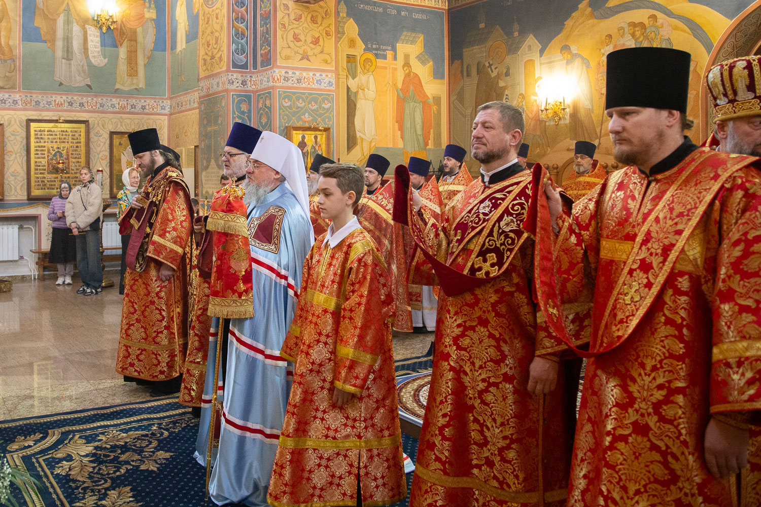 Его Высокопреосвященству сослужили: секретарь Красноярской епархии, благочинный церквей Левобережного городского округа Красноярска, наместник монастыря Успения Пресвятой Богородицы города Красноярска игумен Иннокентий (Нилов) и клирики Красноярской епархии.