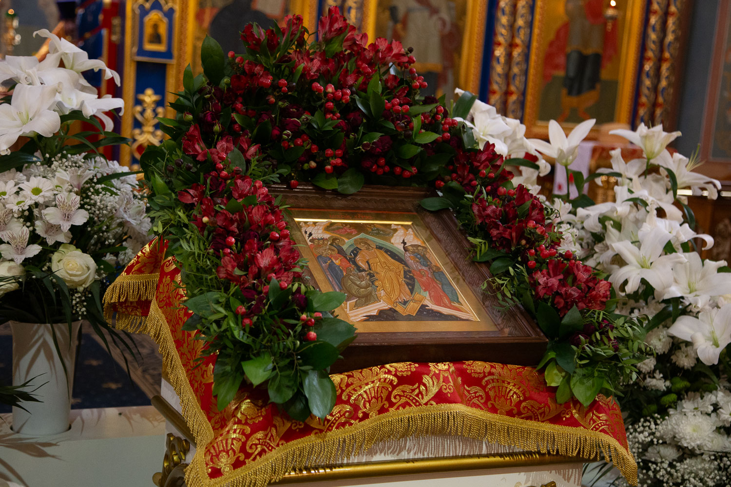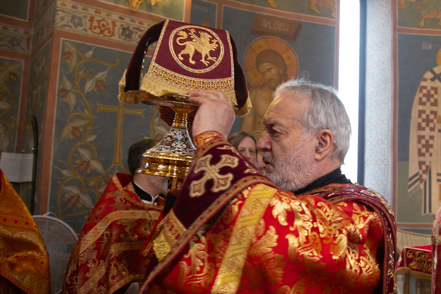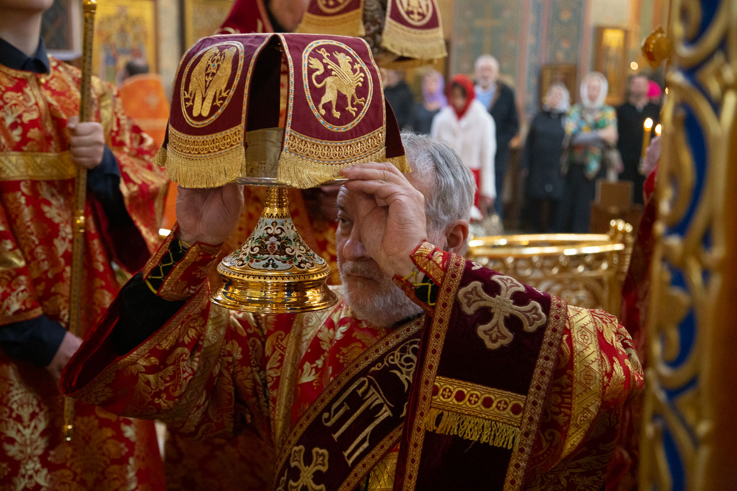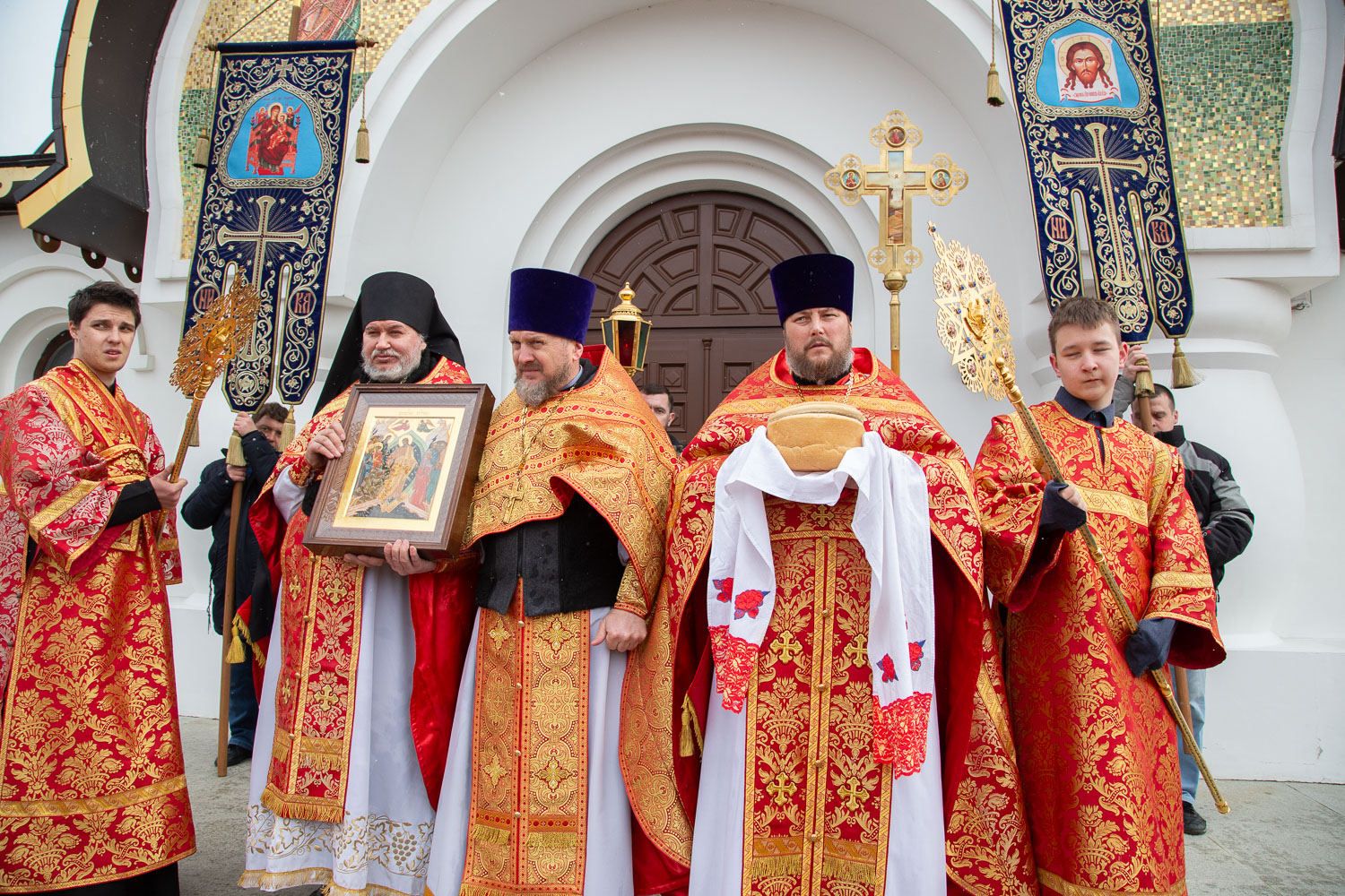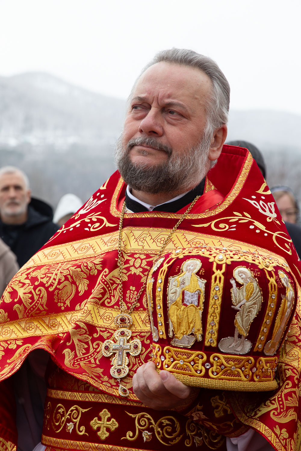 Его Высокопреосвященству сослужили: секретарь Красноярской епархии, благочинный церквей Левобережного городского округа Красноярска, наместник монастыря Успения Пресвятой Богородицы города Красноярска игумен Иннокентий (Нилов) и клирики Красноярской епархии.