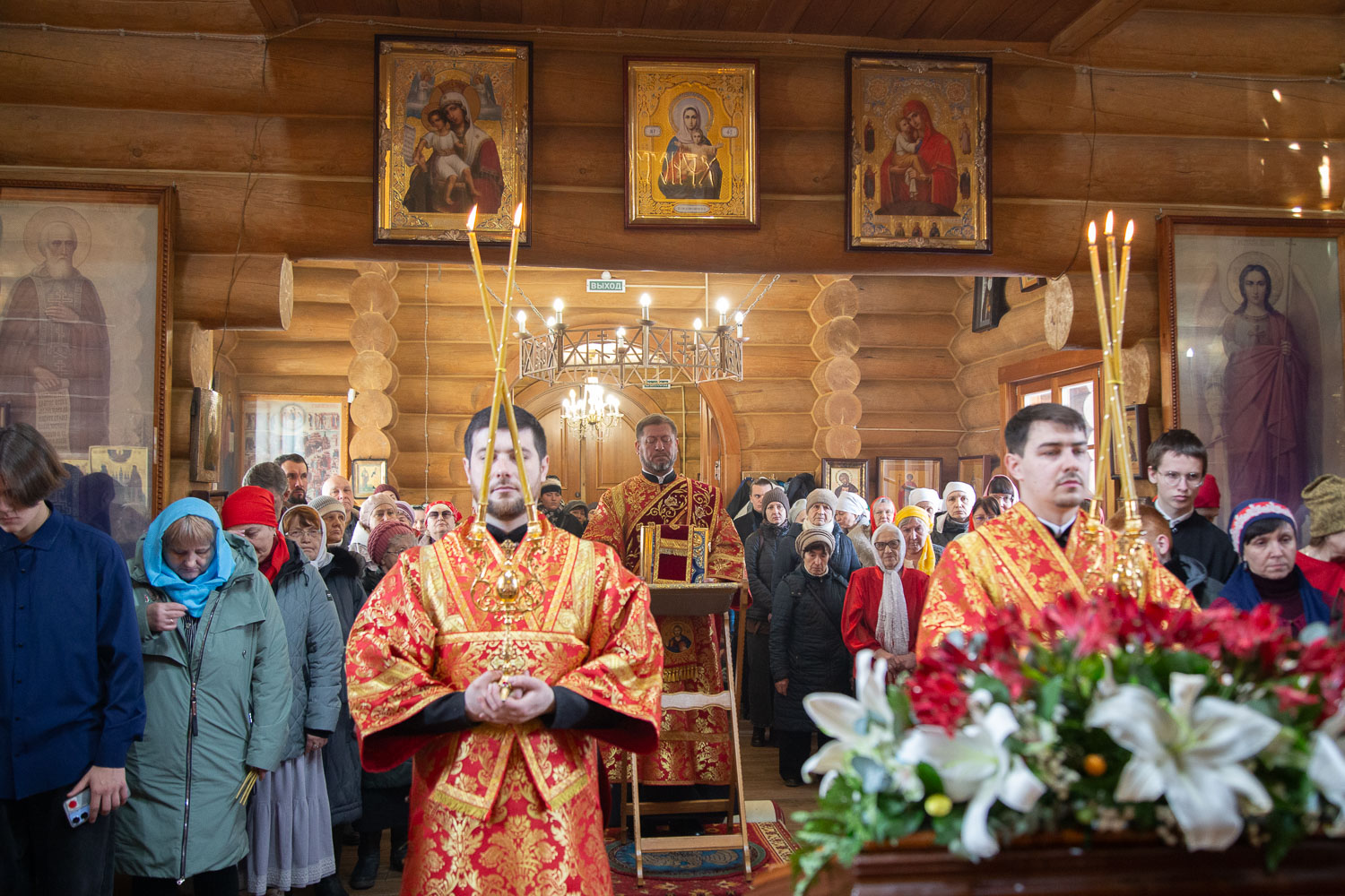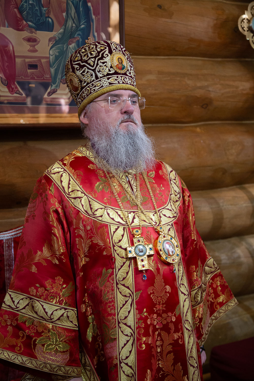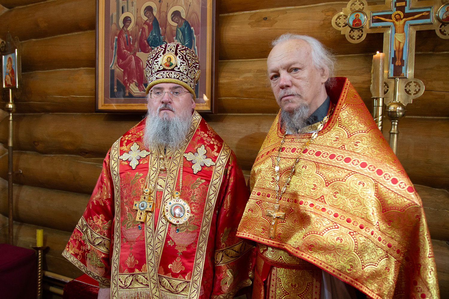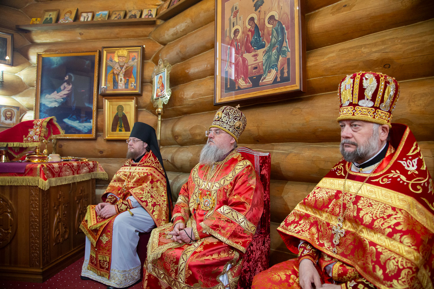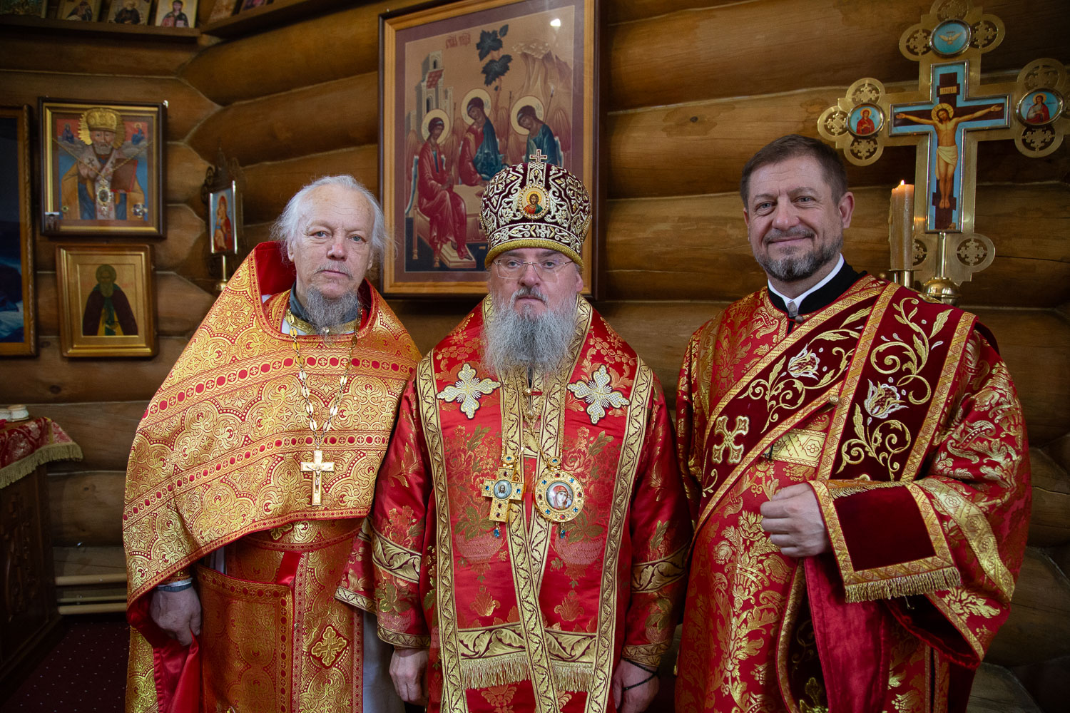 Его Высокопреосвященству сослужили: настоятель храма в честь иконы Божией Матери «Знамение» Абалацкая протоиерей Димитрий Карнаухов; клирики Красноярской епархии.