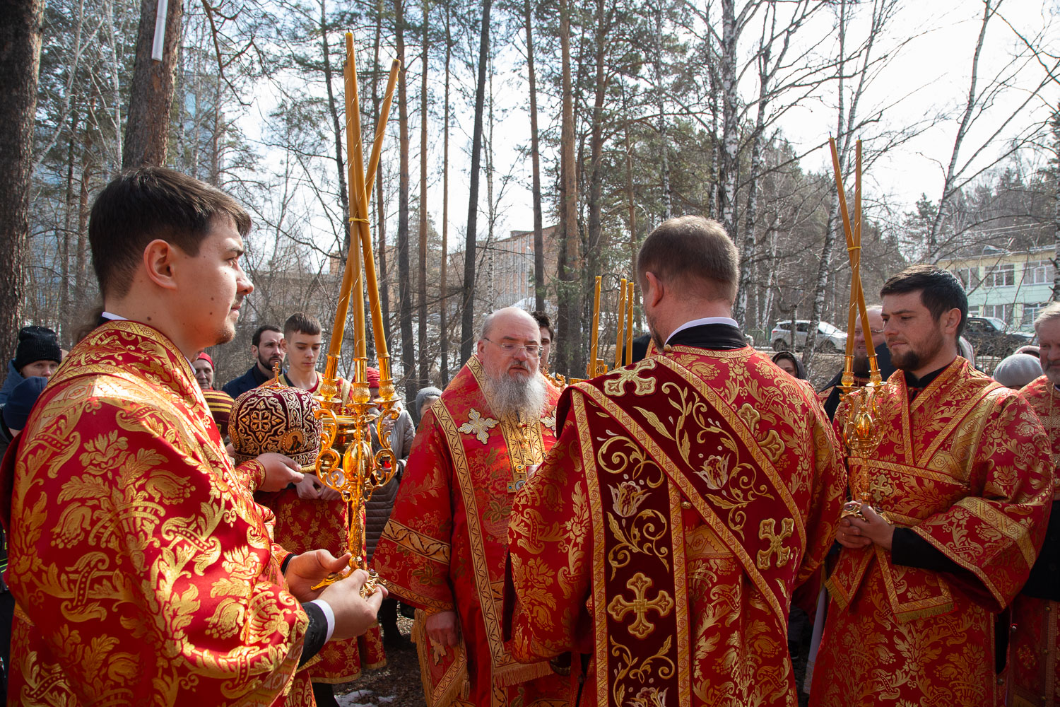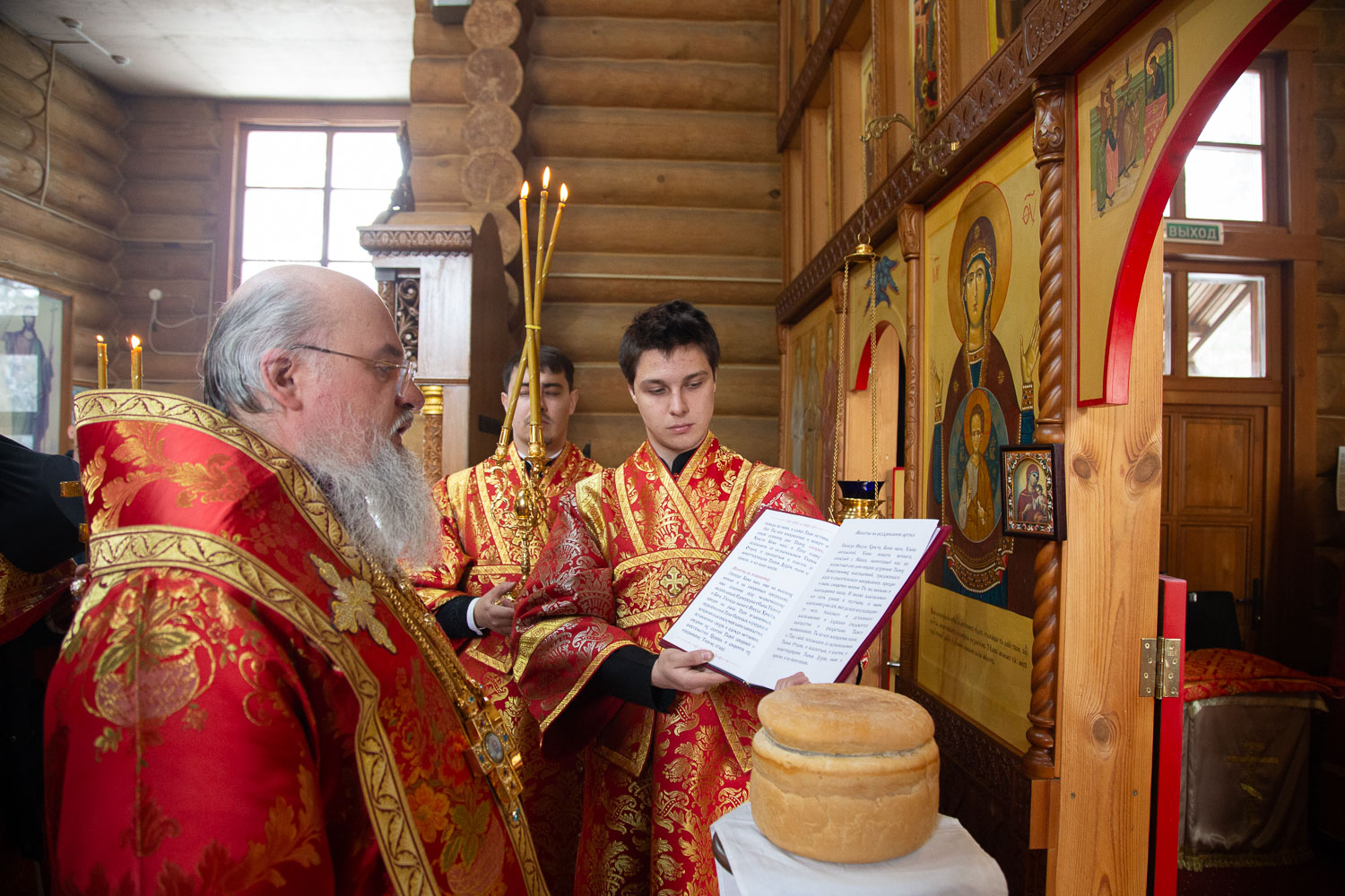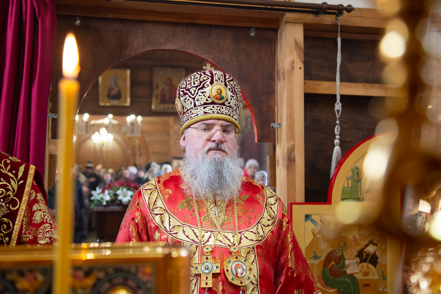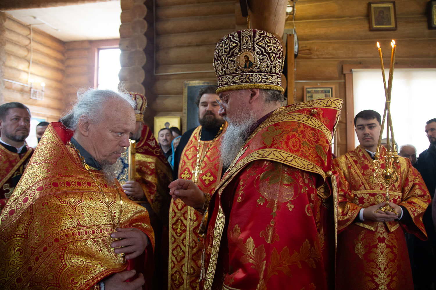 Его Высокопреосвященству сослужили: настоятель храма в честь иконы Божией Матери «Знамение» Абалацкая протоиерей Димитрий Карнаухов; клирики Красноярской епархии.