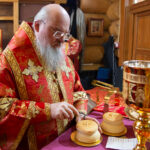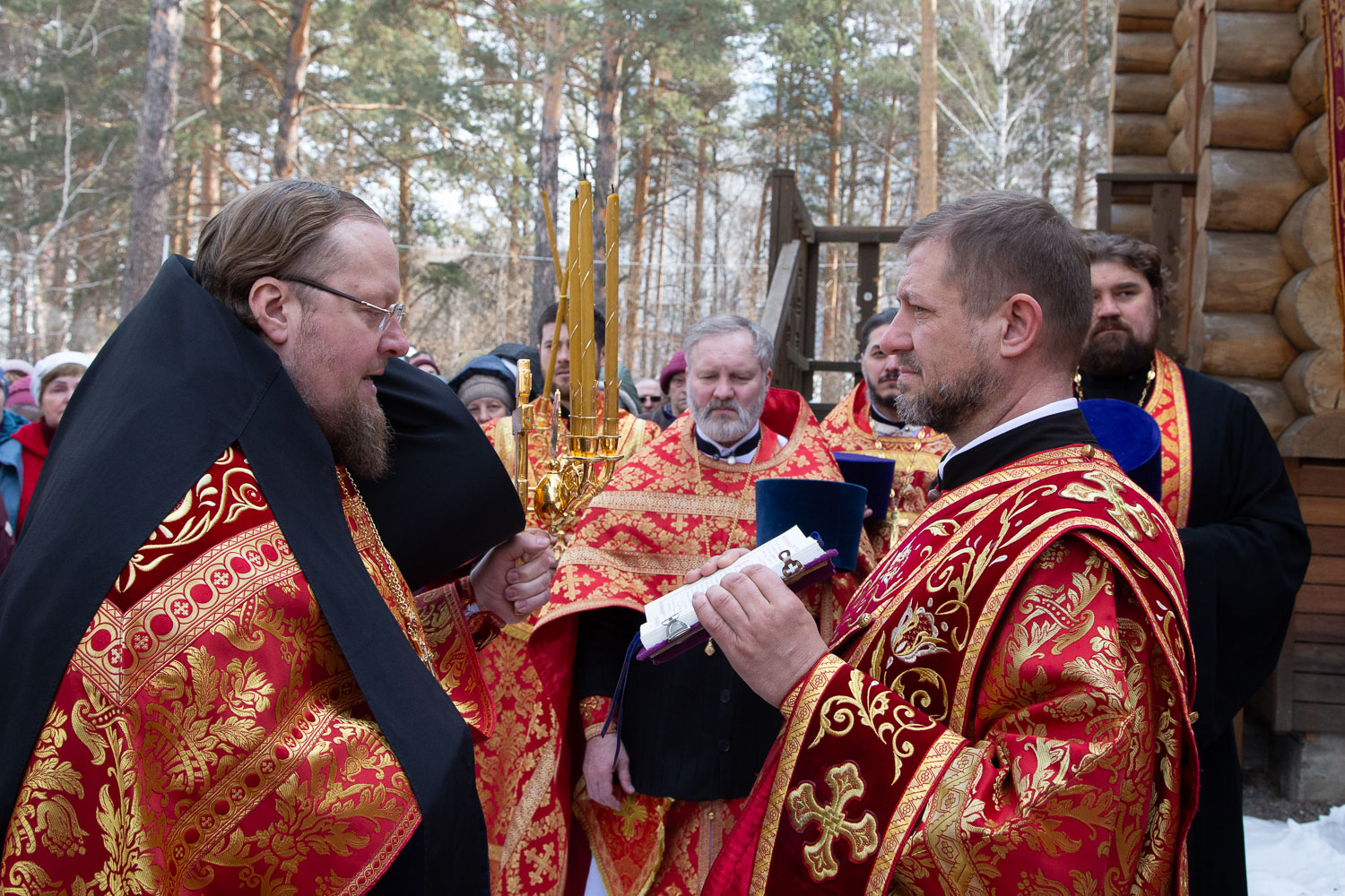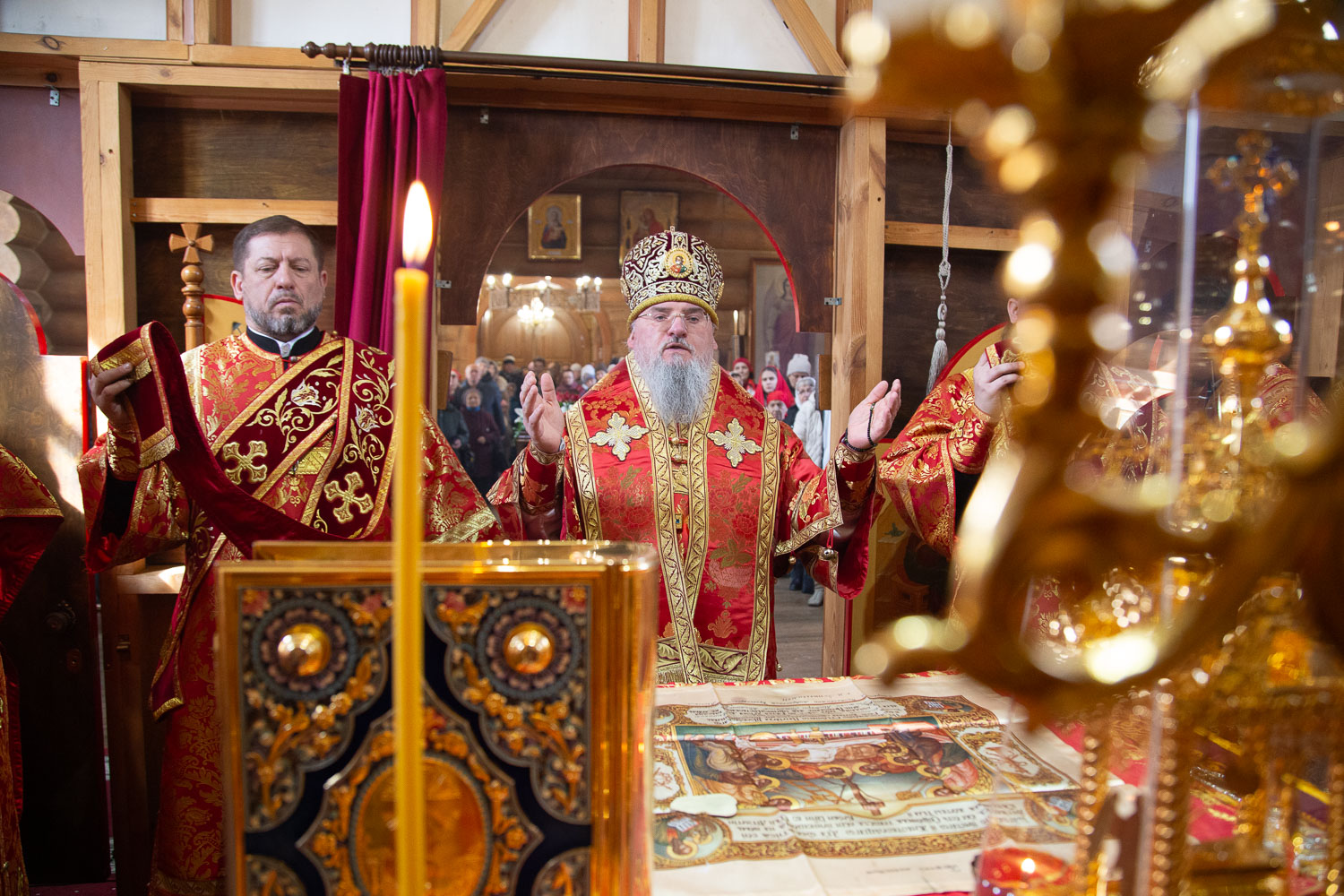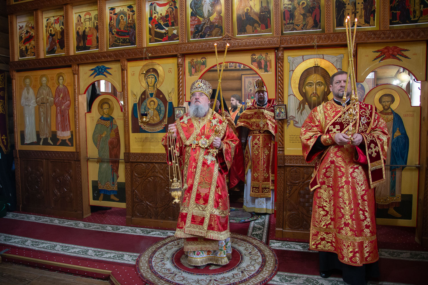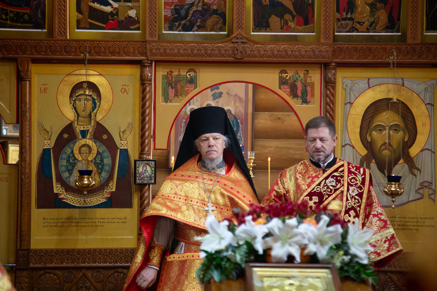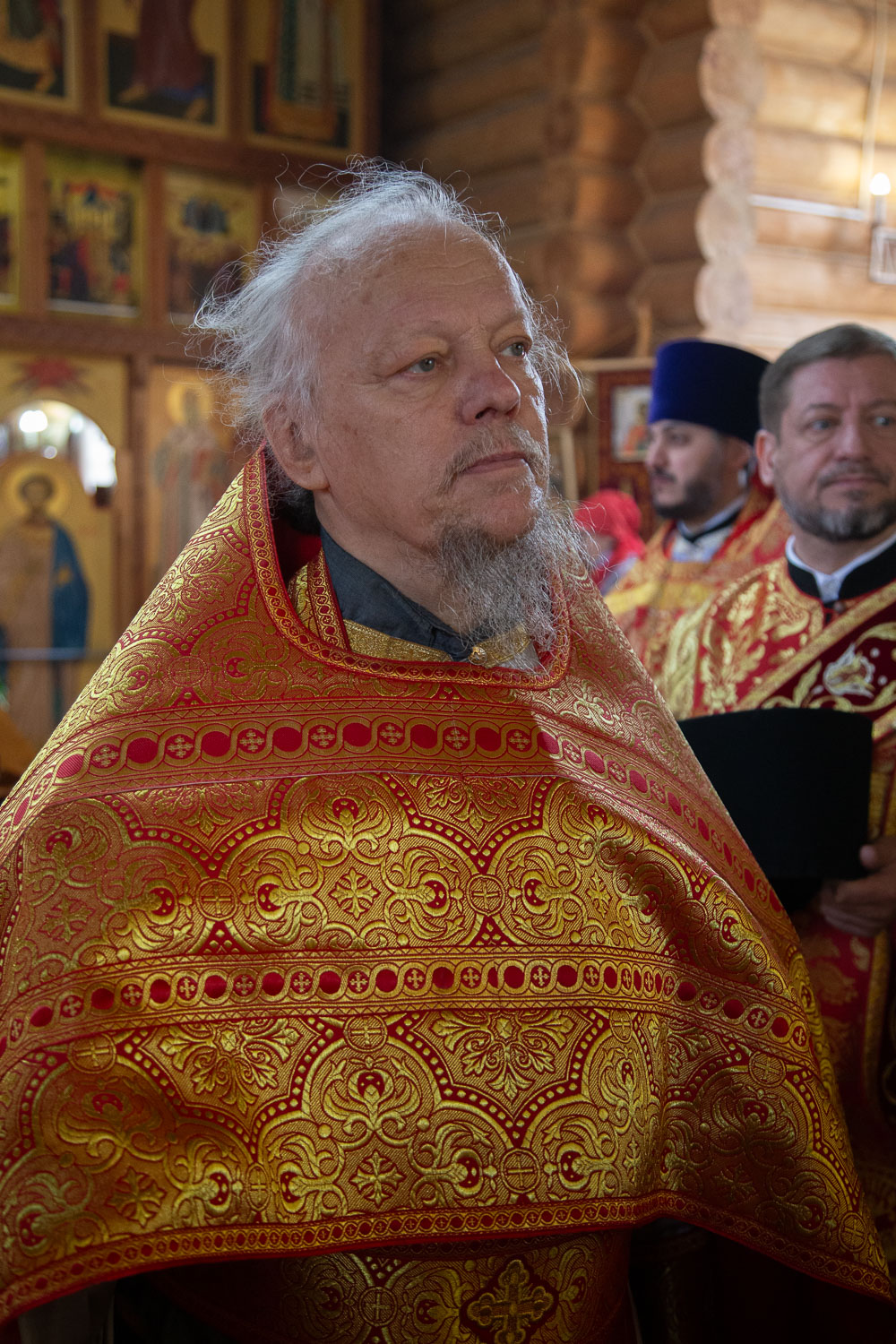 Его Высокопреосвященству сослужили: настоятель храма в честь иконы Божией Матери «Знамение» Абалацкая протоиерей Димитрий Карнаухов; клирики Красноярской епархии.