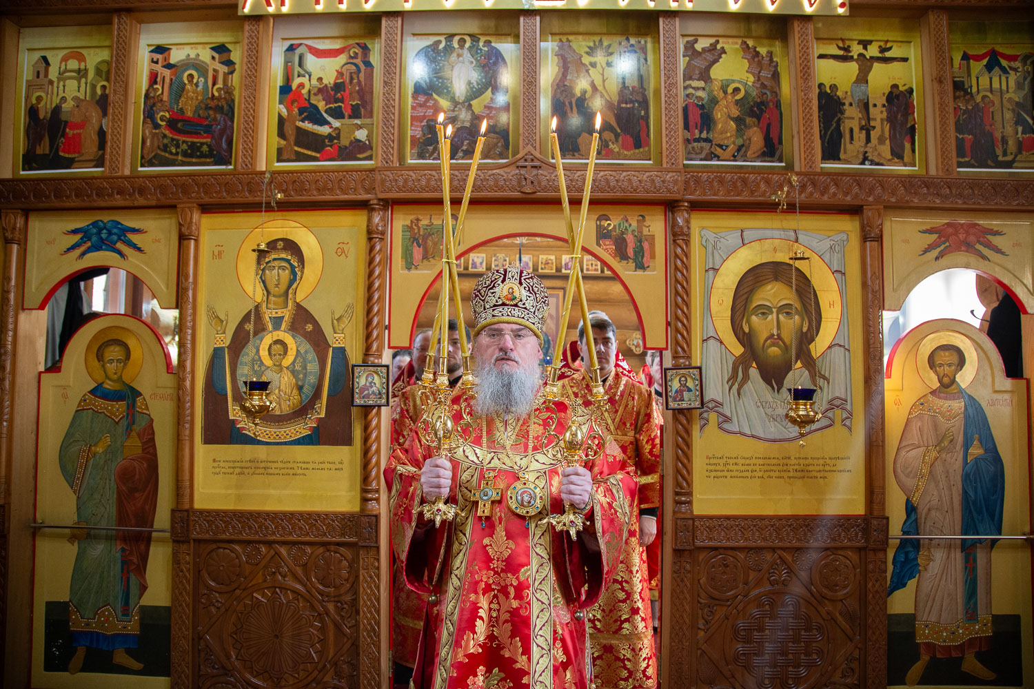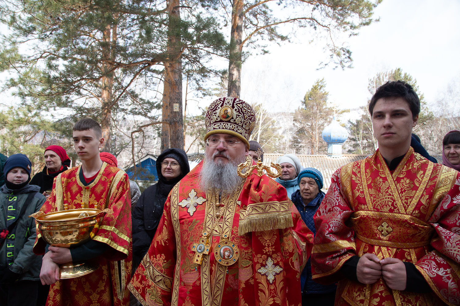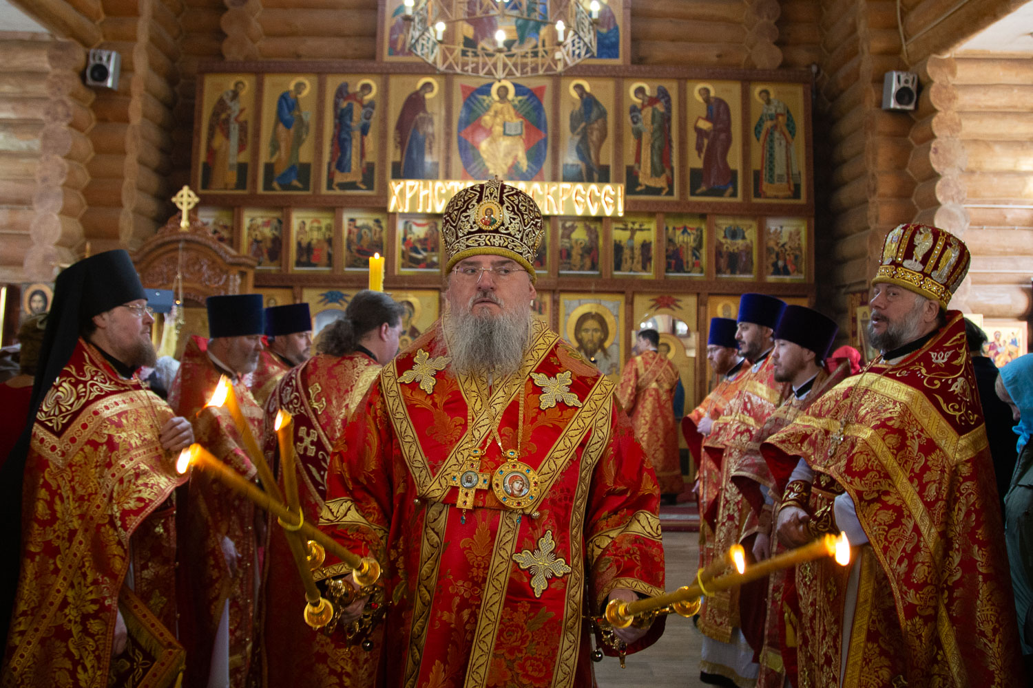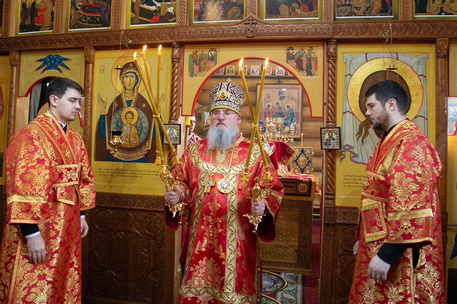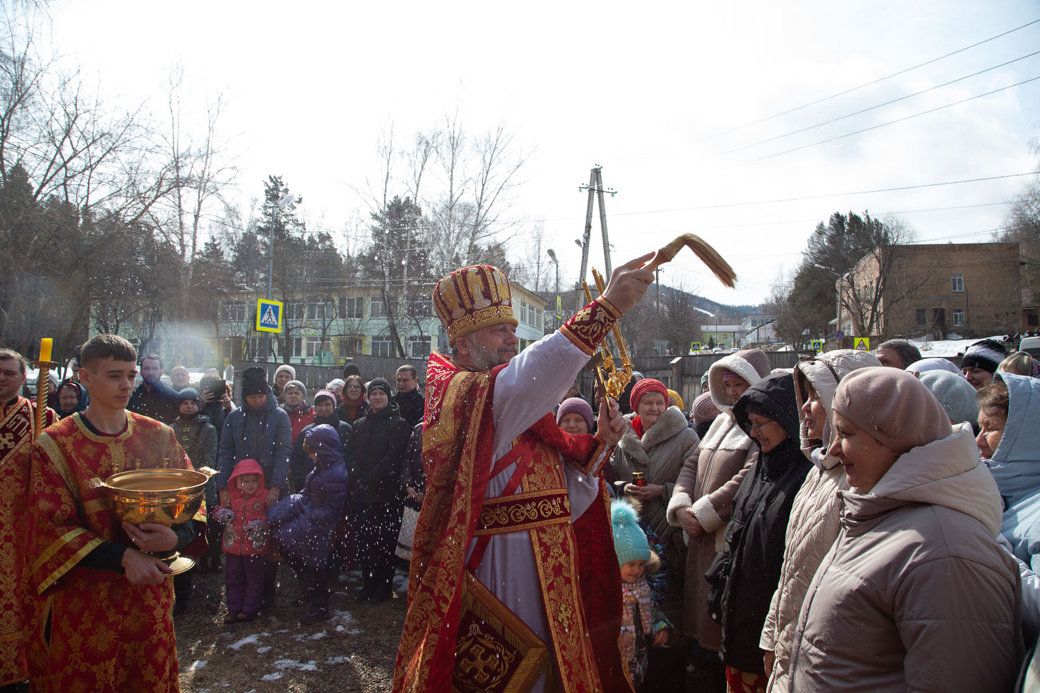 Была совершена молитва на раздробление артоса, после чего владыка Никита возглавил крестный ход вокруг собора и по завершению богослужения обратился к собравшимся с архипастырским словом.