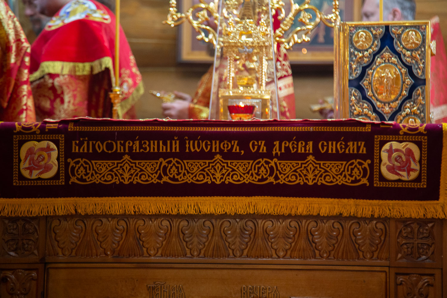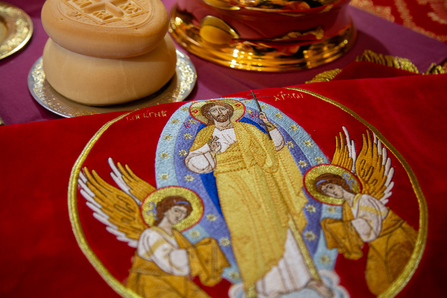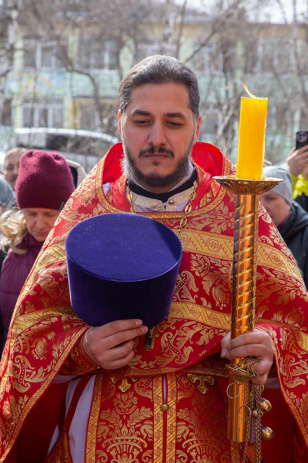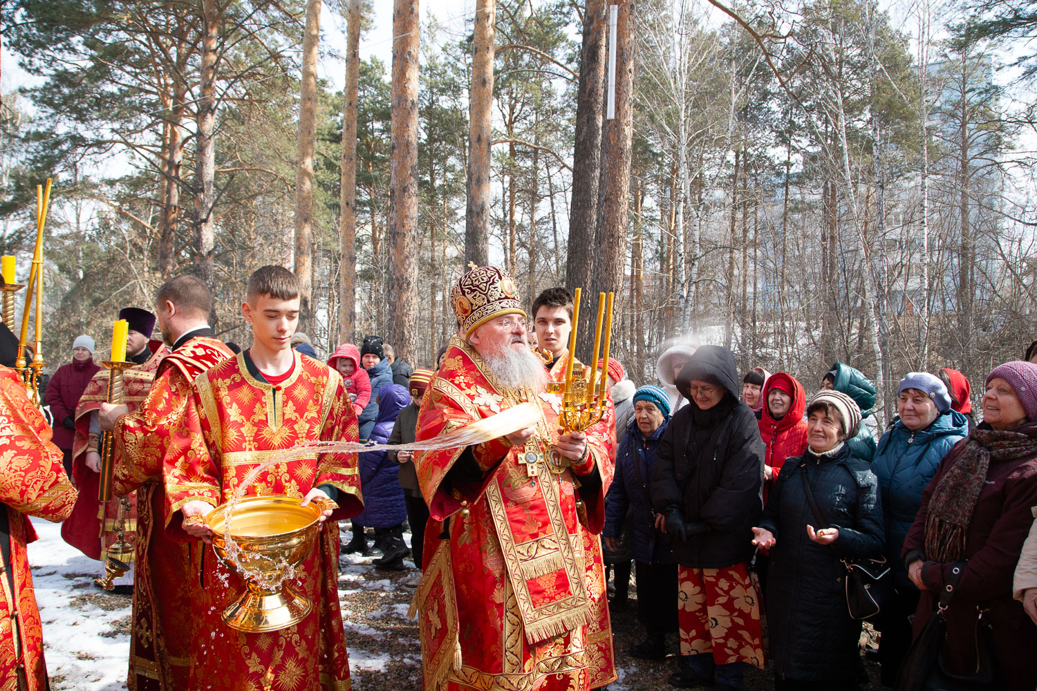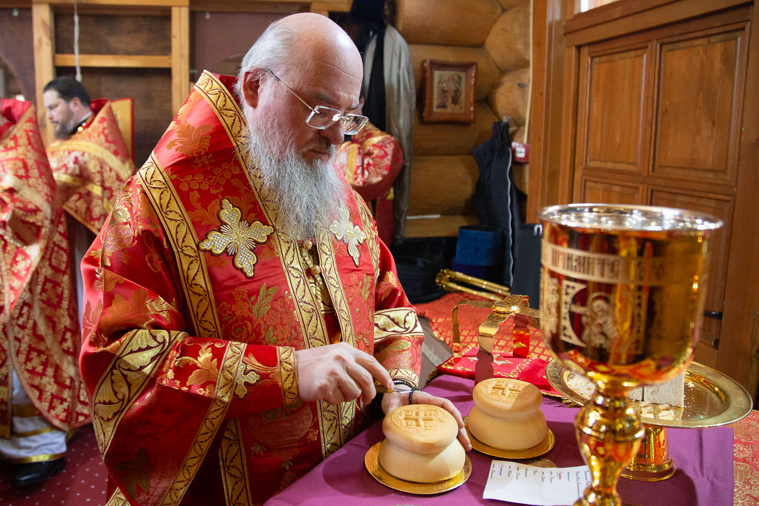Была совершена молитва на раздробление артоса, после чего владыка Никита возглавил крестный ход вокруг собора и по завершению богослужения обратился к собравшимся с архипастырским словом.