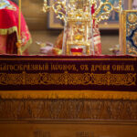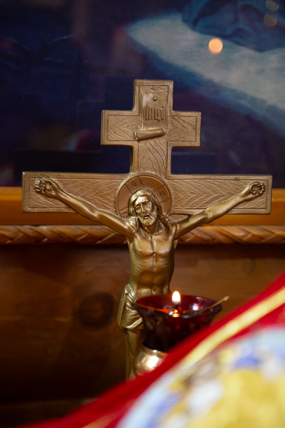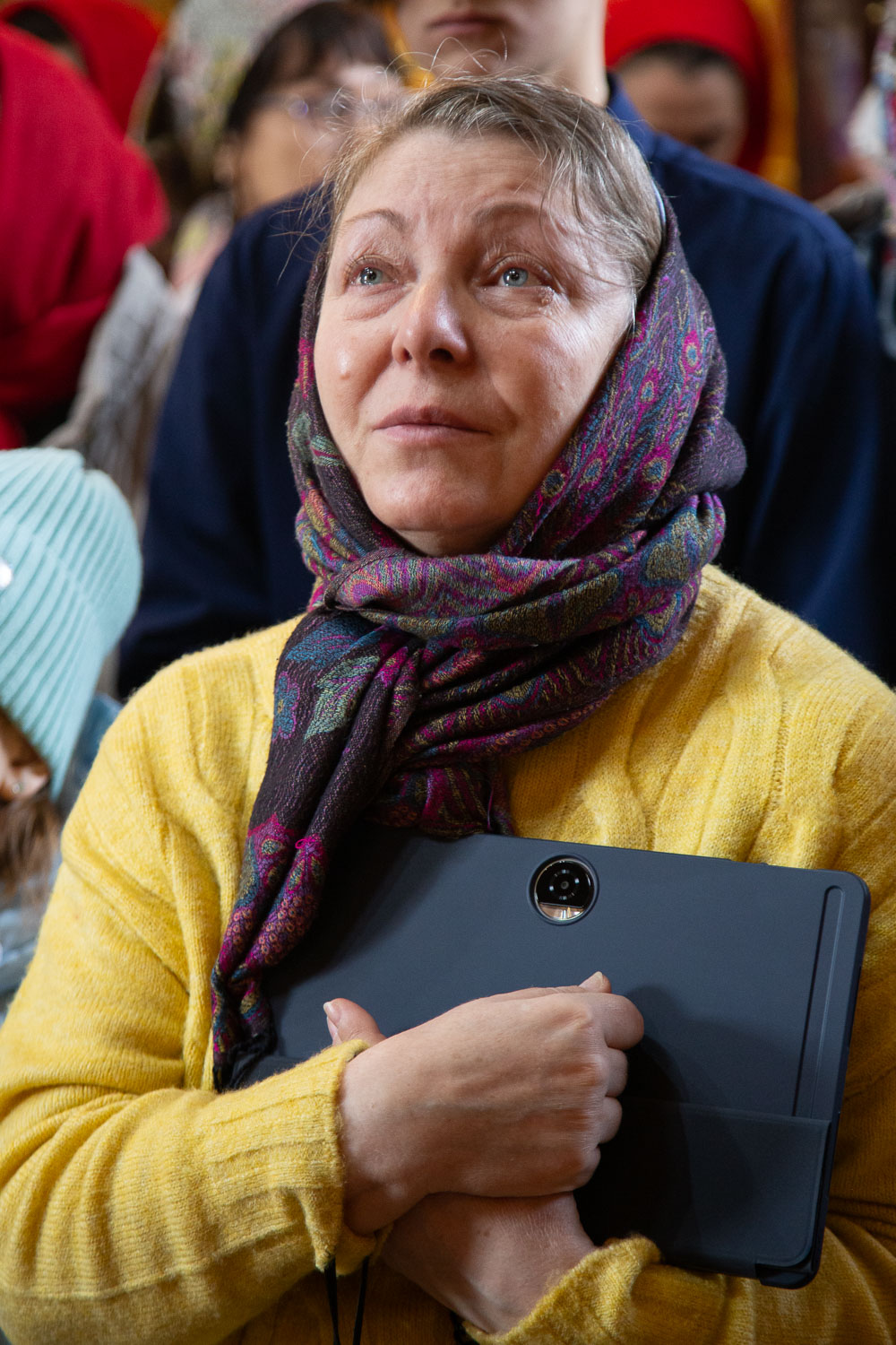 На малом входе настоятель храма блаженной Таисии Египетской иеромонах Никандр (Мокряков) был удостоен богослужебно-иерархической награды — права ношения наперсного креста золотого цвета.