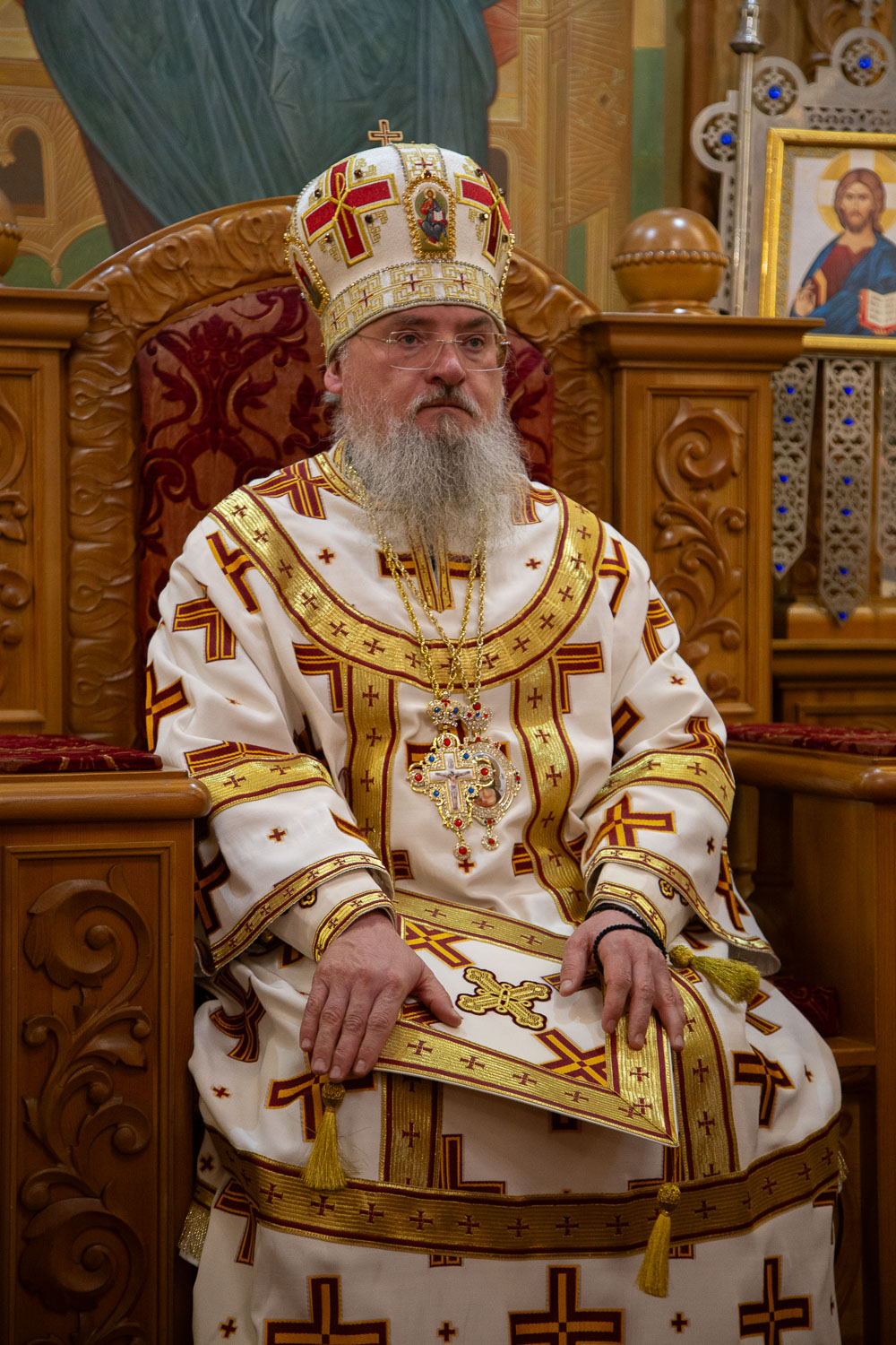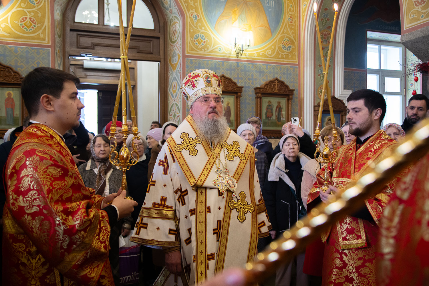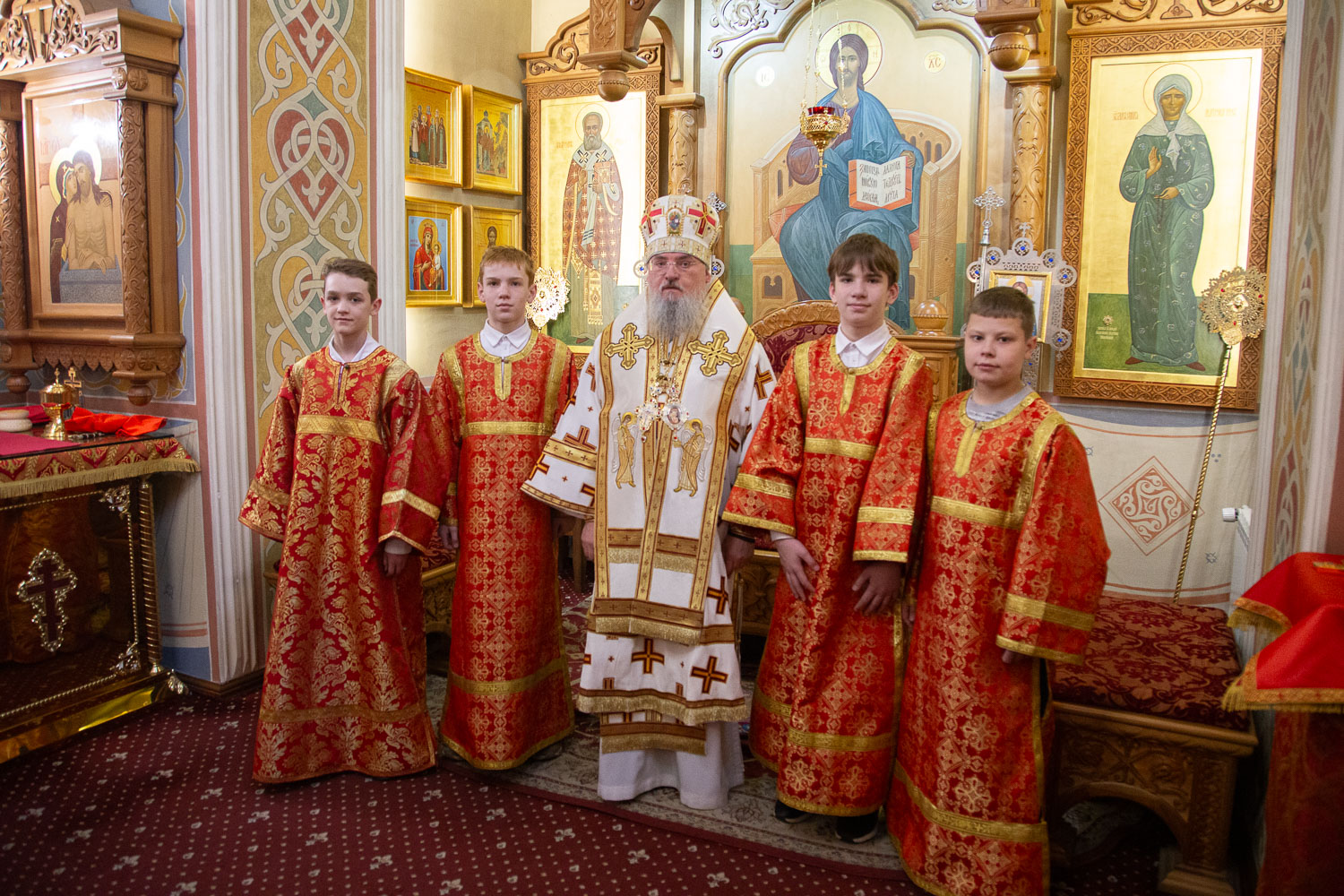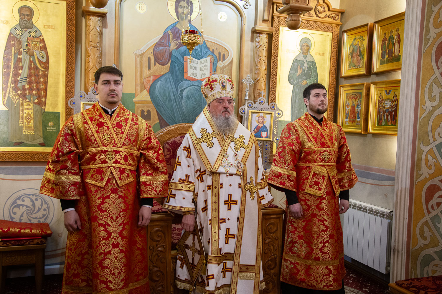 Его Высокопреосвященству сослужили: настоятель храмов Иоанна Предтечи и праведных Иоакима и Анны протоиерей Николай Ши-кэ-мин и клирики красноярских храмов.