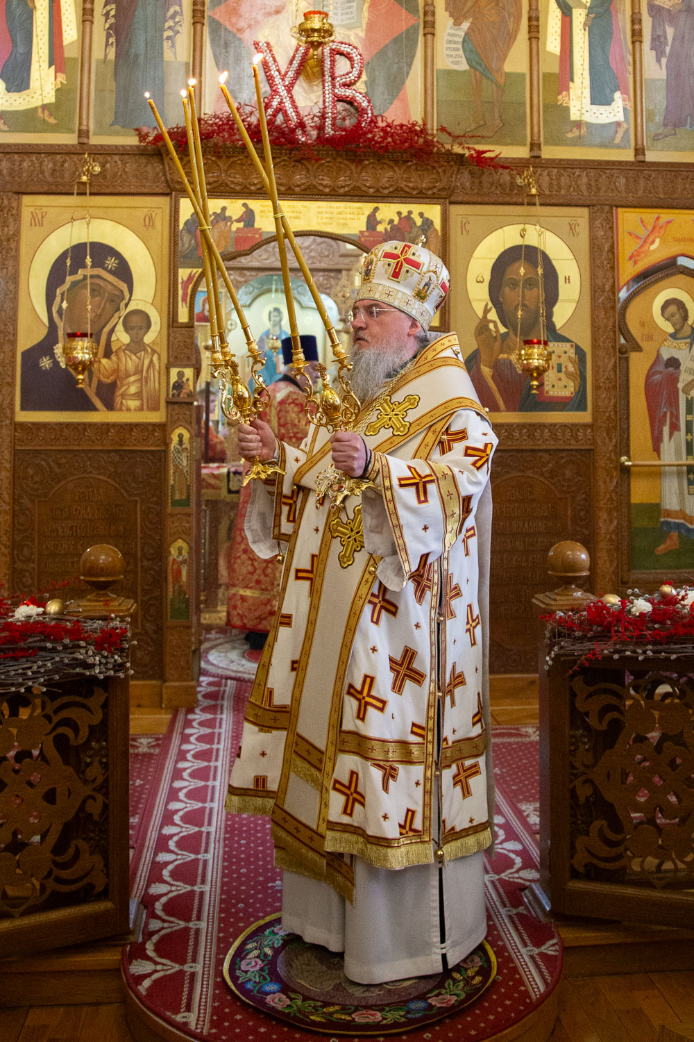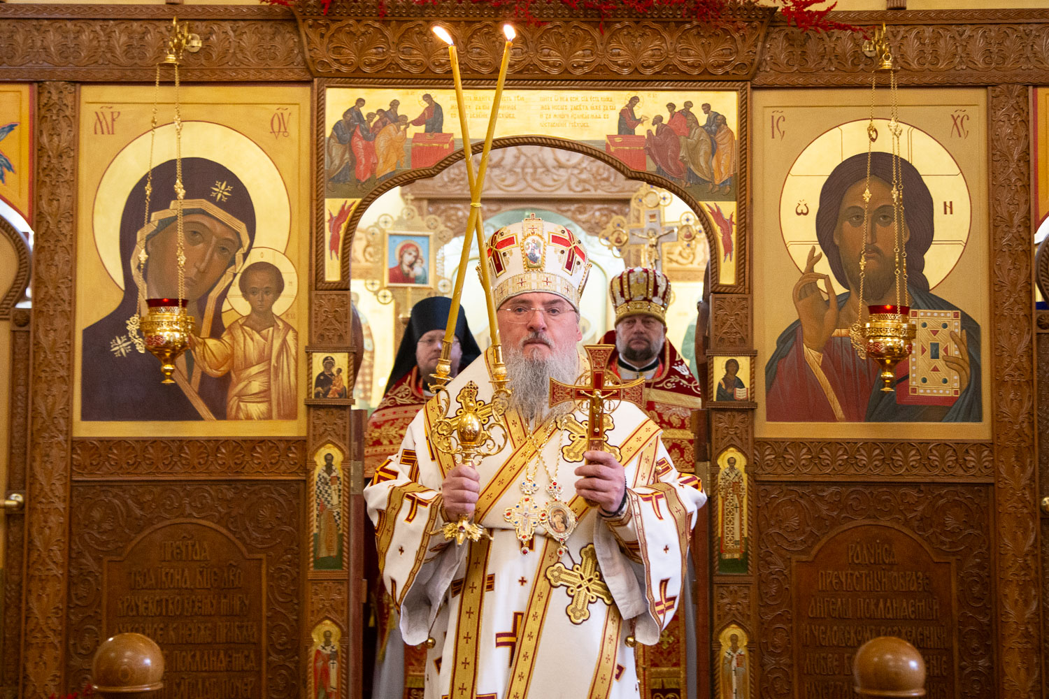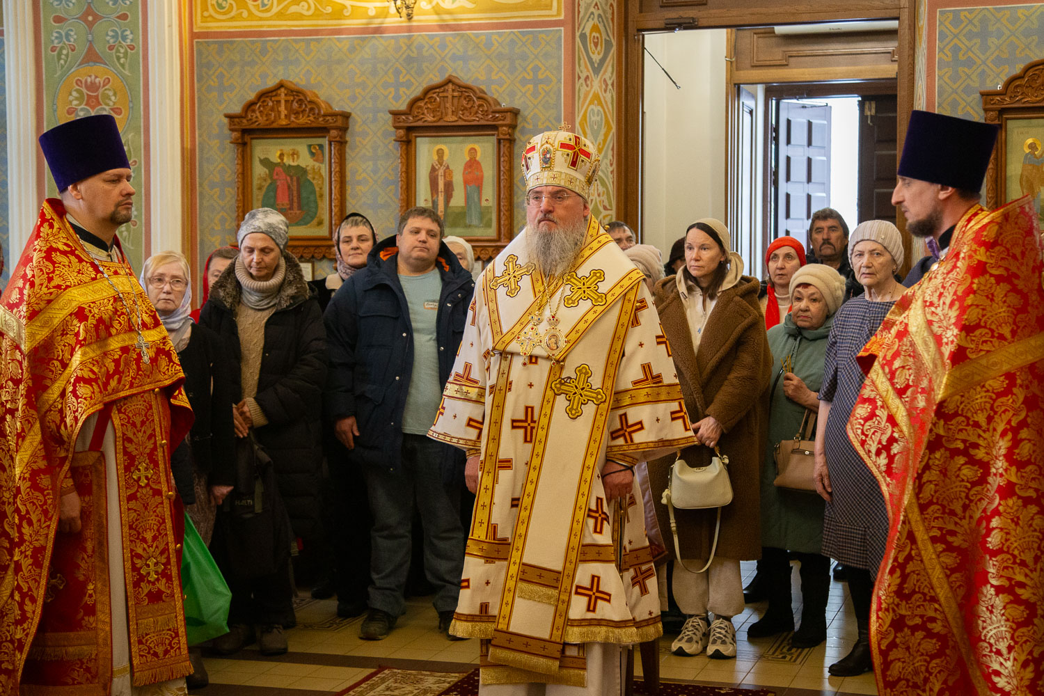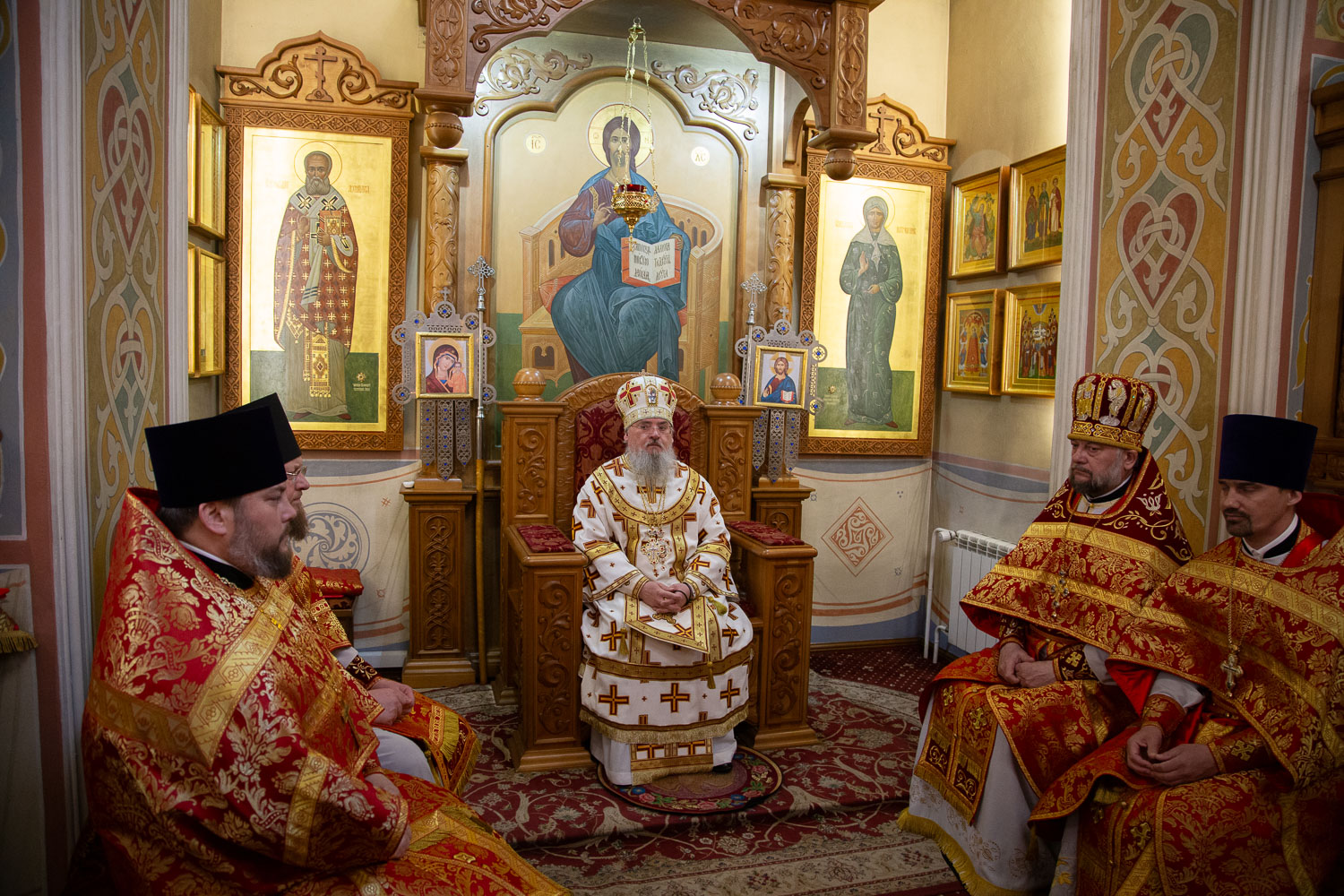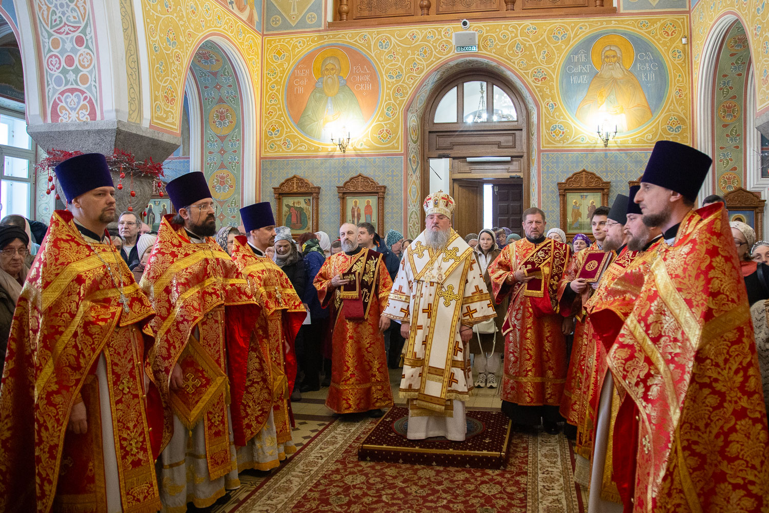 Его Высокопреосвященству сослужили: настоятель храмов Иоанна Предтечи и праведных Иоакима и Анны протоиерей Николай Ши-кэ-мин и клирики красноярских храмов.