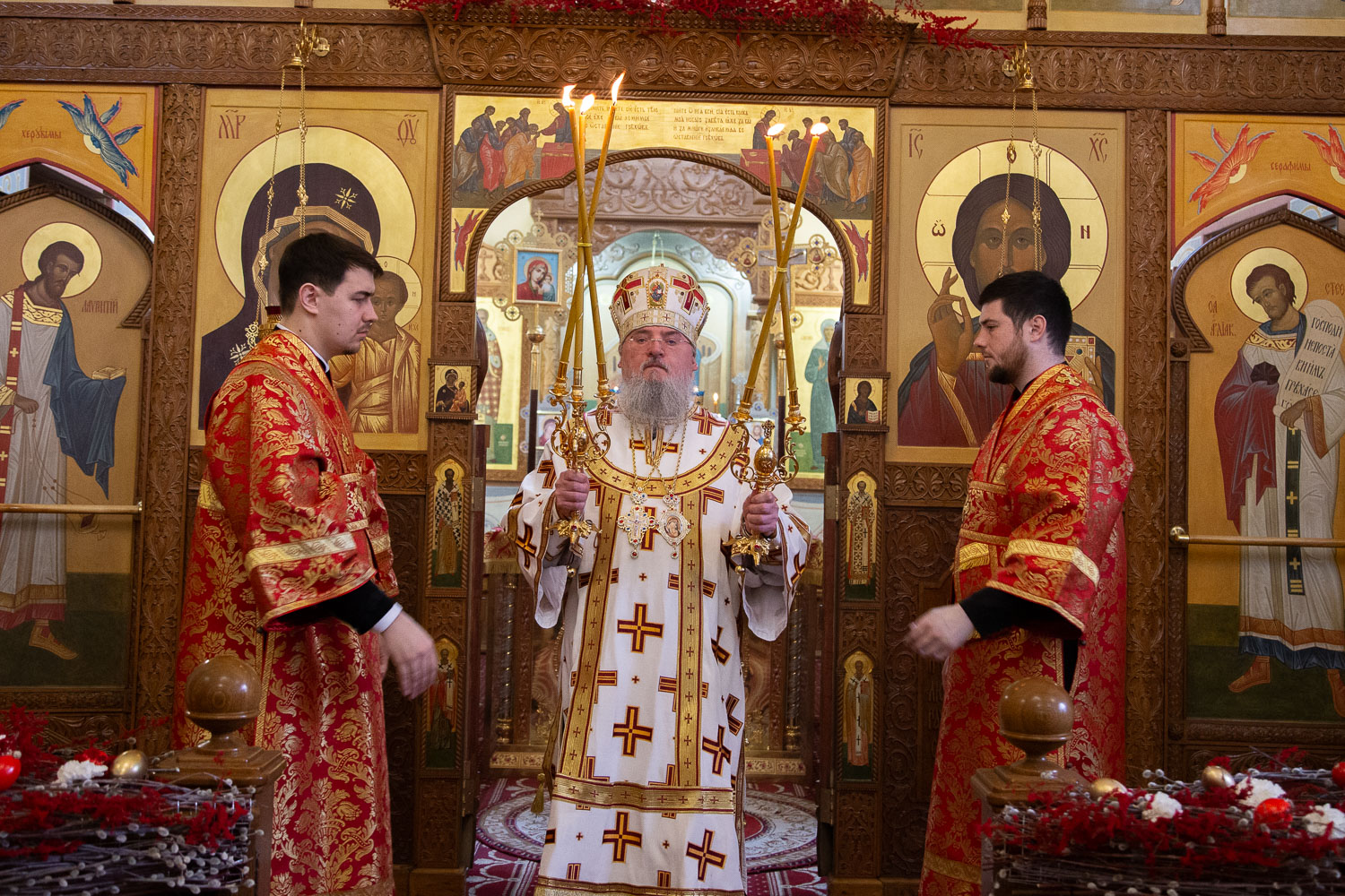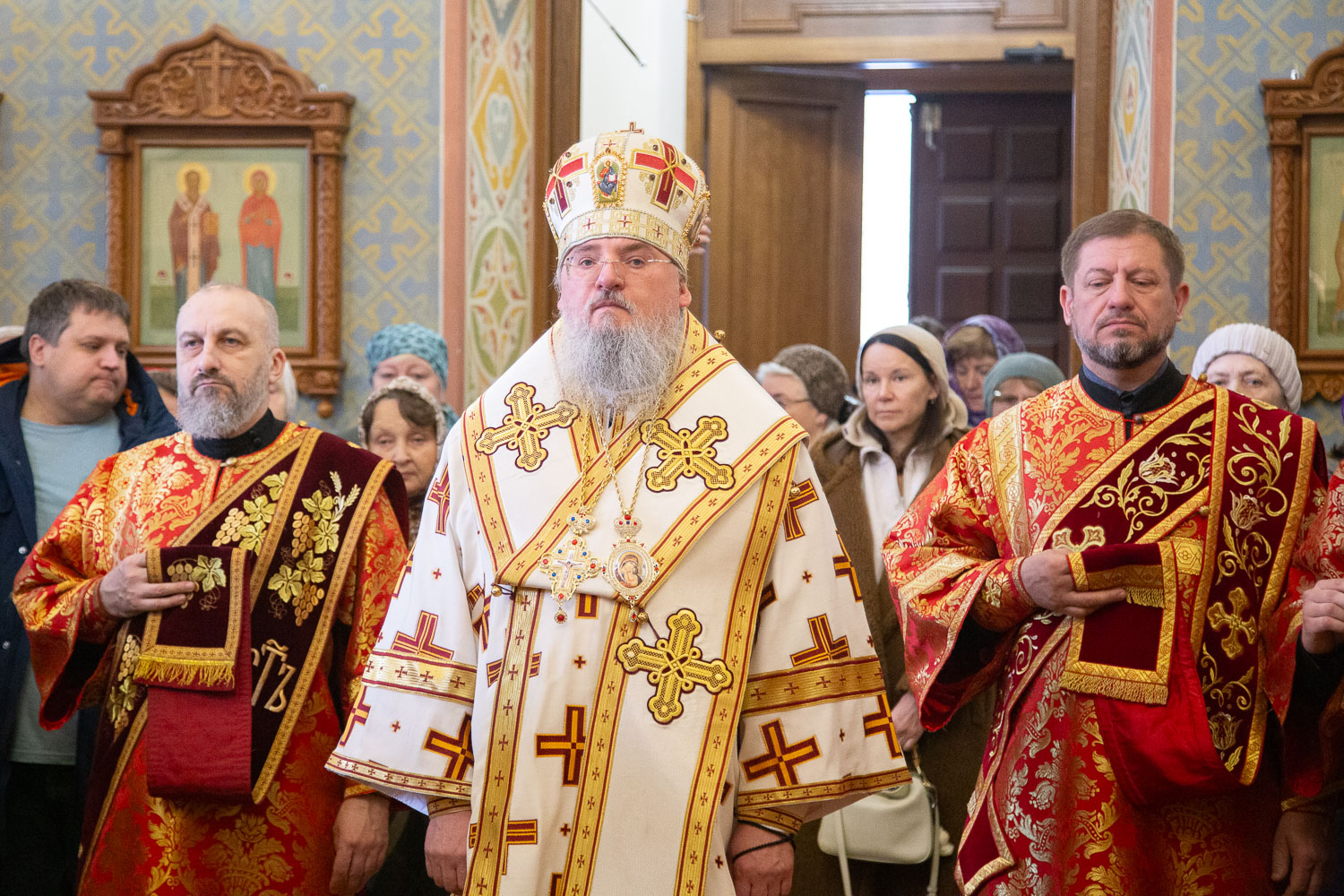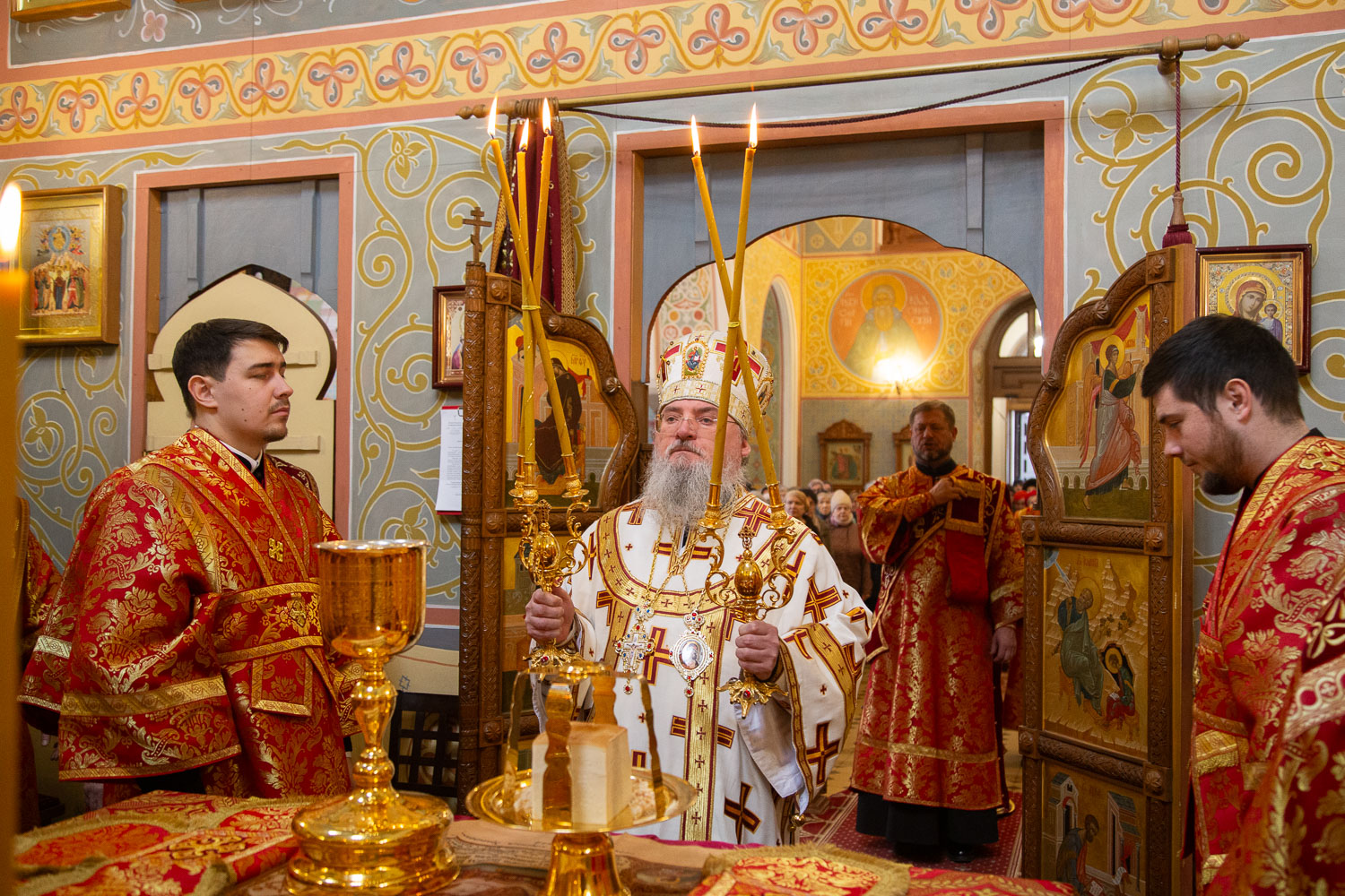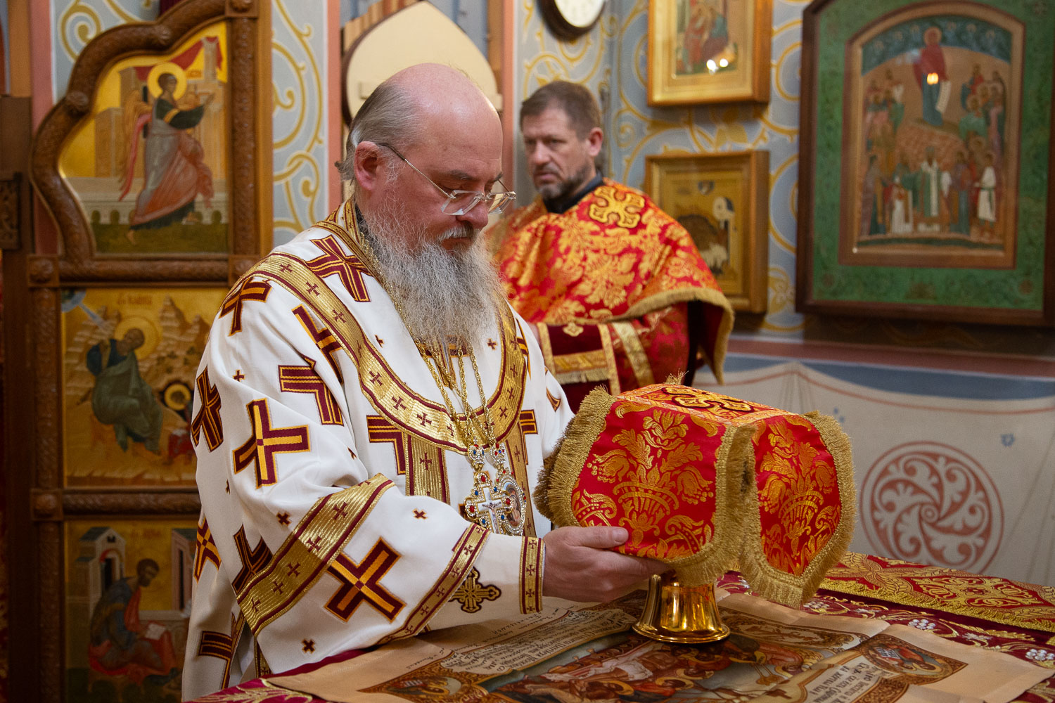 Его Высокопреосвященству сослужили: настоятель храмов Иоанна Предтечи и праведных Иоакима и Анны протоиерей Николай Ши-кэ-мин и клирики красноярских храмов.