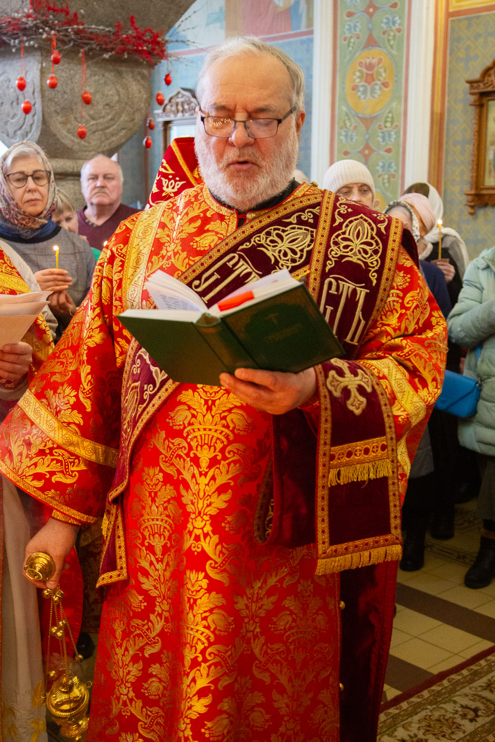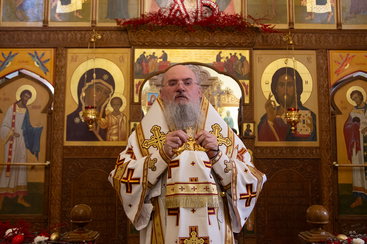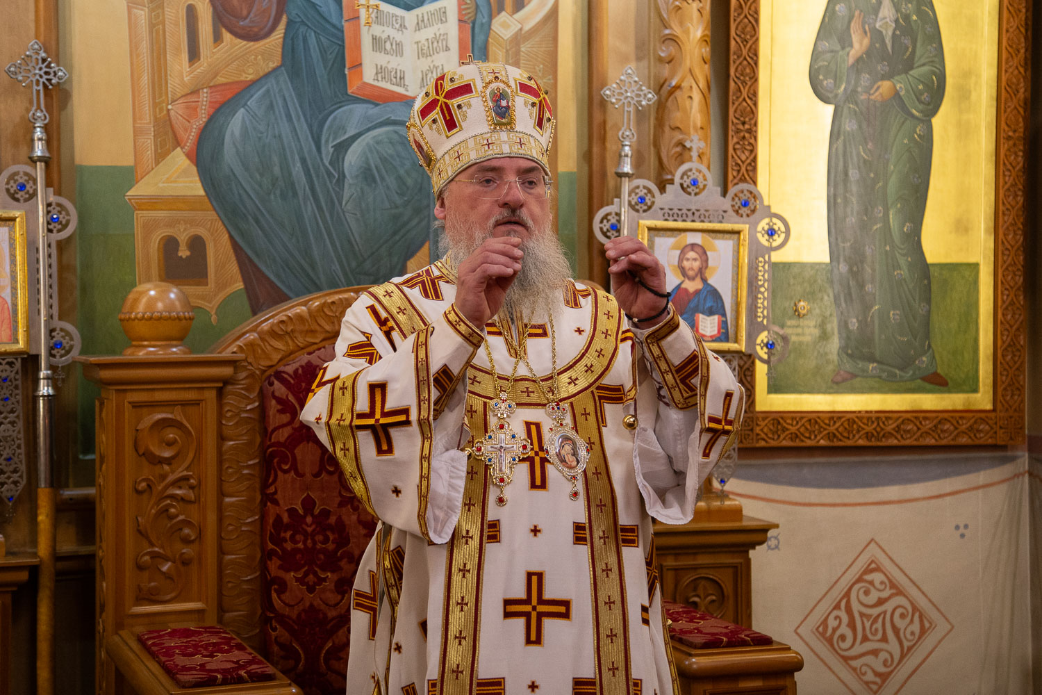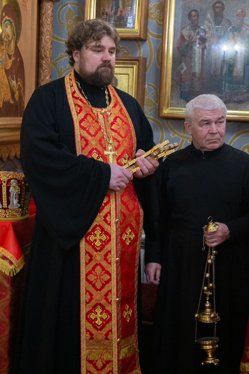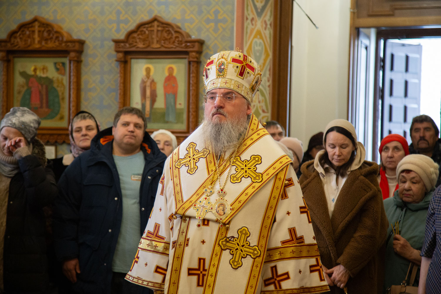 Его Высокопреосвященству сослужили: настоятель храмов Иоанна Предтечи и праведных Иоакима и Анны протоиерей Николай Ши-кэ-мин и клирики красноярских храмов.