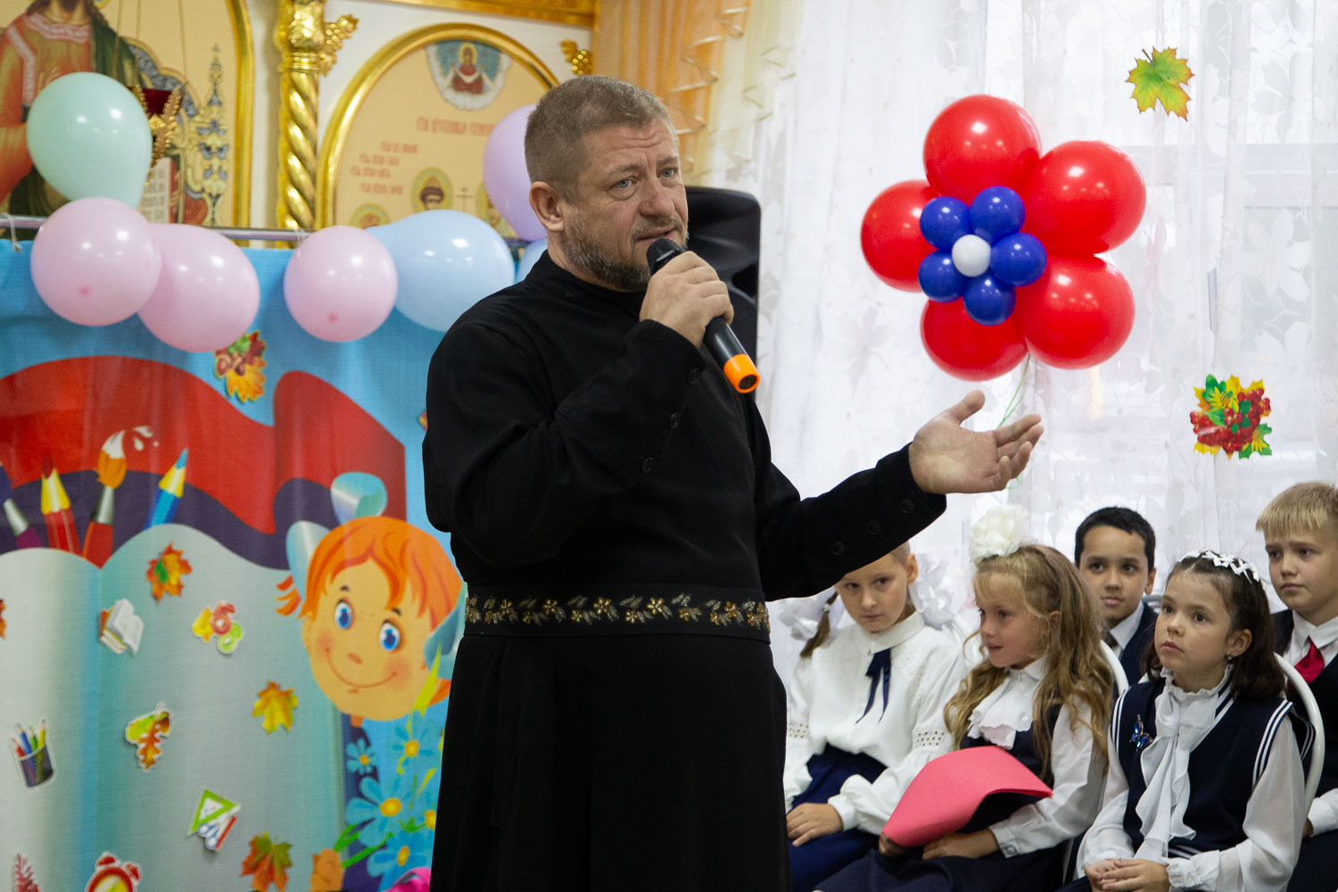 1 сентября митрополит Красноярский и Ачинский Никита посетил торжественную линейку в Красноярской православной гимназии имени святого преподобного Сергия Радонежского.