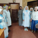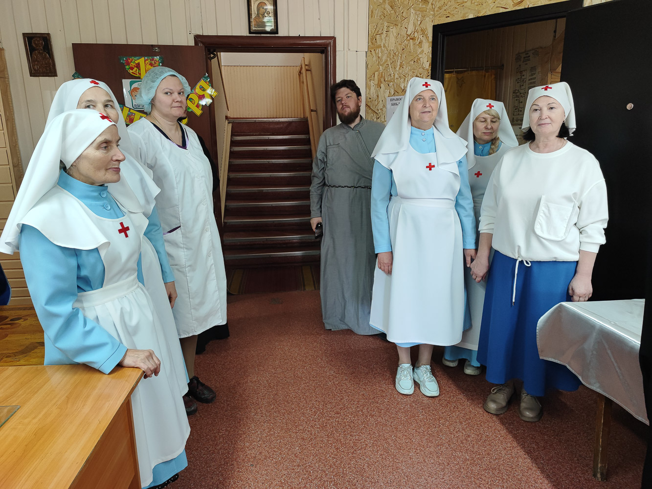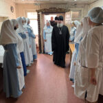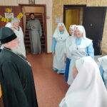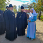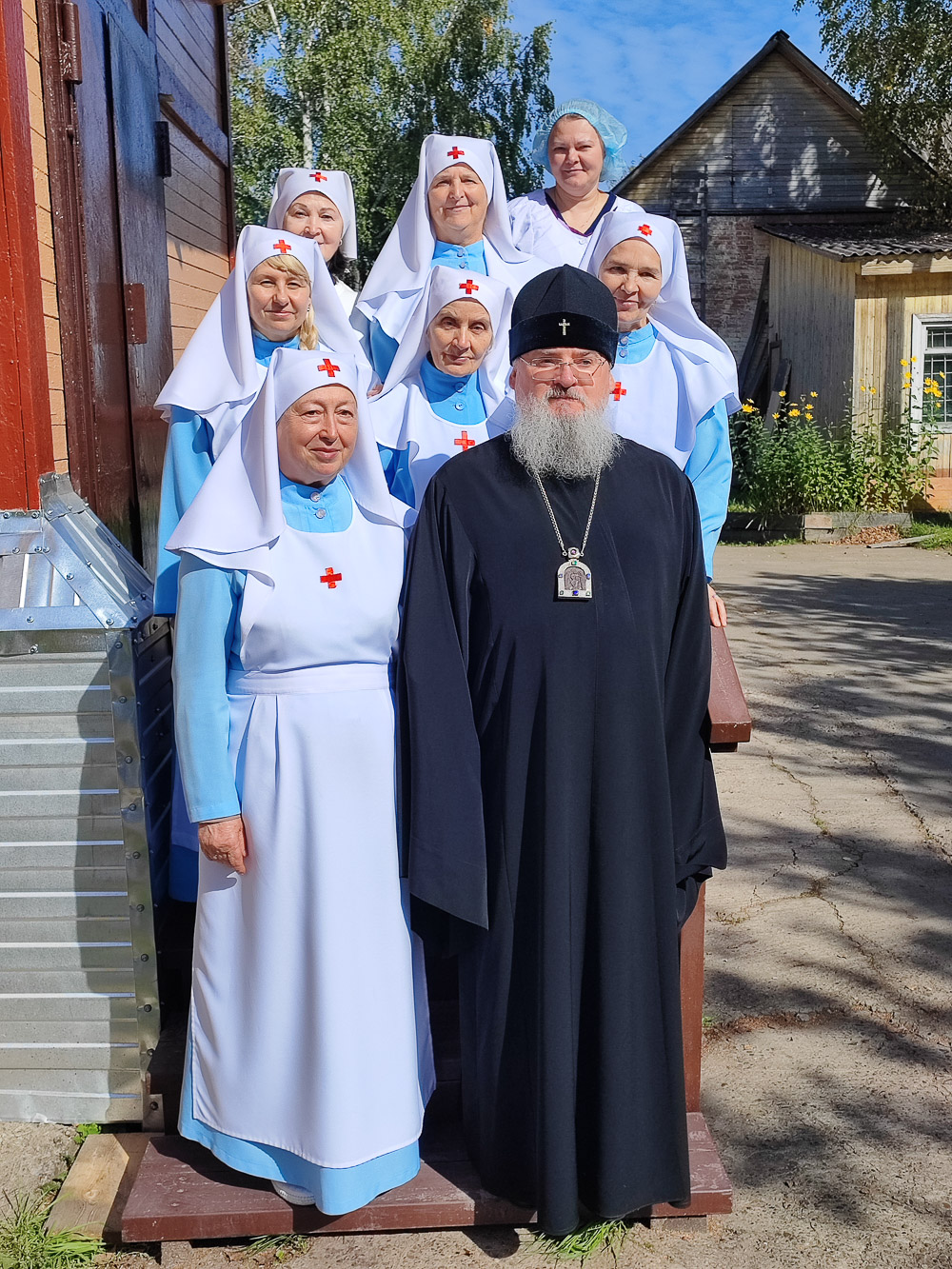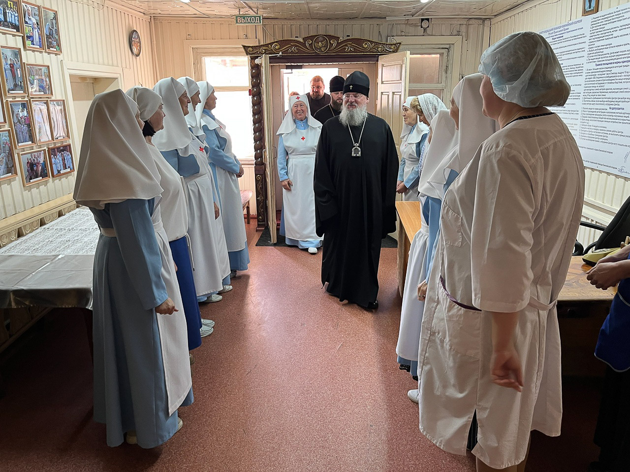 Митрополита Никиту и епископа Игнатия встретили руководитель Социального отдела епархии иерей Фёдор Кононов и старшая сестра милосердия епархиального сестричества Тамара Благирева.