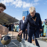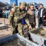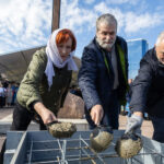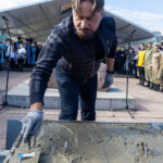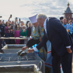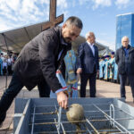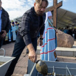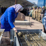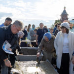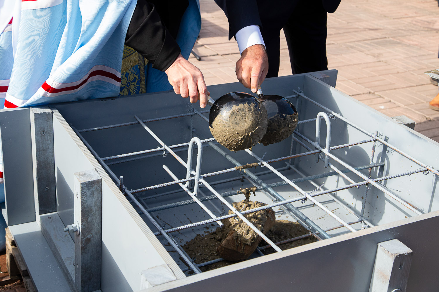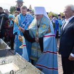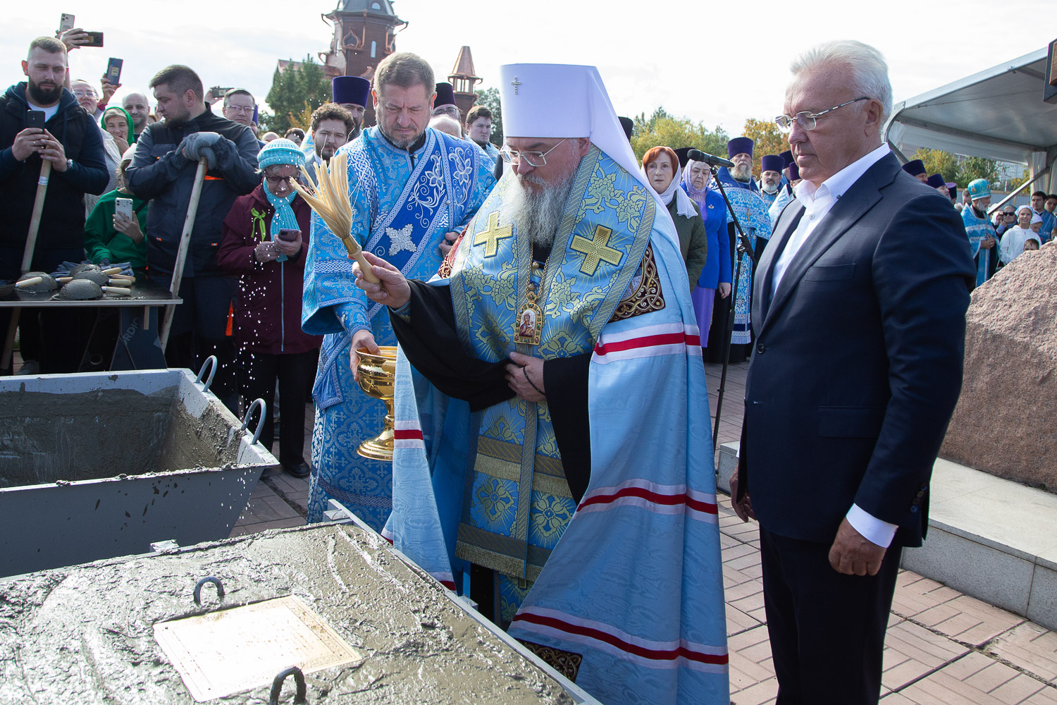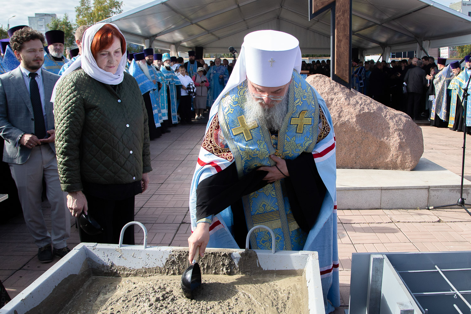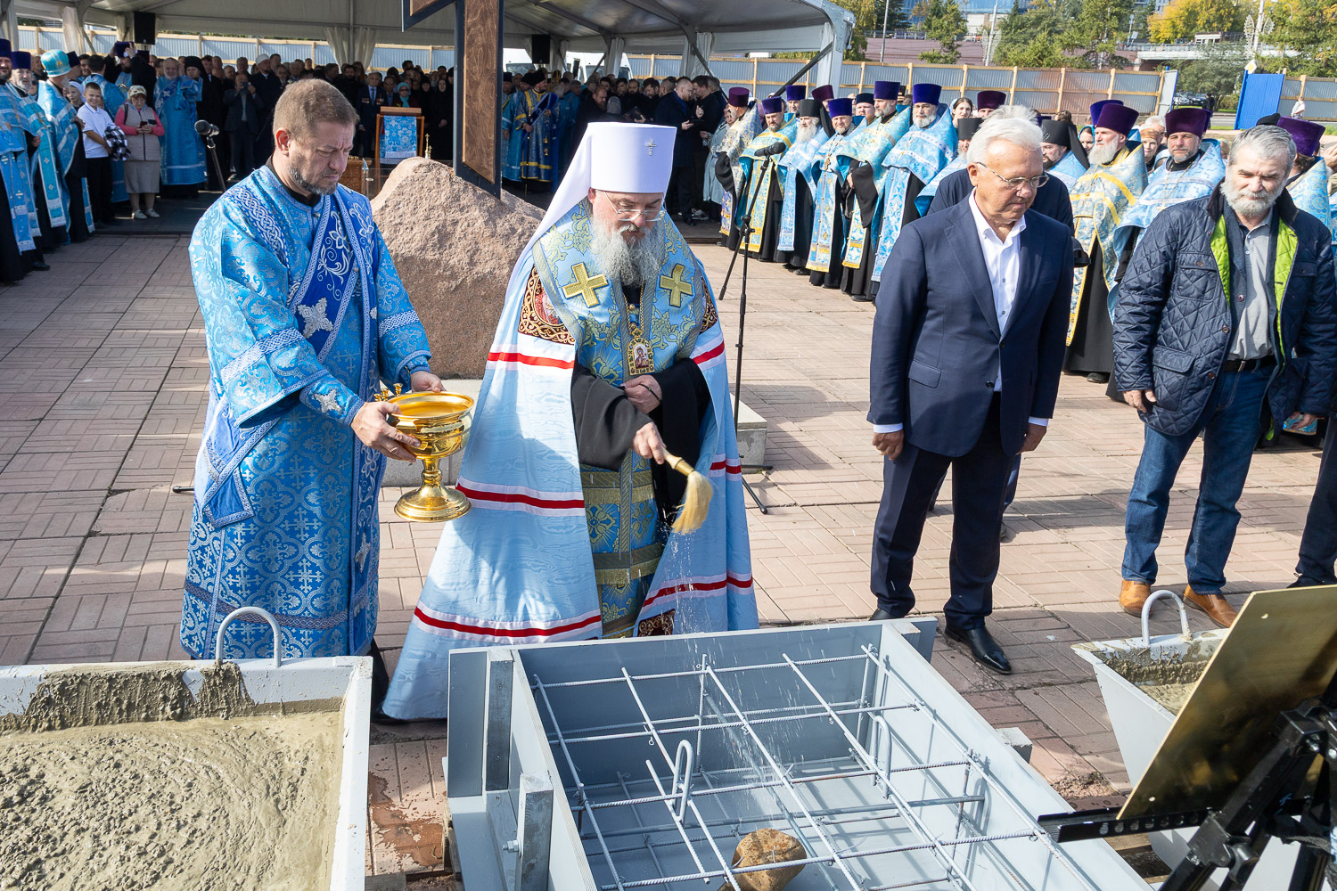 По окончании молебна почетные гости приняли участие в формировании «краеугольного камня», который ляжет в основание фундамента собора в честь Рождества Пресвятой Богородицы. Это плита, в которой будут объединены воедино фрагменты фундаментов разрушенного в 30-е годы кафедрального собора и надвратного храма святых праведных Захарии и Елисаветы «Отца сибирских городов» Енисейска.