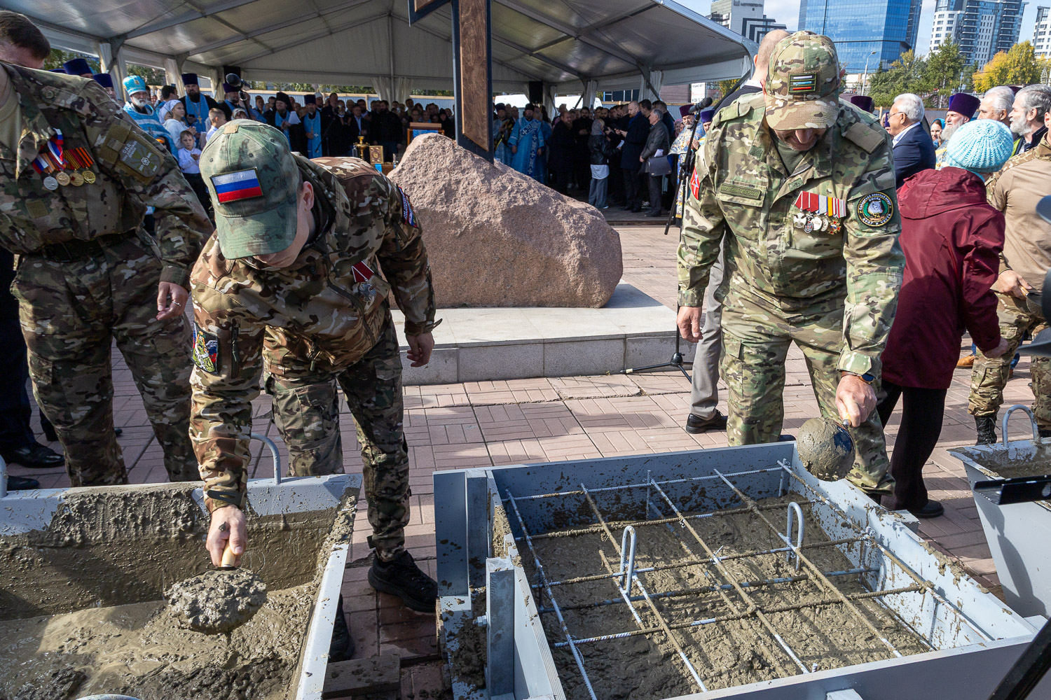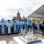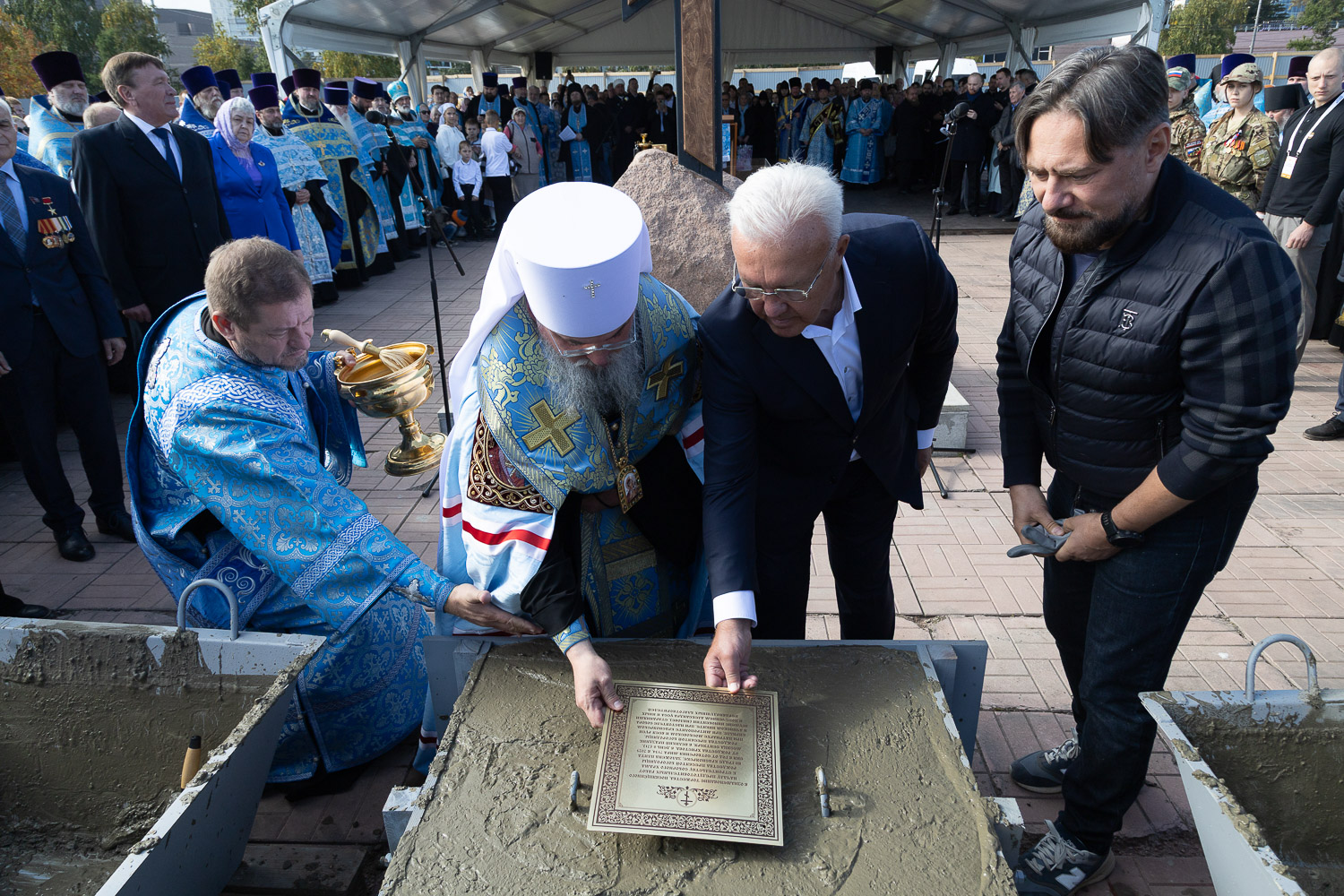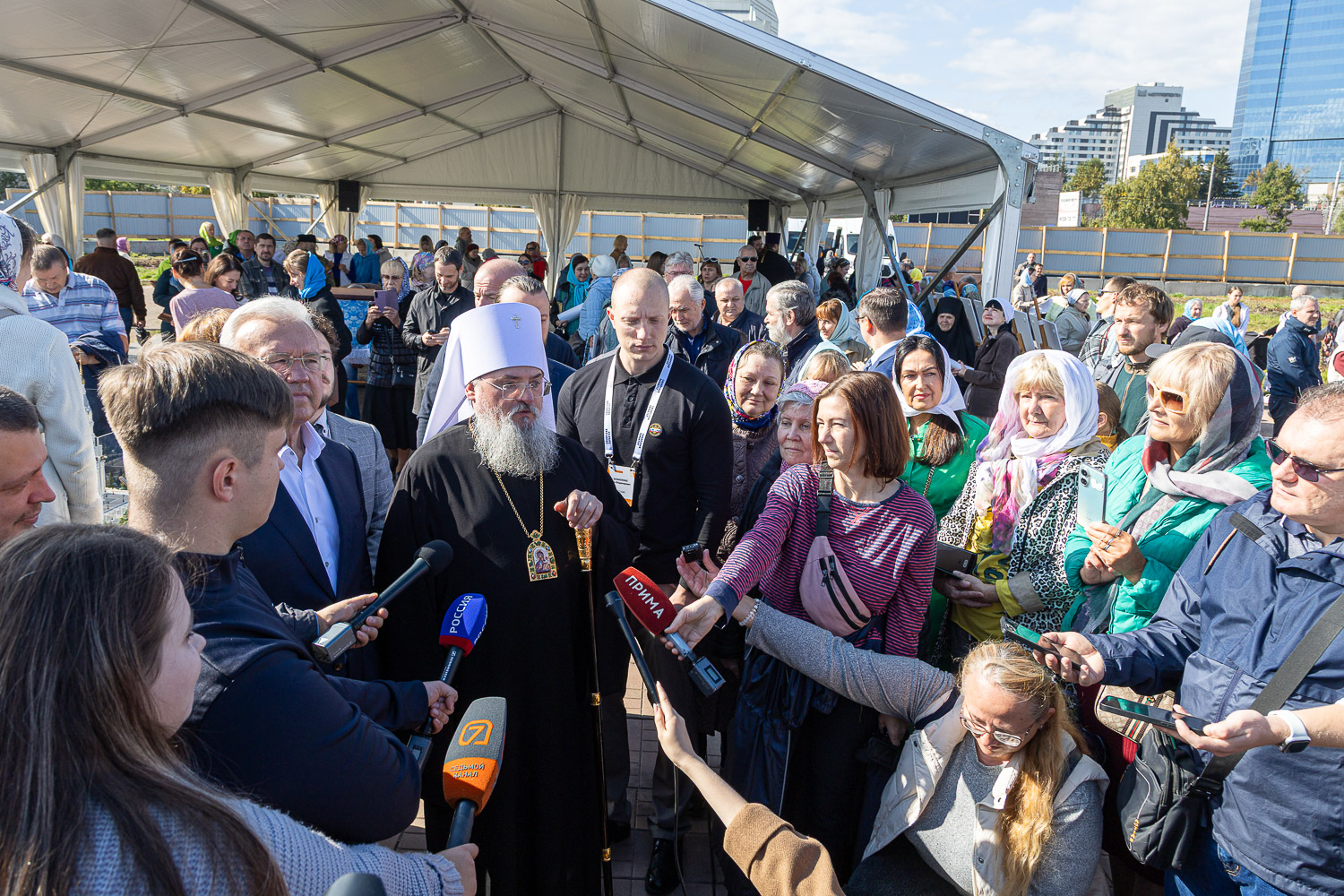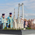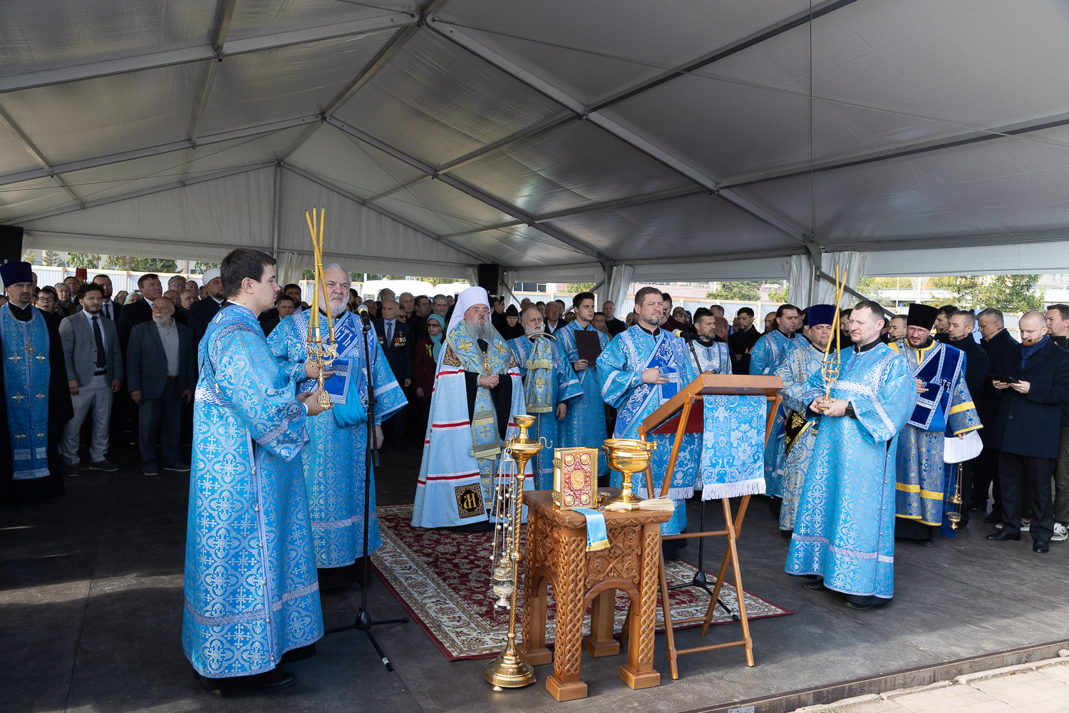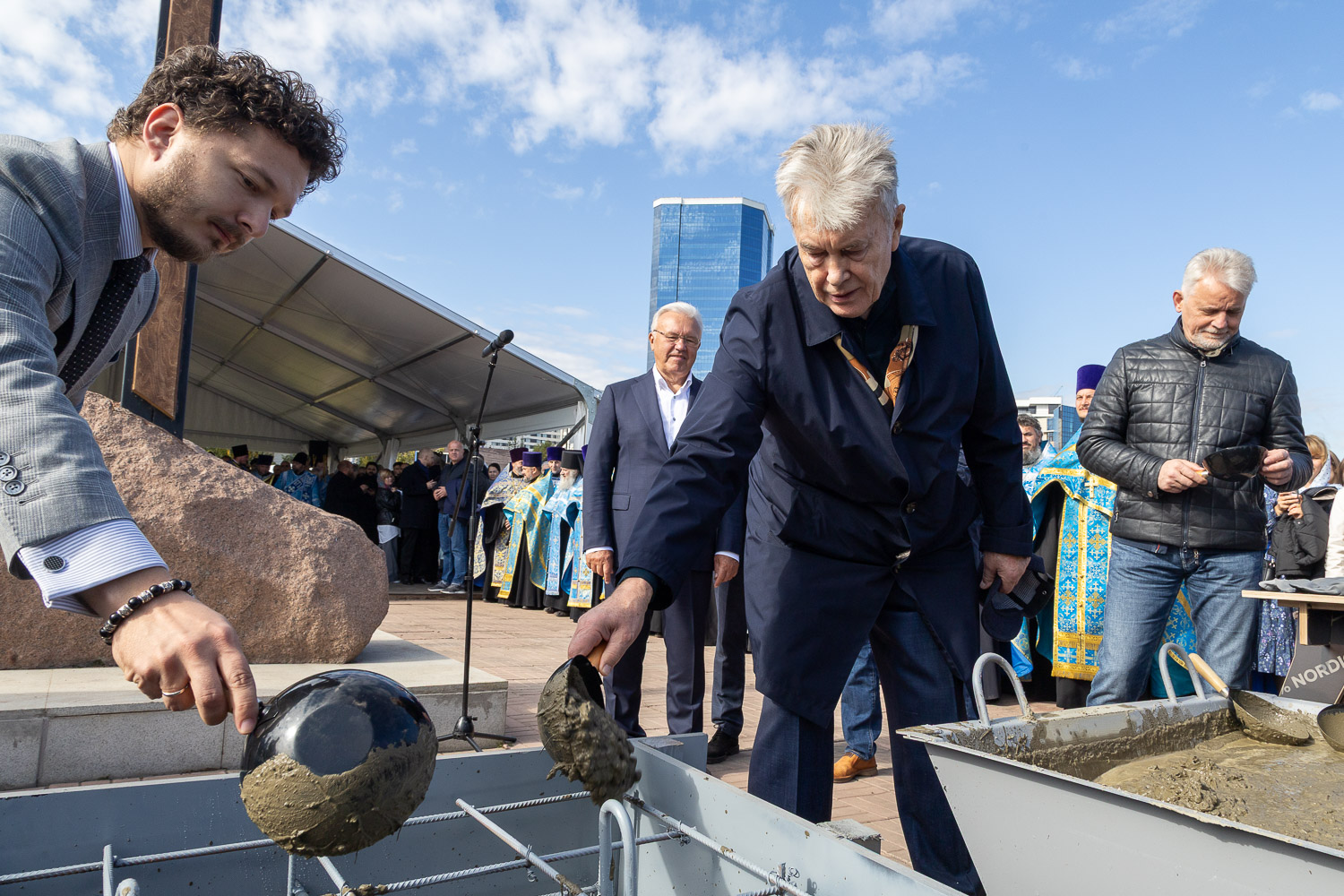 Создание краеугольного камня с праздничным молебном состоялось на Стрелке. Ранее это место выбрал для воссоздания кафедрального собора Святейший Патриарх Московский и всея Руси Кирилл.