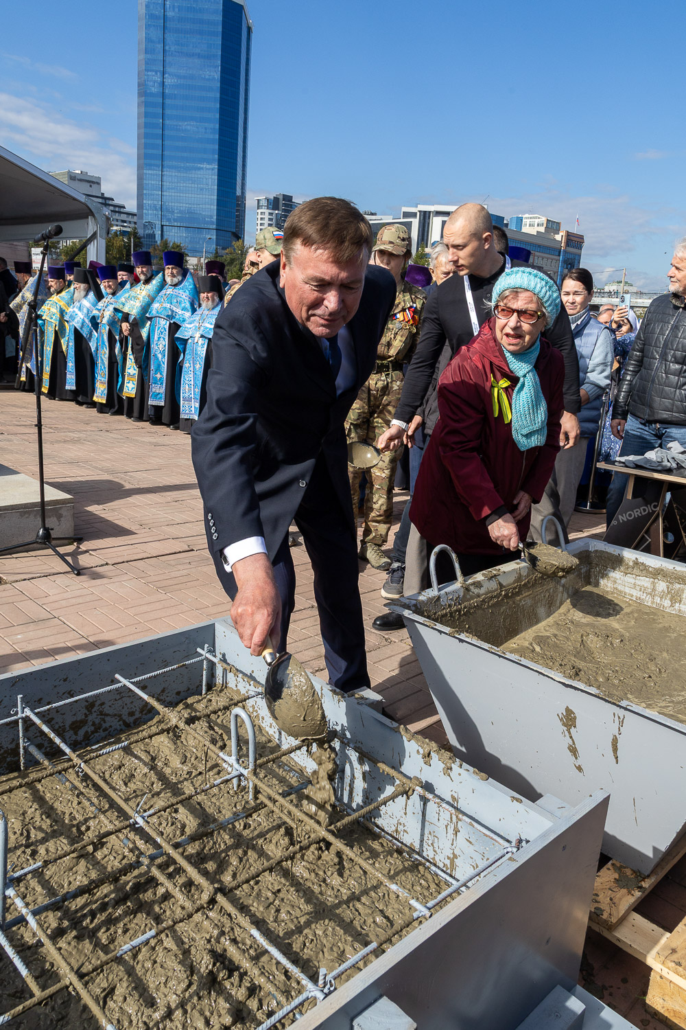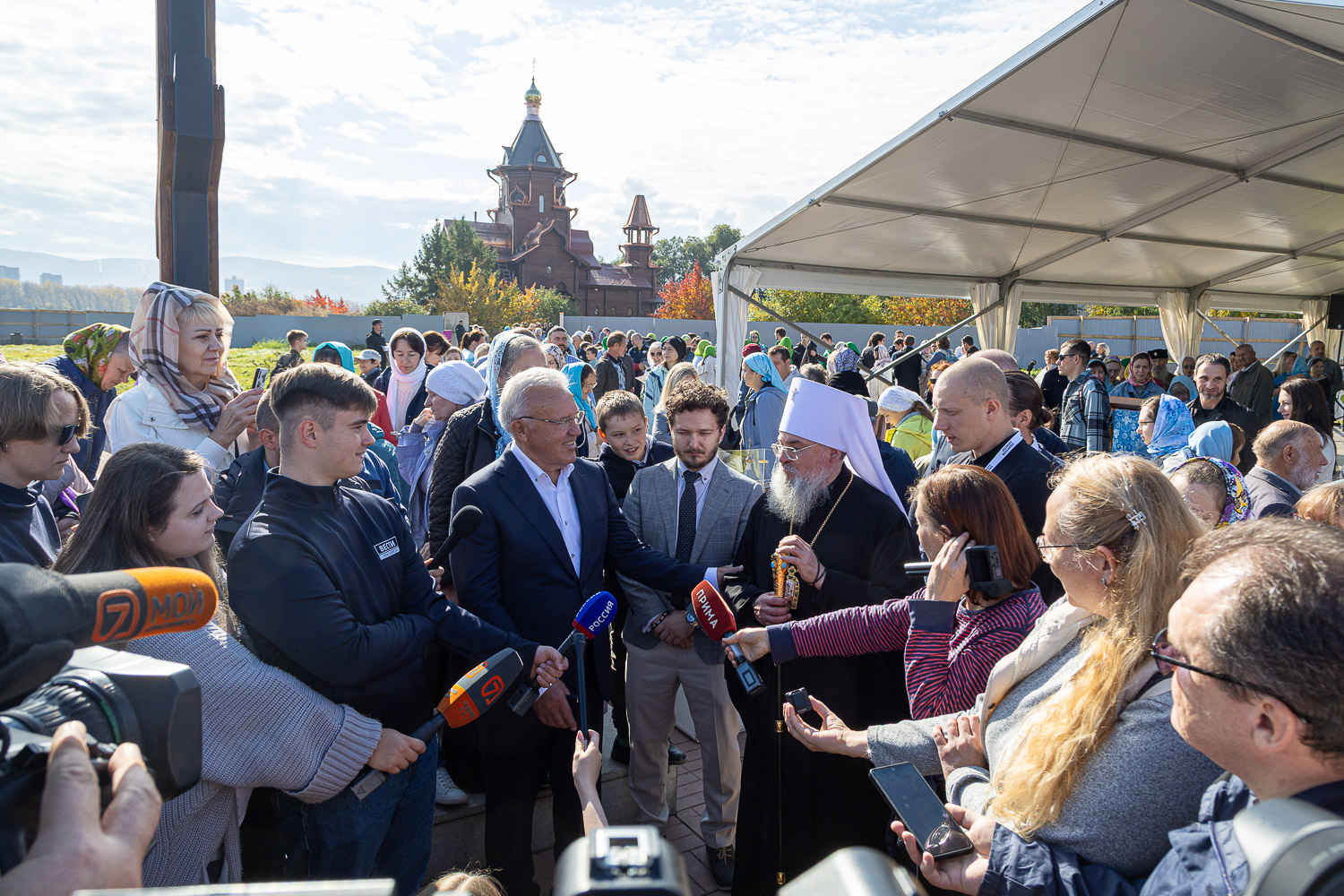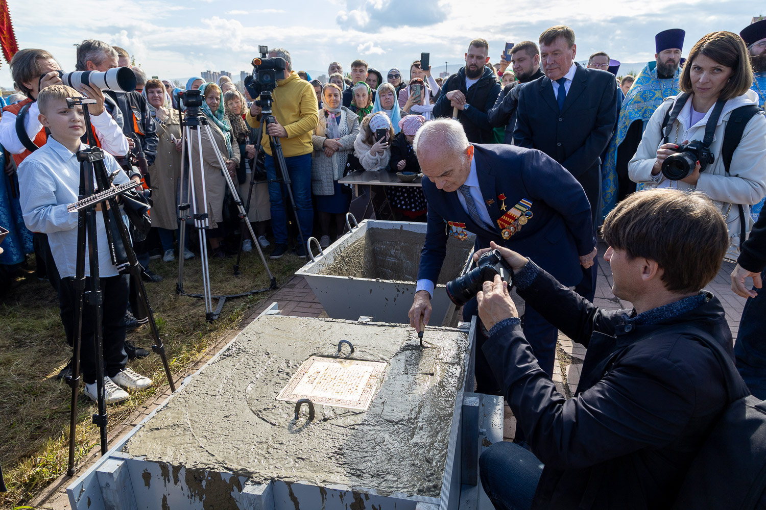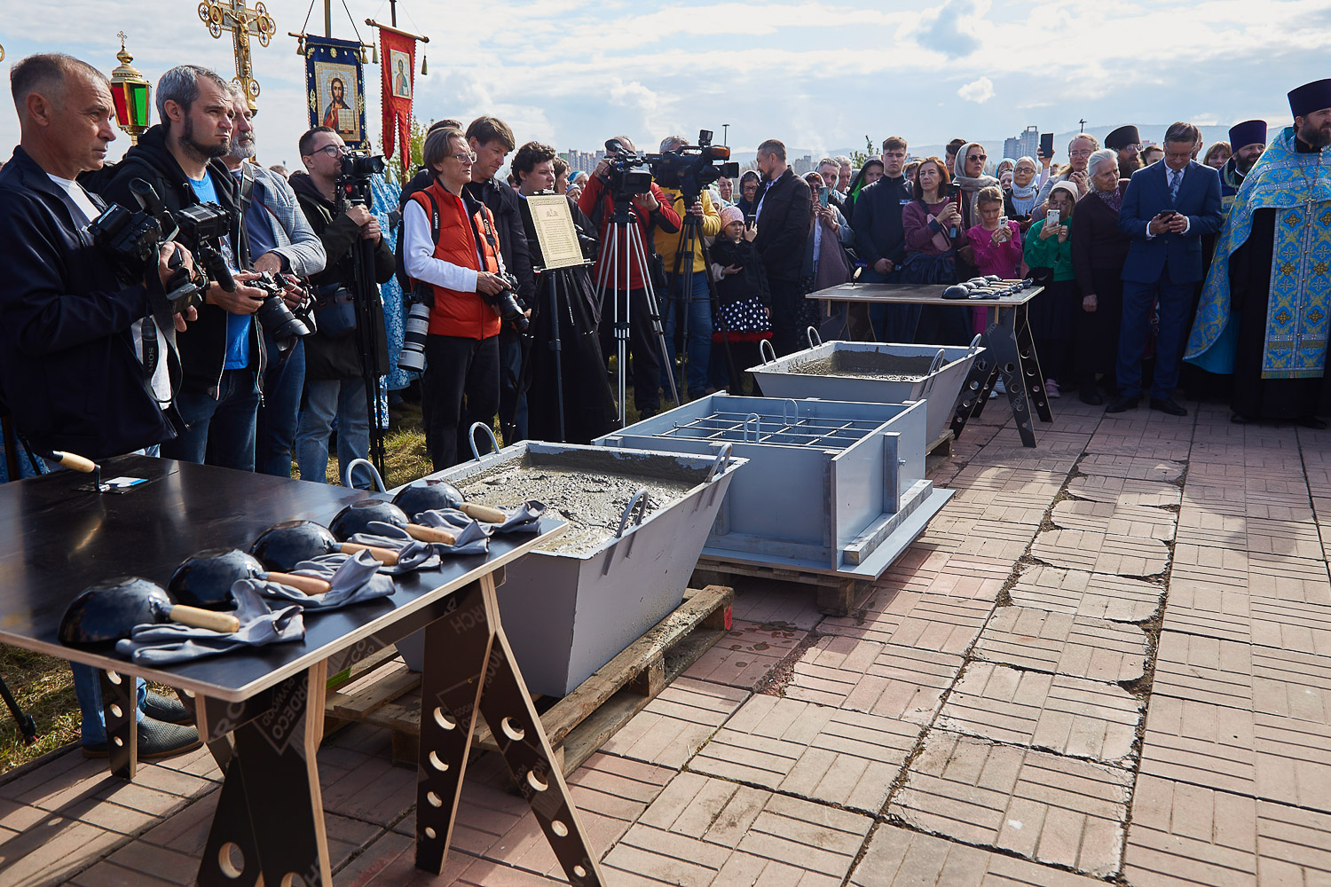 В подготовительных работах участвовали все слои населения нашего Красноярского края: представители администрации, учёные, труженики и люди почтенного возраста, герои, имеющие трудовые заслуги перед краем и перед Россией, воины СВО, спортсмены, студенты и школьники — одним словом все, кто населяют наш край и не только. И я надеюсь, что всё это содружество будет помогать нам в дальнейшем, и в ближайшее время мы с вами сможем увидеть на берегах нашего древнего Енисея великолепный храм, освящающий Русскую землю.
