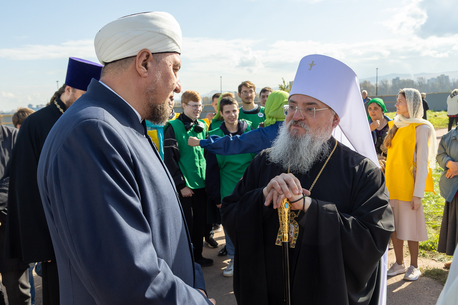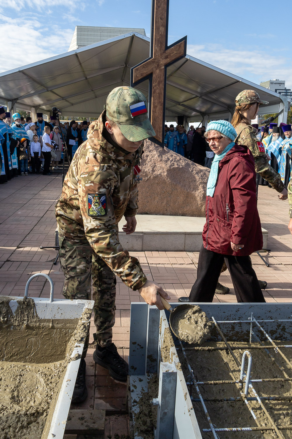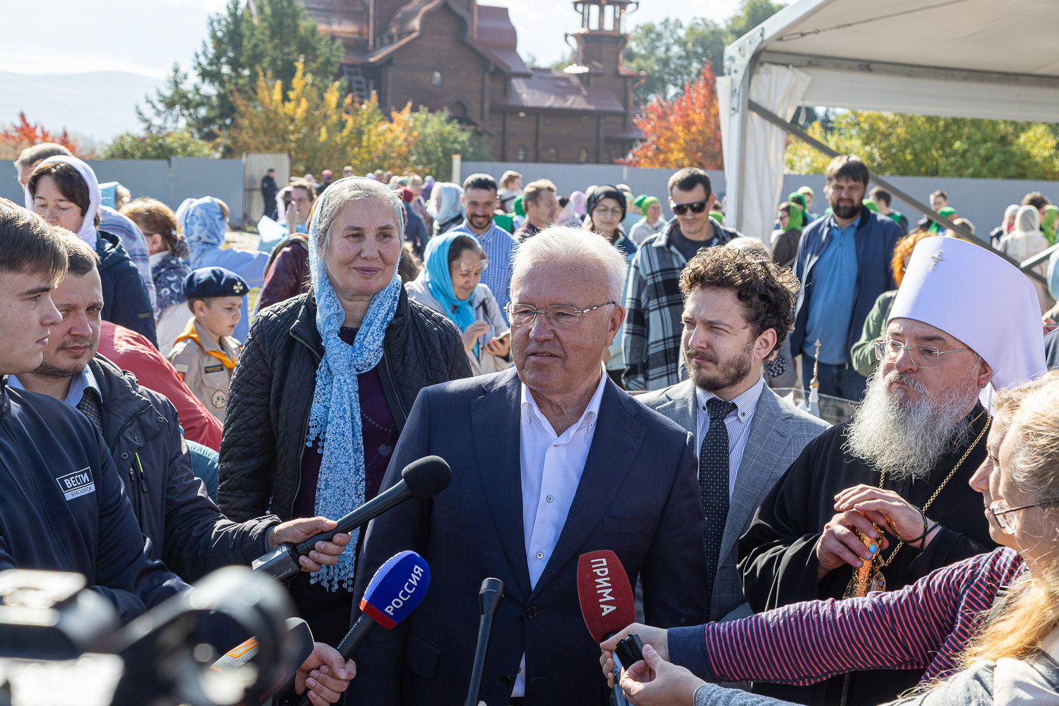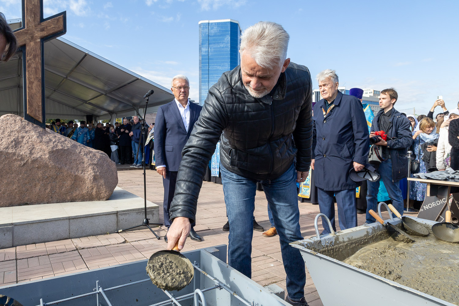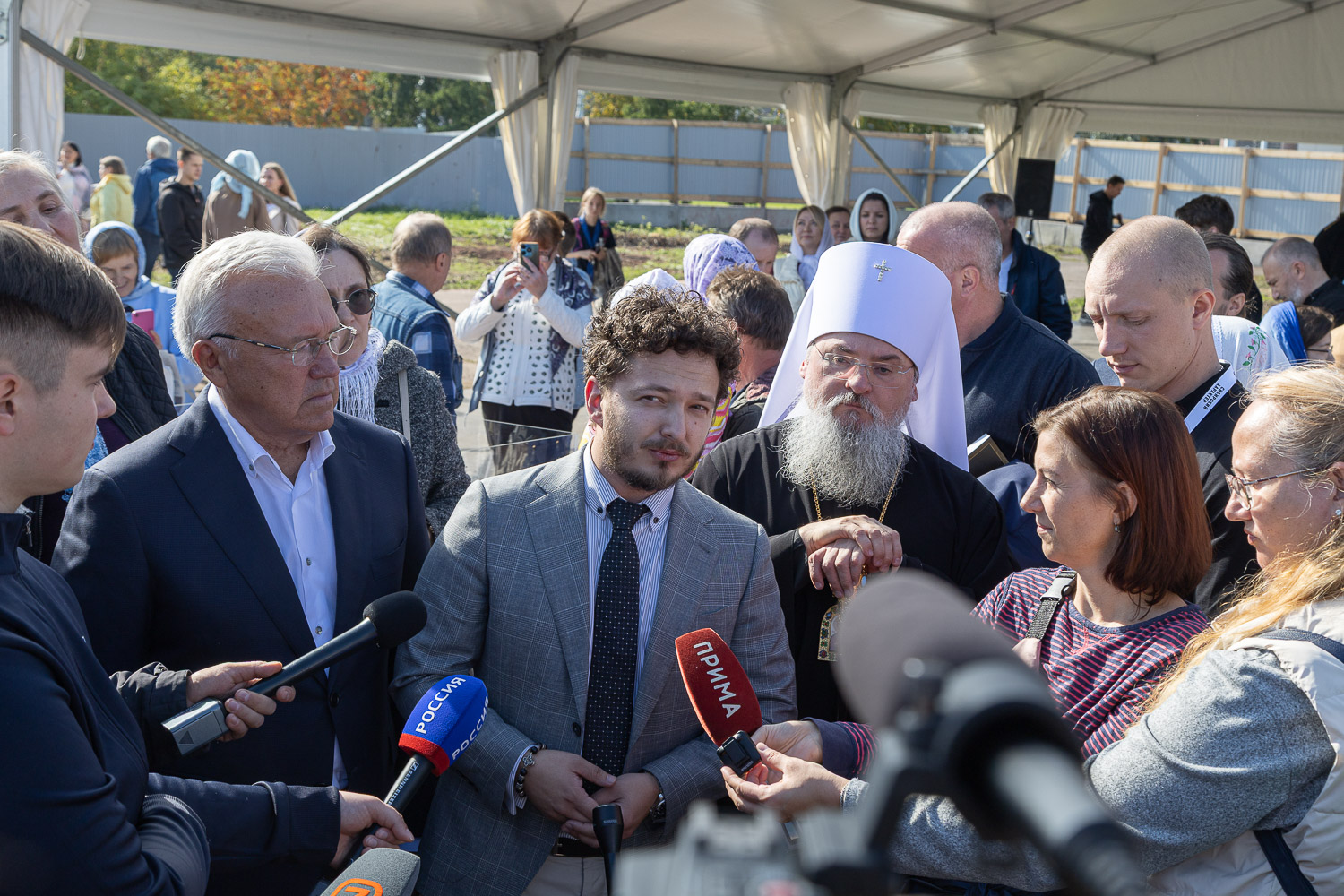 В подготовительных работах участвовали все слои населения нашего Красноярского края: представители администрации, учёные, труженики и люди почтенного возраста, герои, имеющие трудовые заслуги перед краем и перед Россией, воины СВО, спортсмены, студенты и школьники — одним словом все, кто населяют наш край и не только. И я надеюсь, что всё это содружество будет помогать нам в дальнейшем, и в ближайшее время мы с вами сможем увидеть на берегах нашего древнего Енисея великолепный храм, освящающий Русскую землю.