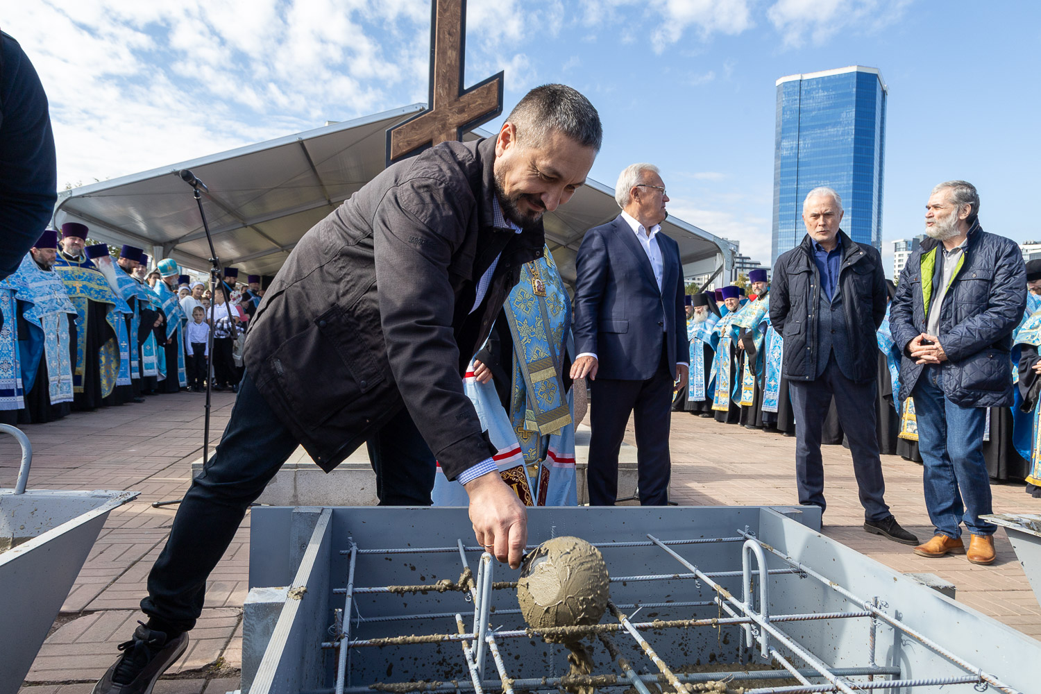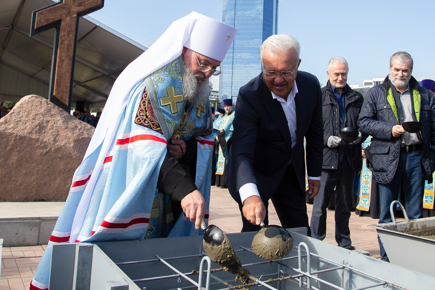 Мы с вами поступаем по-евангельски: Господь говорит, что неразумно действует тот человек, который решается на стройку и необдуманно, не приготовившись должным образом, приступает к строительству. С 2012 года прошло немало времени, в течении которого все причастные к строительству занимались необходимыми приуготовительными работами. Был создан проект, всё было рассчитано и сегодня мы непосредственно подошли к моменту, когда этот величественный храм, который будет украшать нашу землю, начинает с Божией помощию воздвигаться.