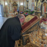 Митрополита Никиту в рабочей поездке сопровождают: клирик храма святителя Николая города Красноярска протоиерей Максим Немыченков; личный секретарь-референт главы Красноярской митрополии, штатный клирик храма Иоанна Предтечи города Красноярска иерей Владимир Лужков.
