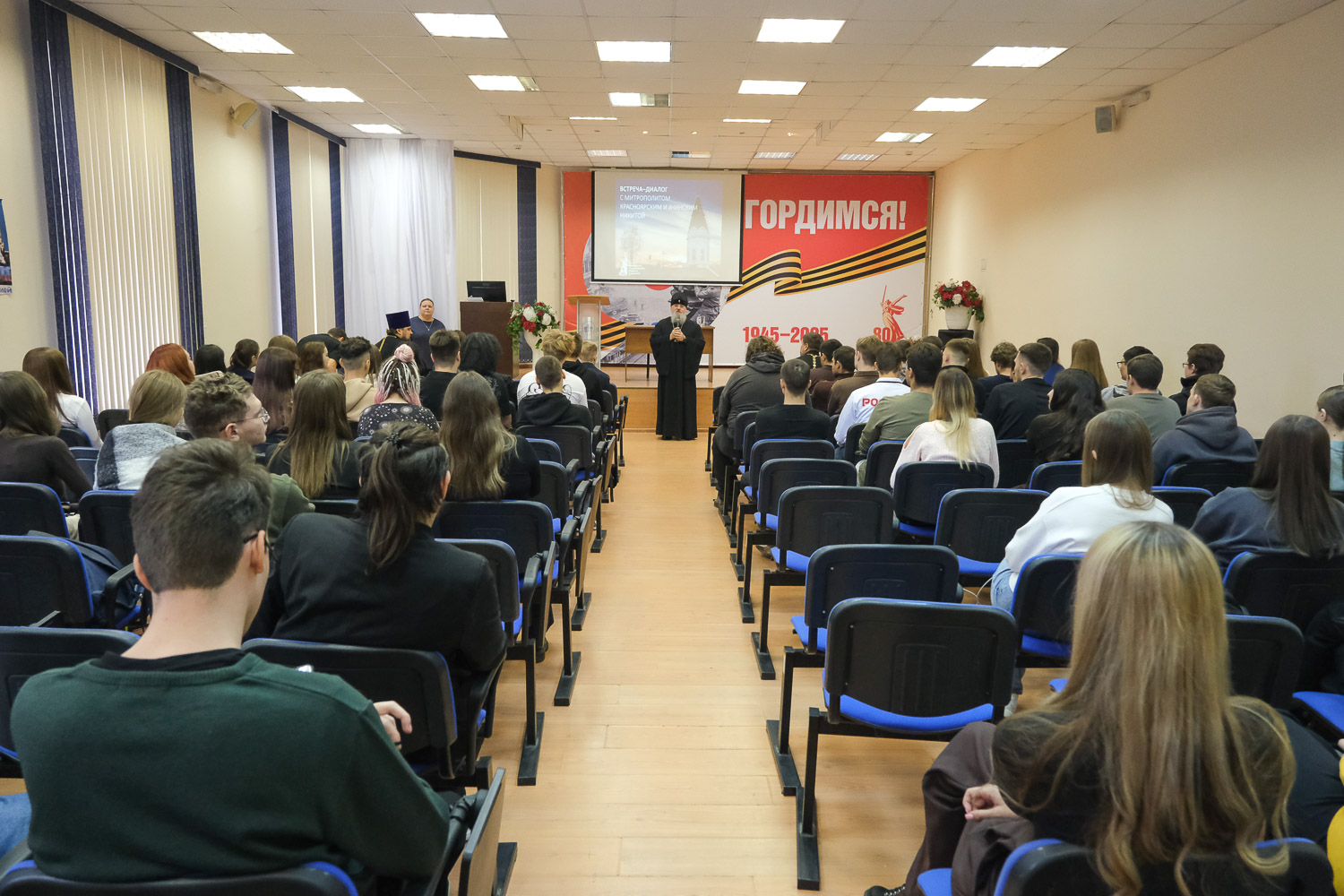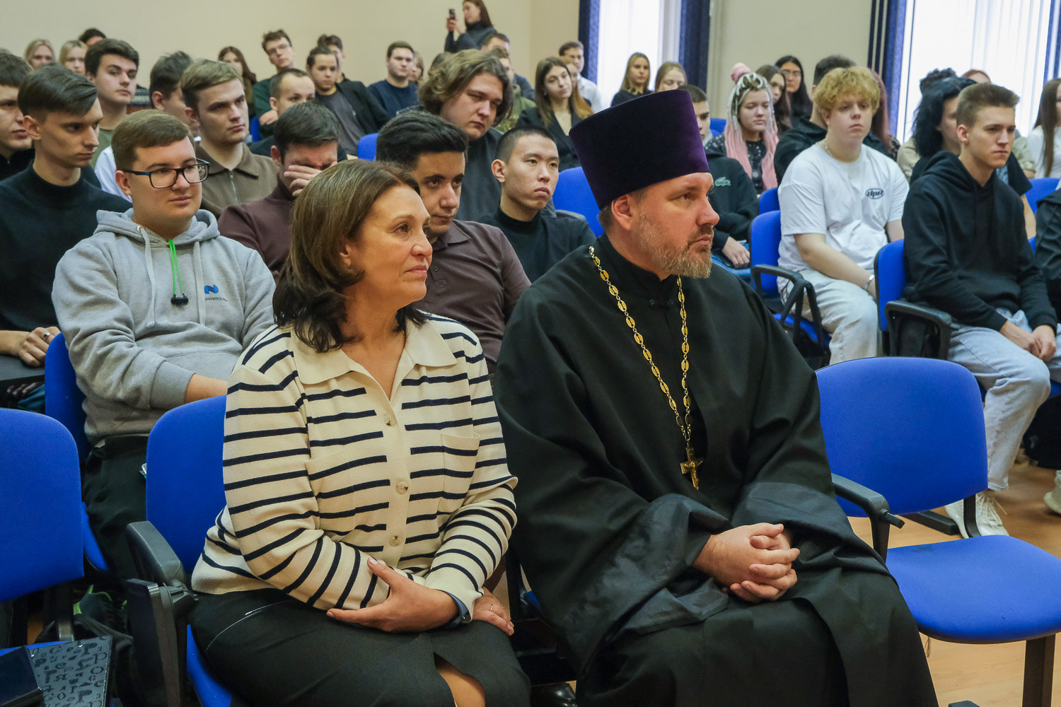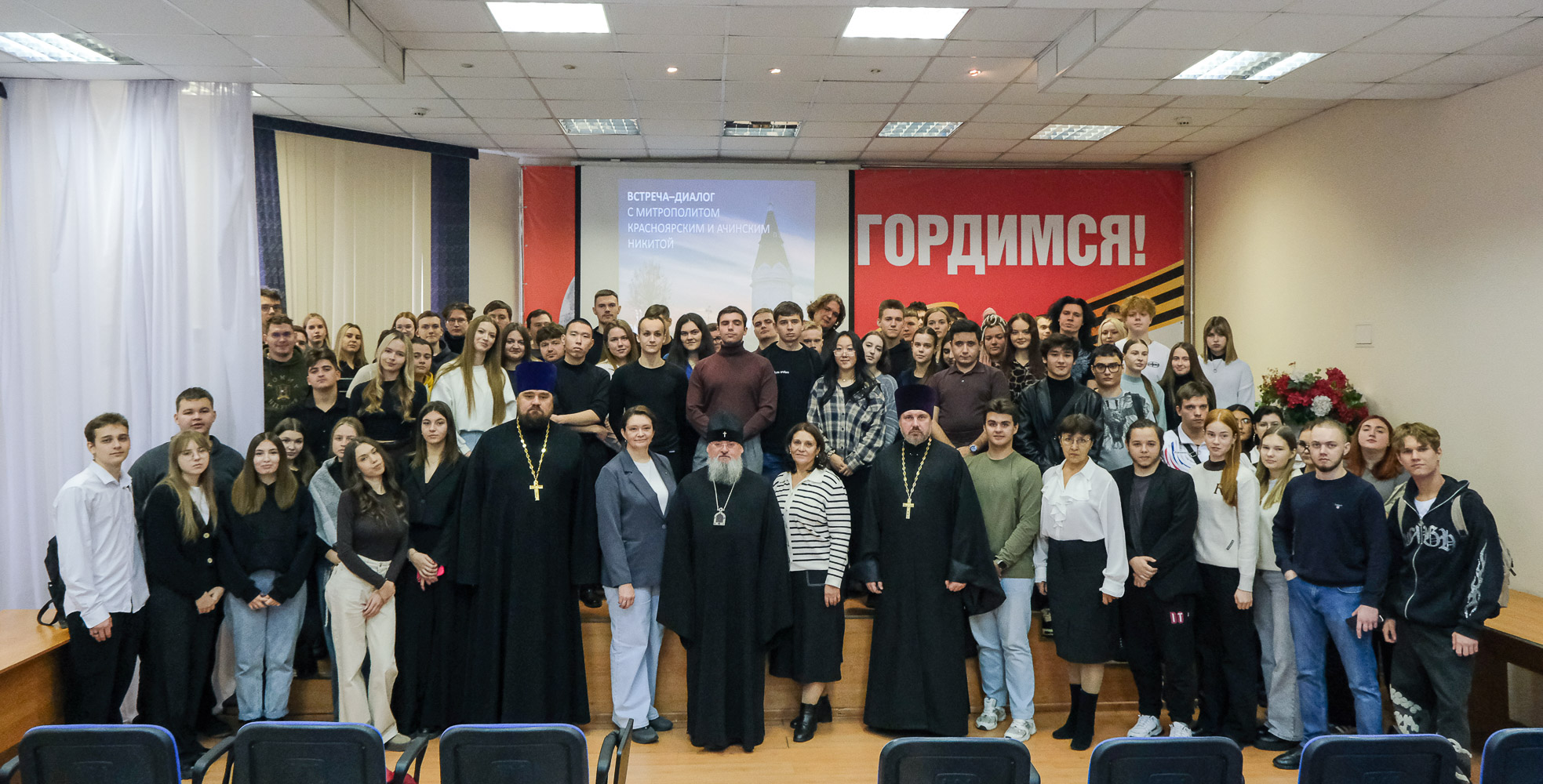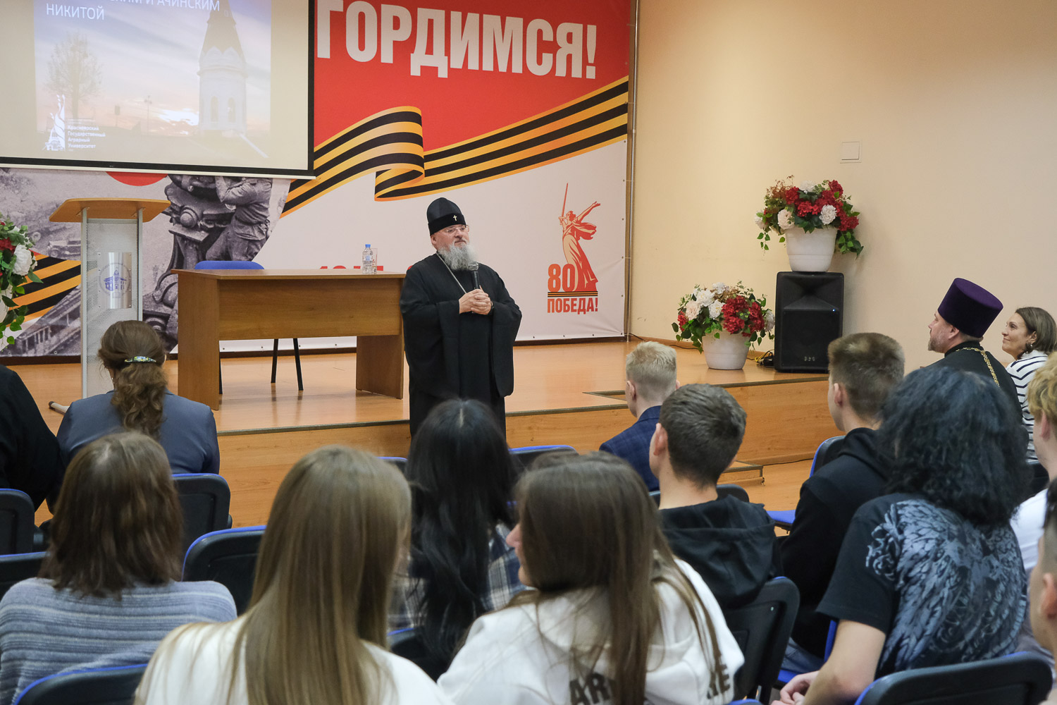 Далее состоялась встреча-диалог со студентами, которую вела начальник отдела молодёжной политики университета Валентина Сергеевна Веселкова. В начале встречи Владыка Никита обратился к студентам со словами: