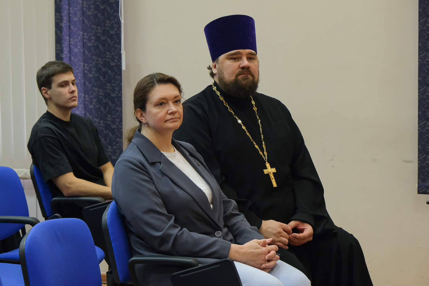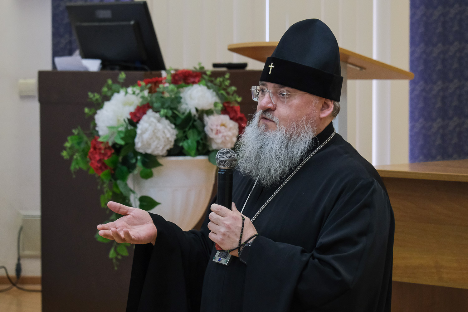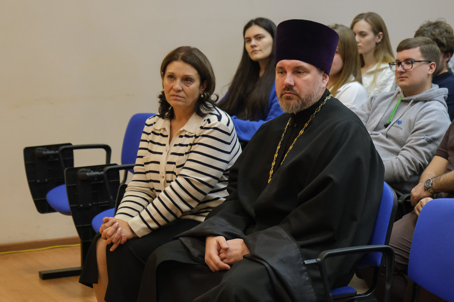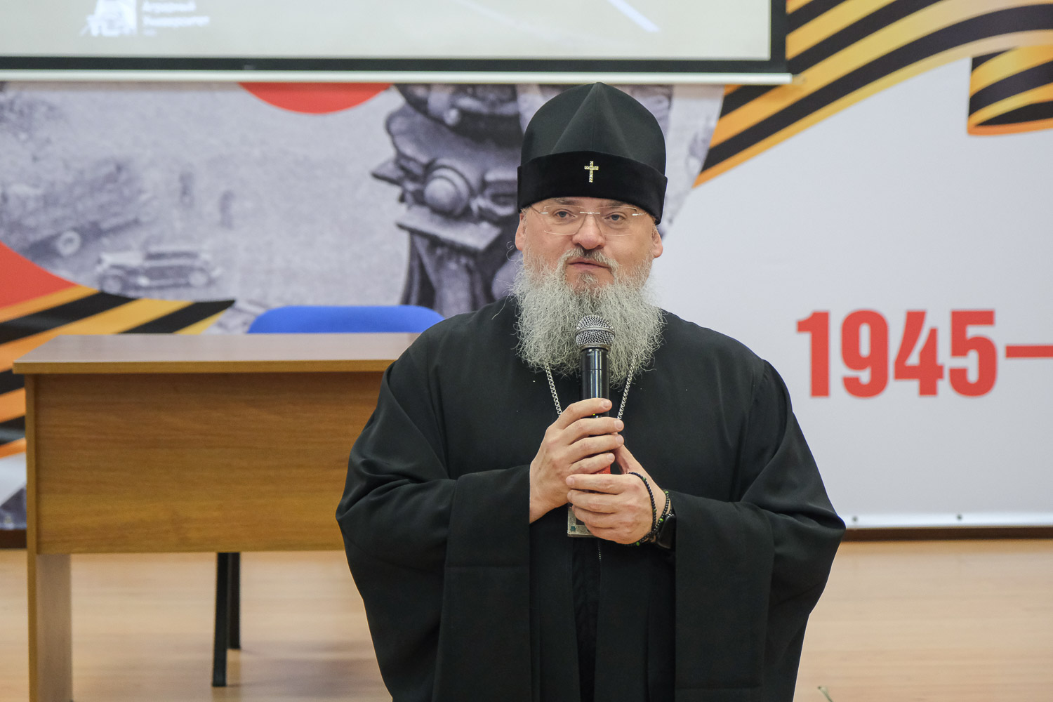 Далее состоялась встреча-диалог со студентами, которую вела начальник отдела молодёжной политики университета Валентина Сергеевна Веселкова. В начале встречи Владыка Никита обратился к студентам со словами: