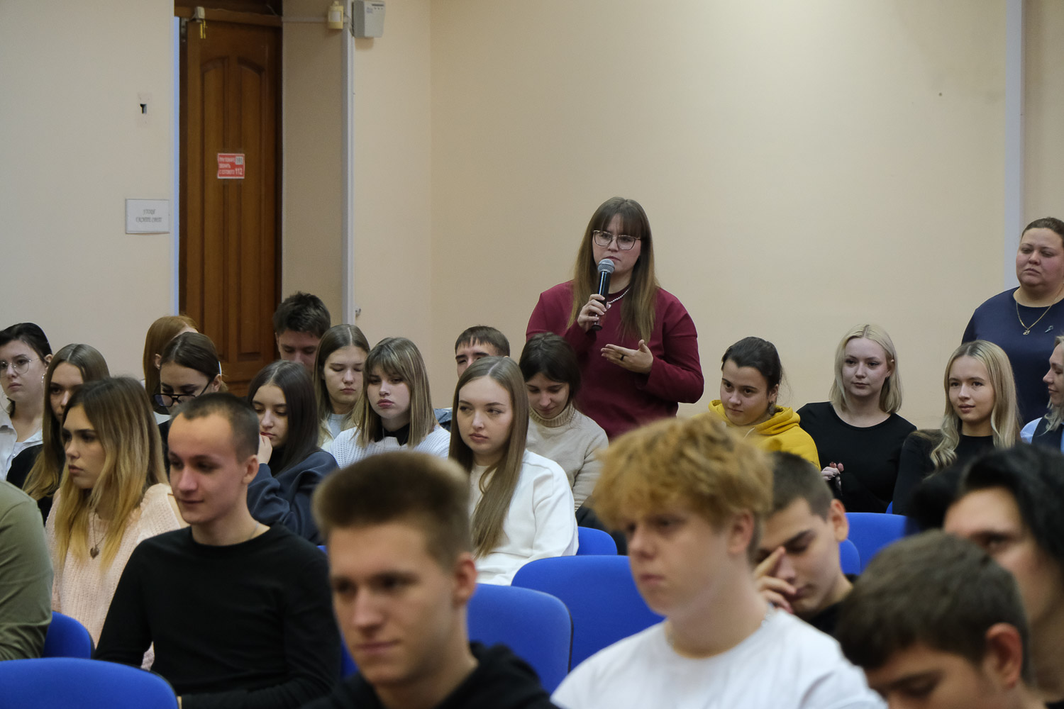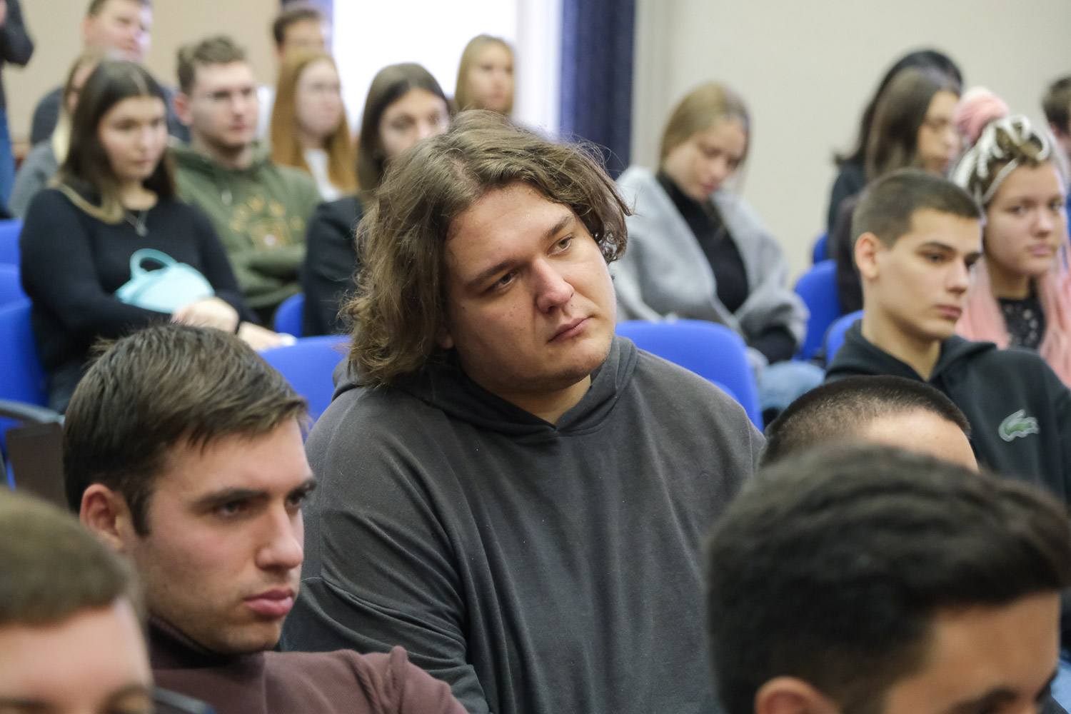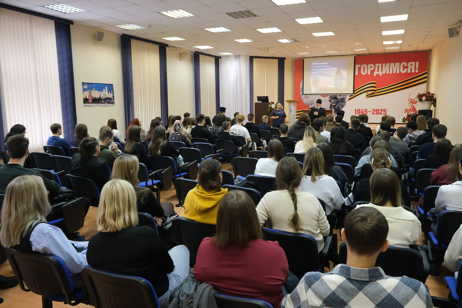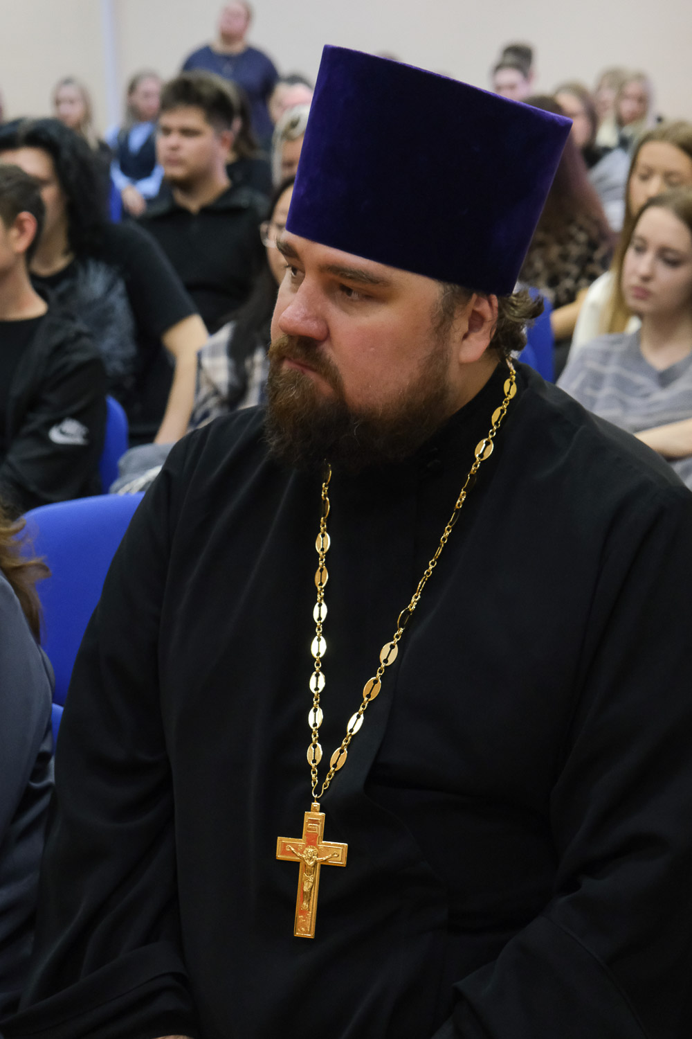Далее состоялась встреча-диалог со студентами, которую вела начальник отдела молодёжной политики университета Валентина Сергеевна Веселкова. В начале встречи Владыка Никита обратился к студентам со словами: